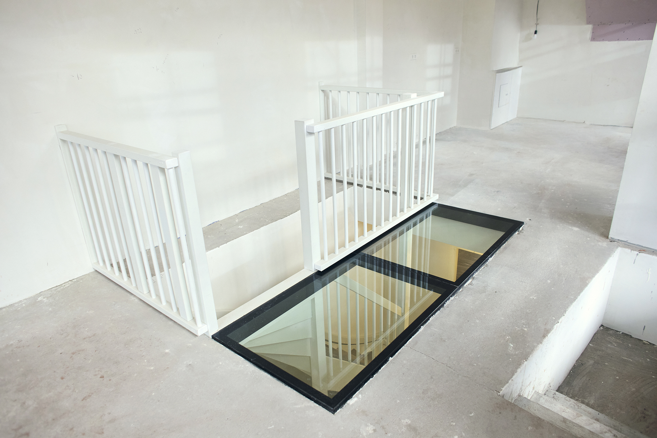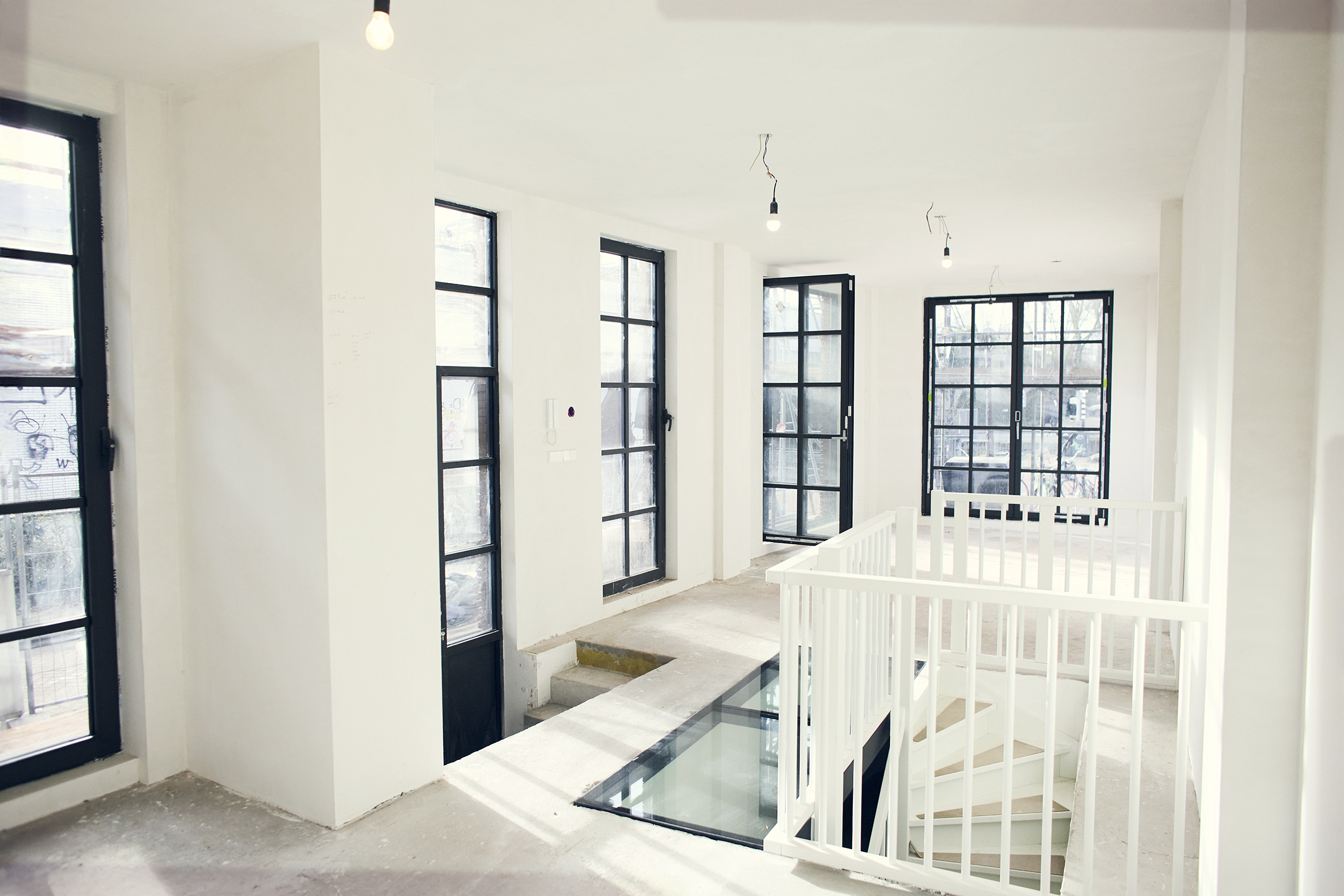 Daglicht komt binnen via koekoeken aan de voorzijde. Daarnaast zorgt het beloopbare glas tussen de begane grond en het souterrain voor extra lichttoetreding en een bijzondere visuele verbinding tussen de woonlagen.
