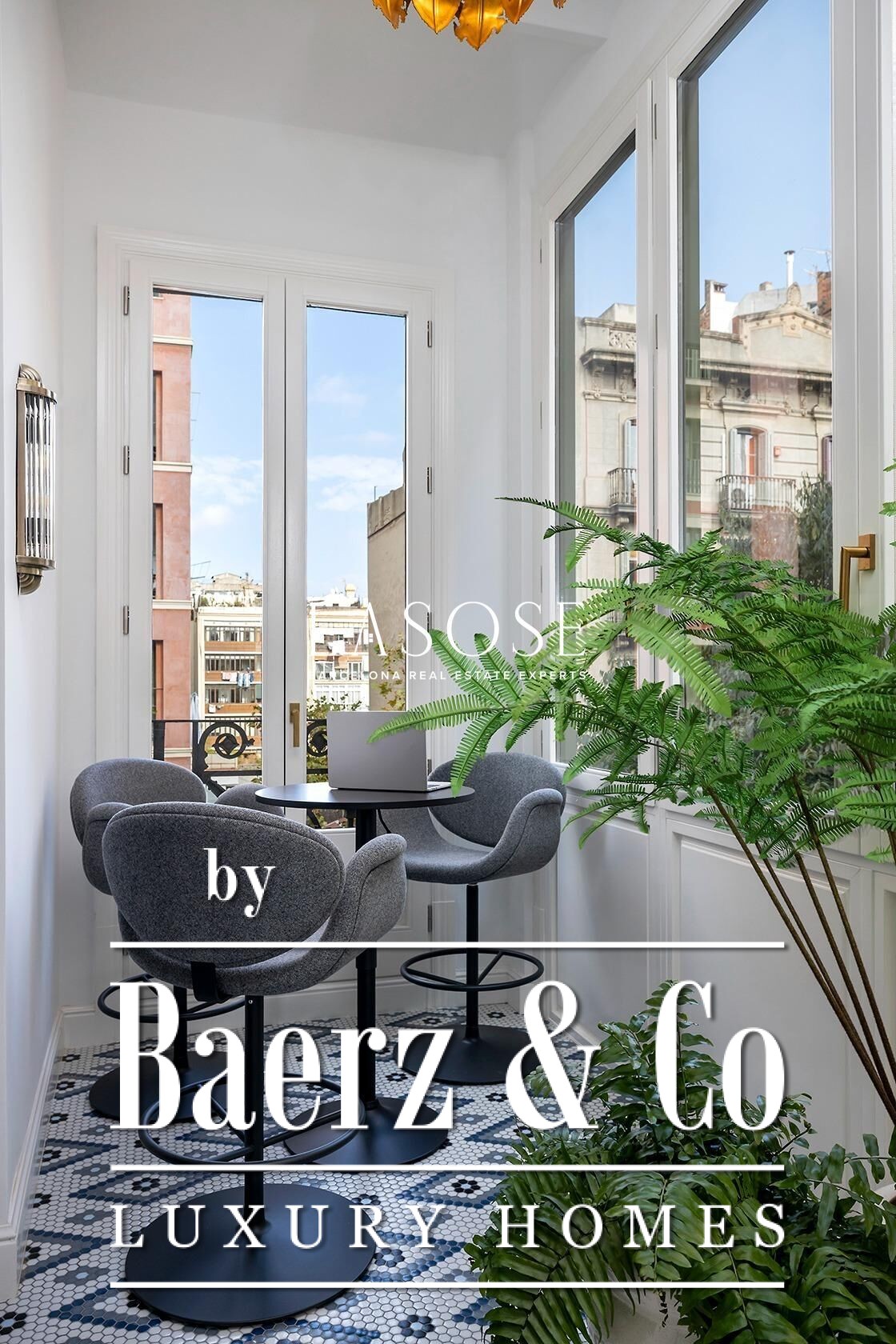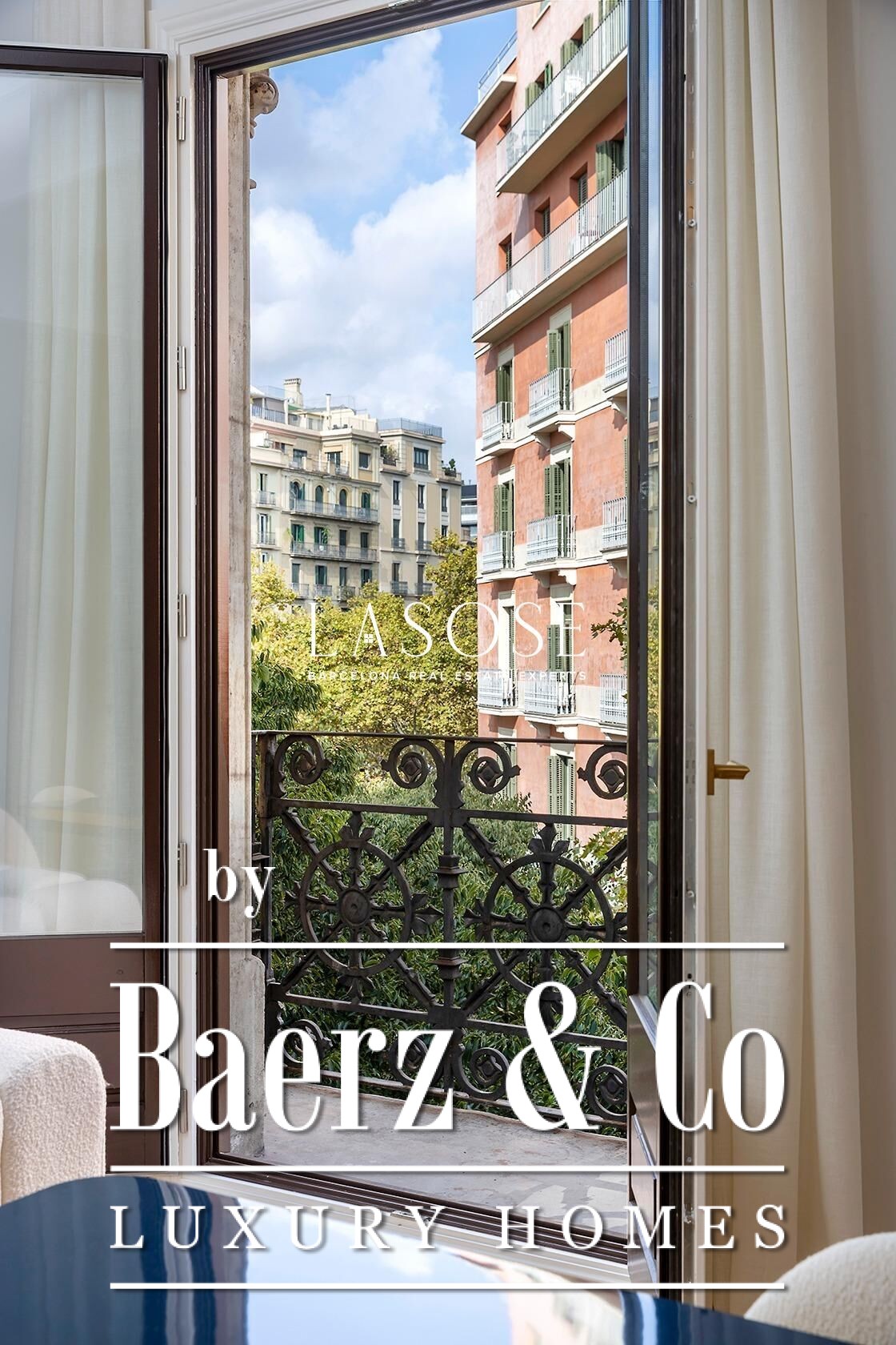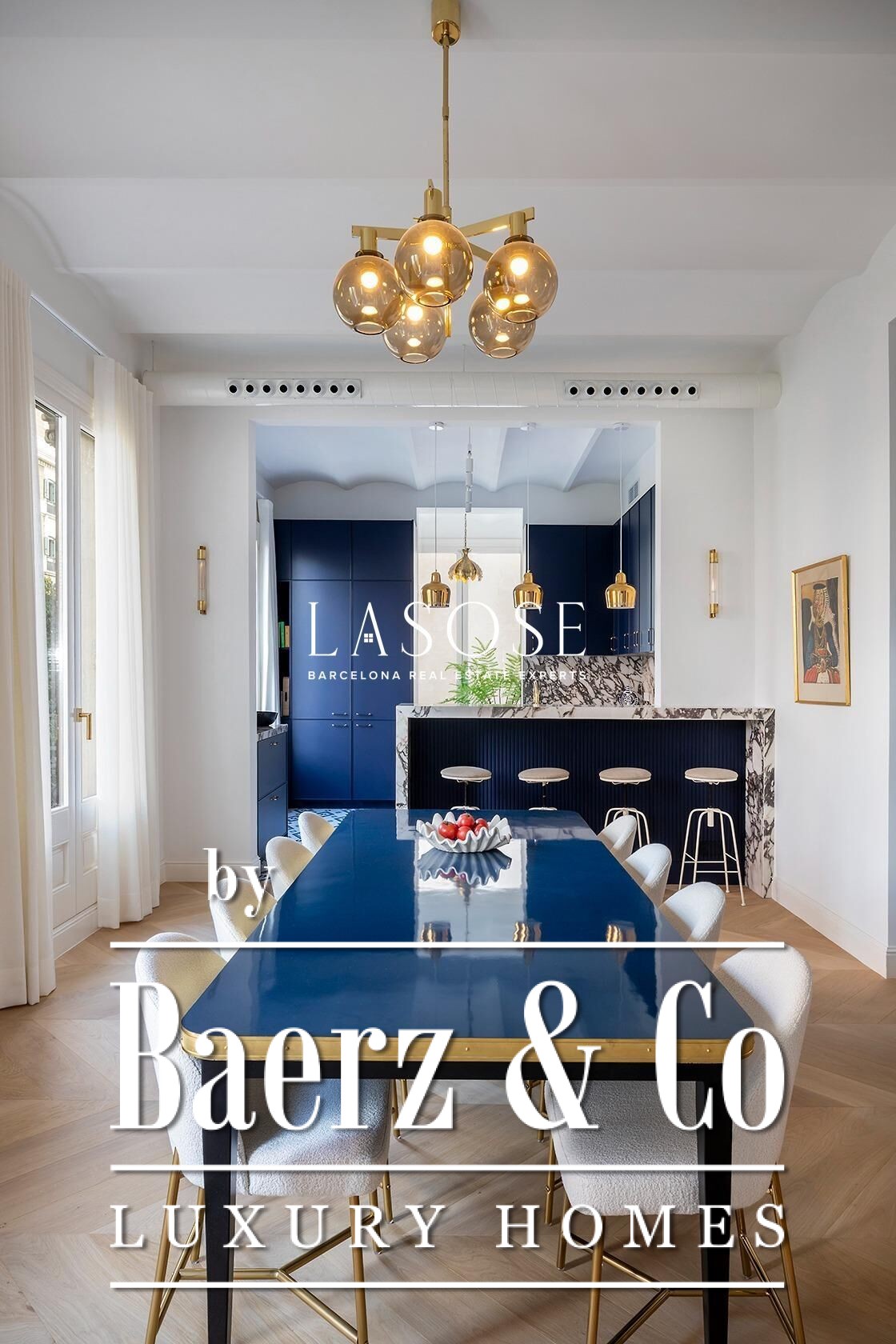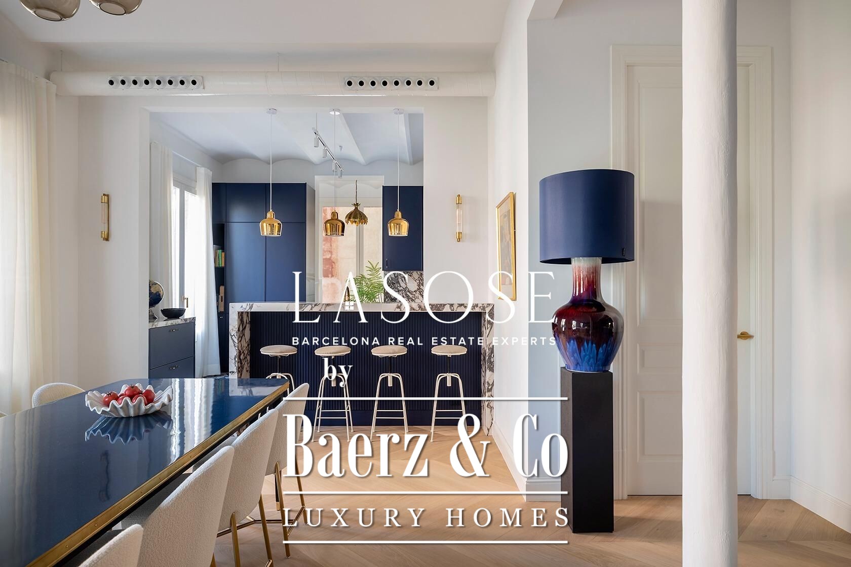 Appartement Barcelona nodigt uit tot verfijnd stedelijk wonen. Deze woning van 199 m² op de derde verdieping is recent gerenoveerd en zorgvuldig ontworpen om optimaal gebruik te maken van het natuurlijke licht; vier balkondeuren aan de Calle Girona en royale ramen versterken de lichte sfeer. De indeling verloopt vloeiend van de open keuken en eetruimte naar een woonkamer, voorzien van een maatwerkbar en bijkeuken met twee wijnklimaatkasten en een tweede vaatwasser.