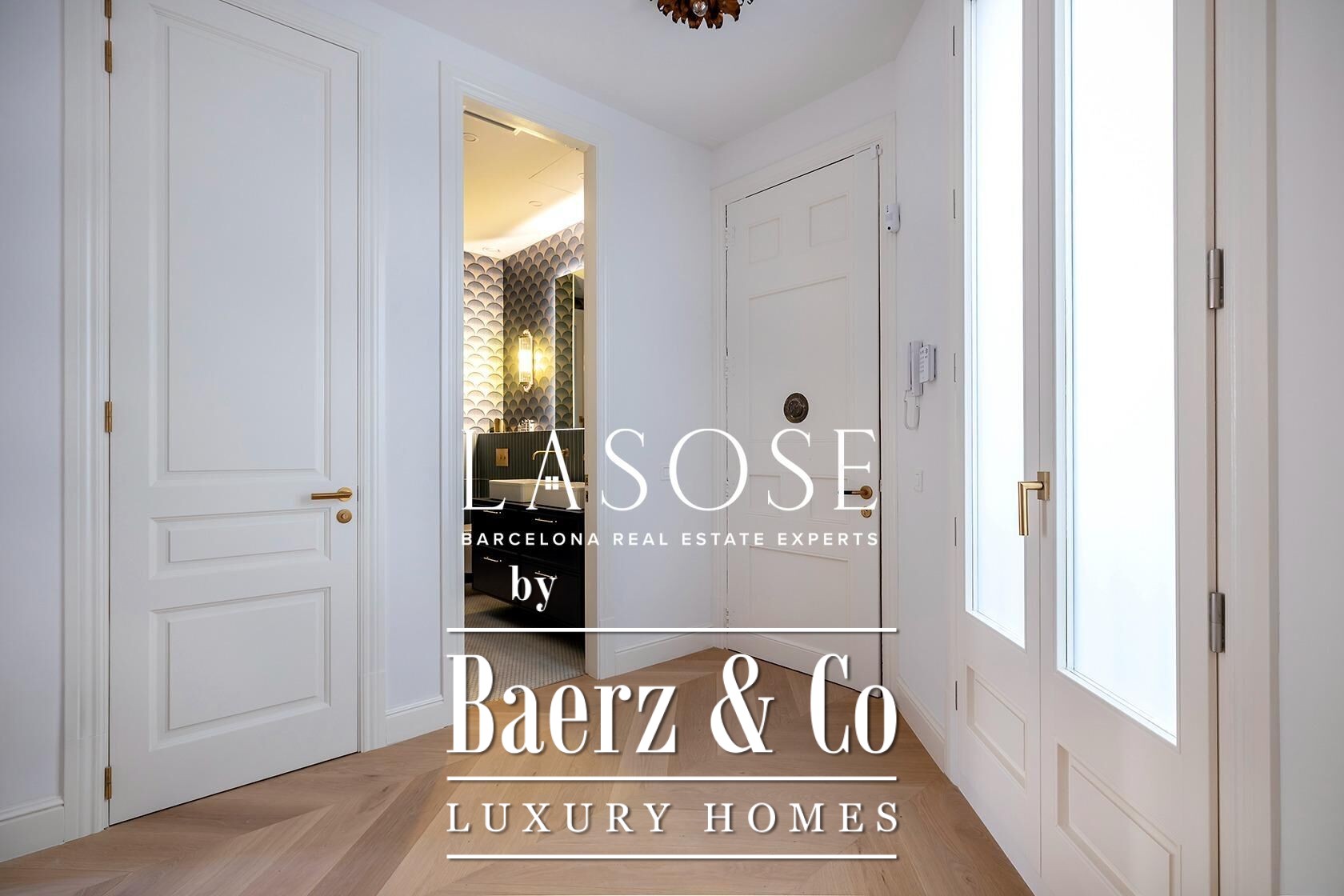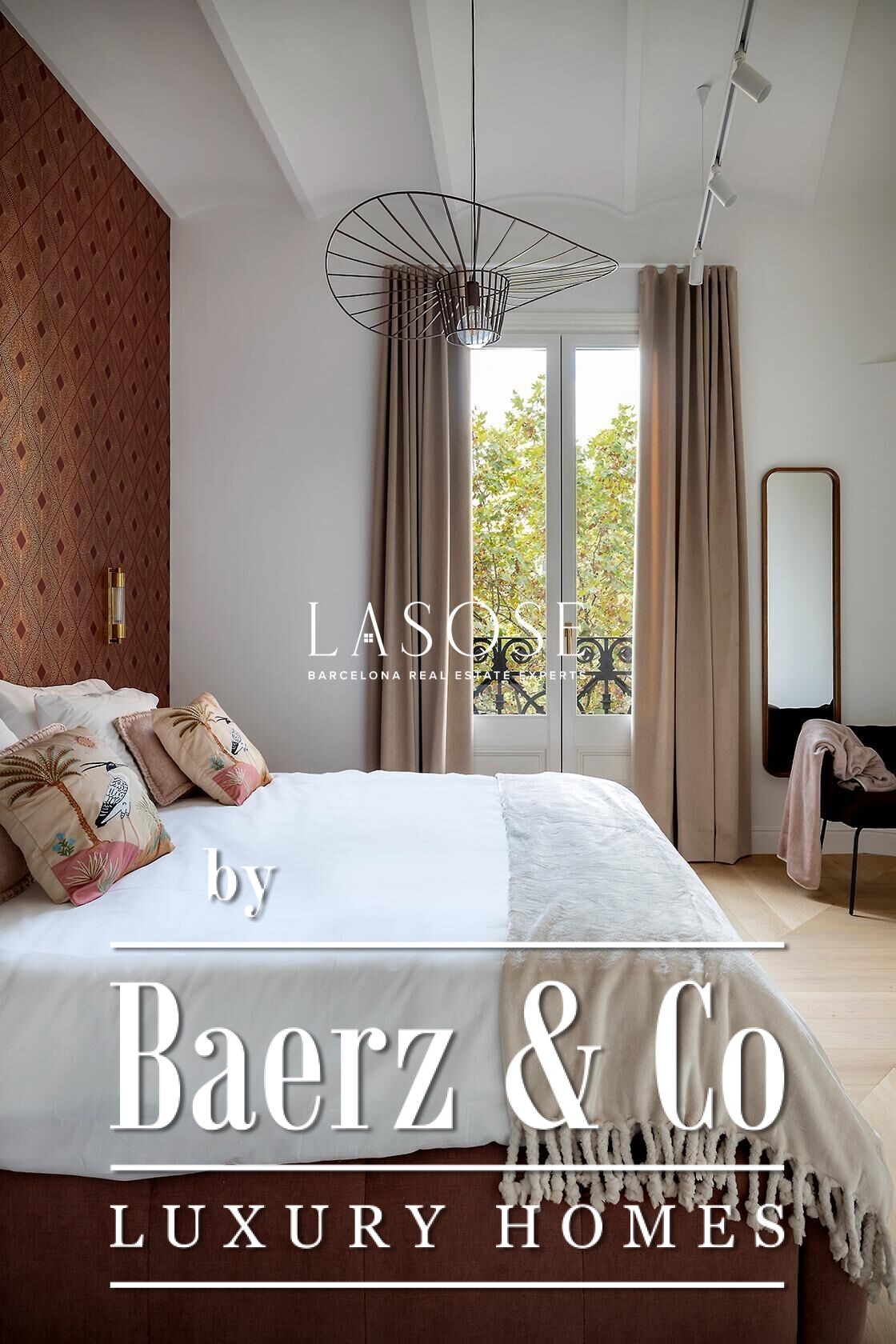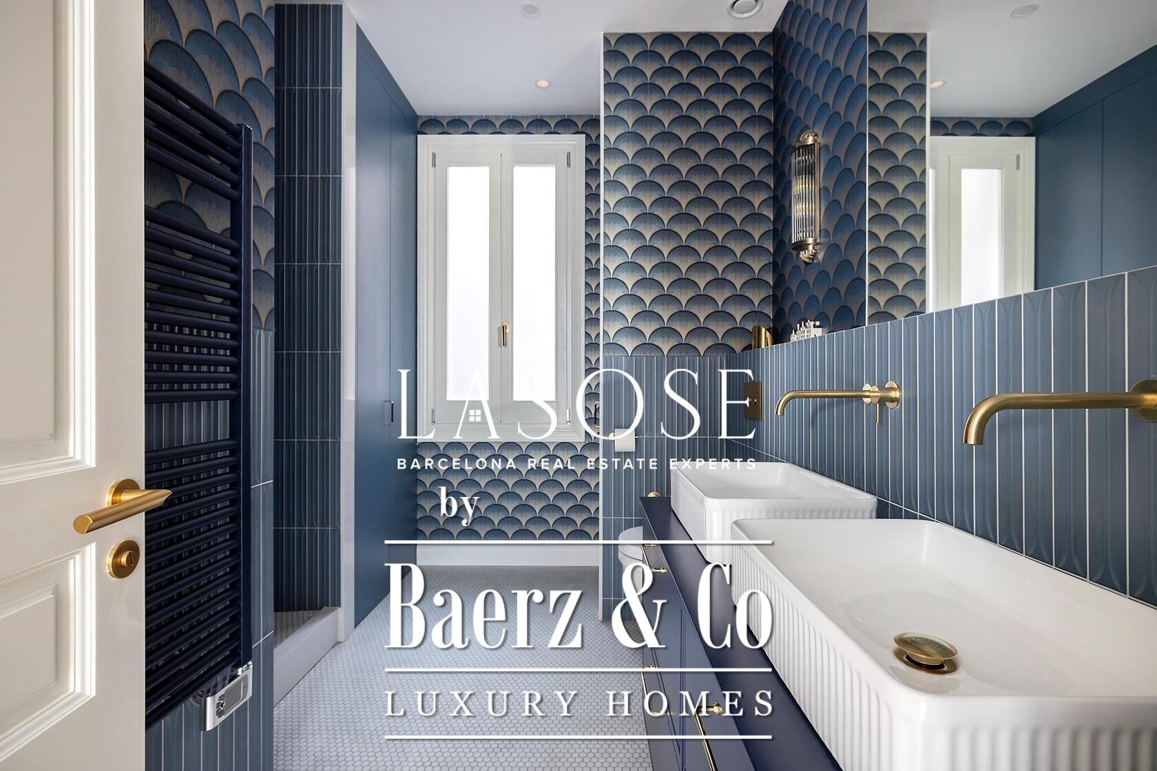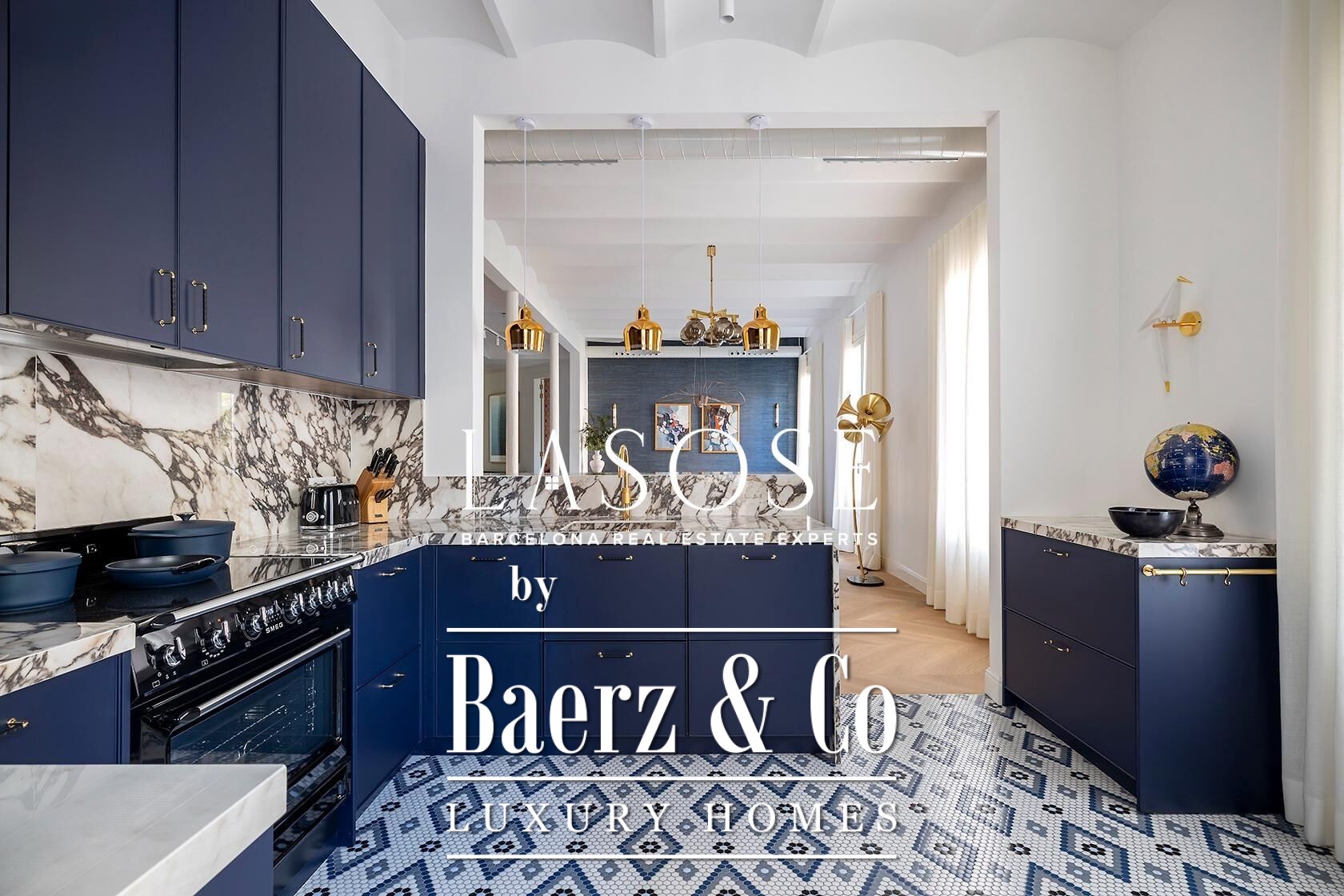 Appartement Barcelona nodigt uit tot verfijnd stedelijk wonen. Deze woning van 199 m² op de derde verdieping is recent gerenoveerd en zorgvuldig ontworpen om optimaal gebruik te maken van het natuurlijke licht; vier balkondeuren aan de Calle Girona en royale ramen versterken de lichte sfeer. De indeling verloopt vloeiend van de open keuken en eetruimte naar een woonkamer, voorzien van een maatwerkbar en bijkeuken met twee wijnklimaatkasten en een tweede vaatwasser.