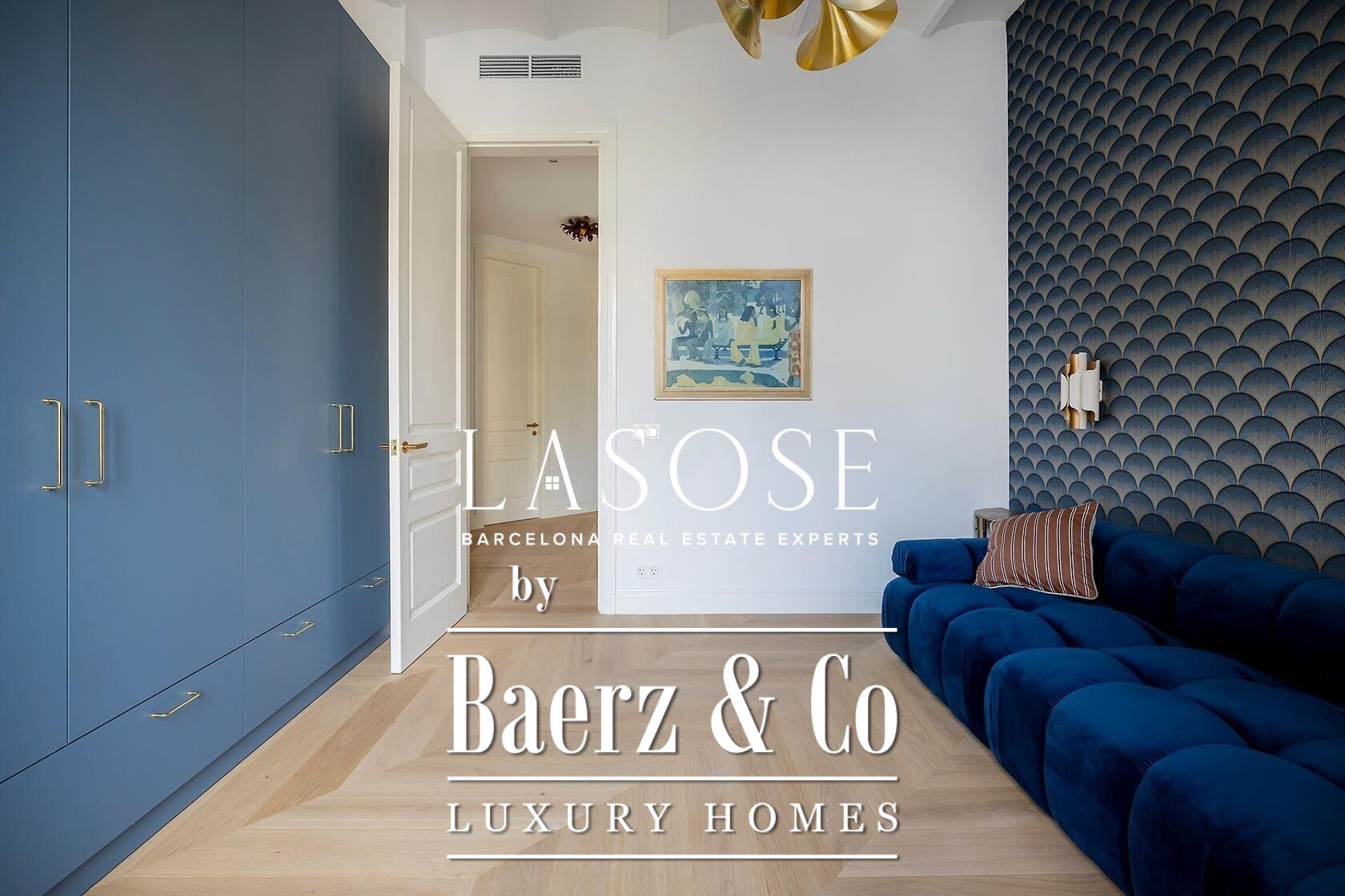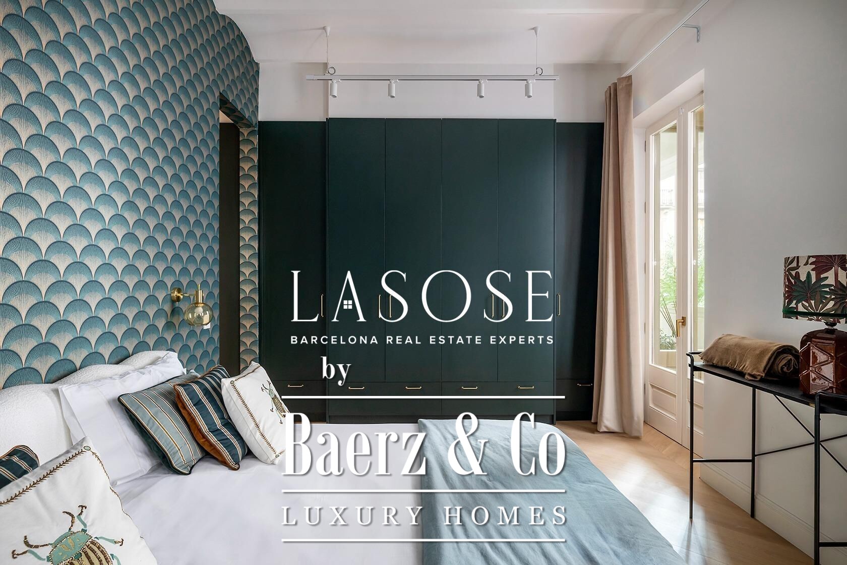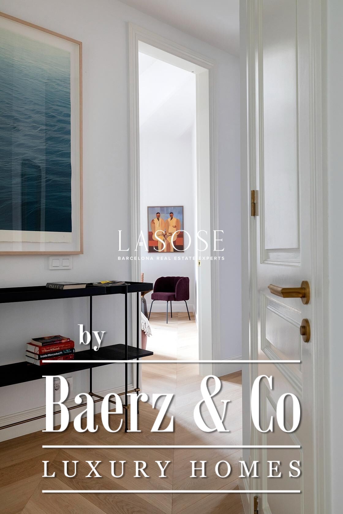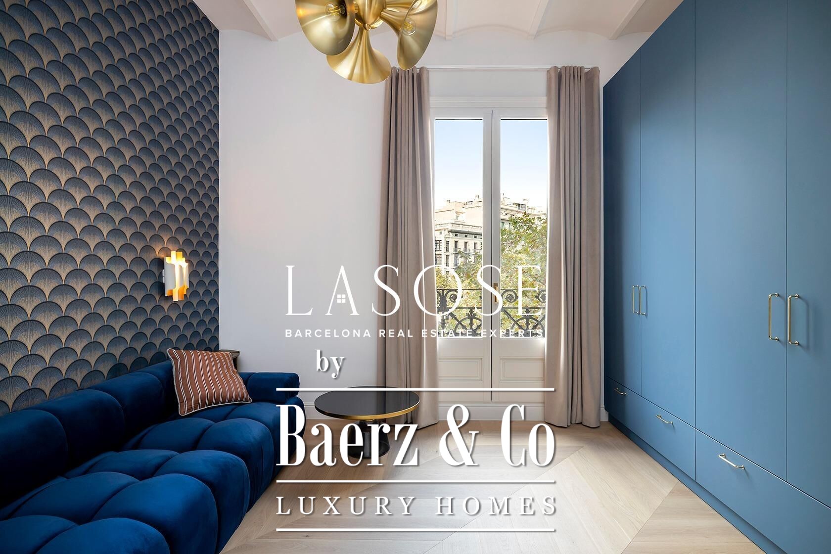 Appartement Barcelona nodigt uit tot verfijnd stedelijk wonen. Deze woning van 199 m² op de derde verdieping is recent gerenoveerd en zorgvuldig ontworpen om optimaal gebruik te maken van het natuurlijke licht; vier balkondeuren aan de Calle Girona en royale ramen versterken de lichte sfeer. De indeling verloopt vloeiend van de open keuken en eetruimte naar een woonkamer, voorzien van een maatwerkbar en bijkeuken met twee wijnklimaatkasten en een tweede vaatwasser.