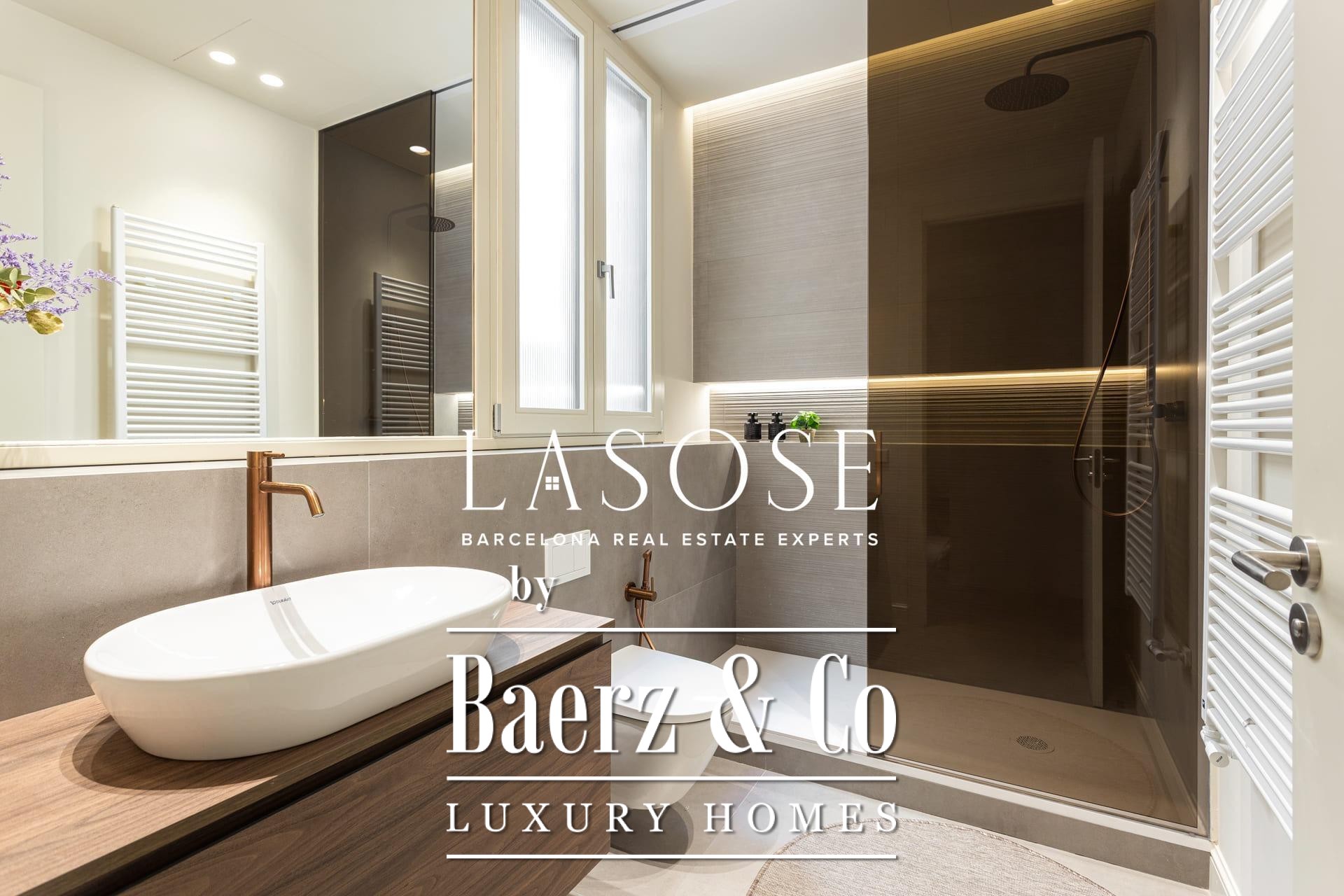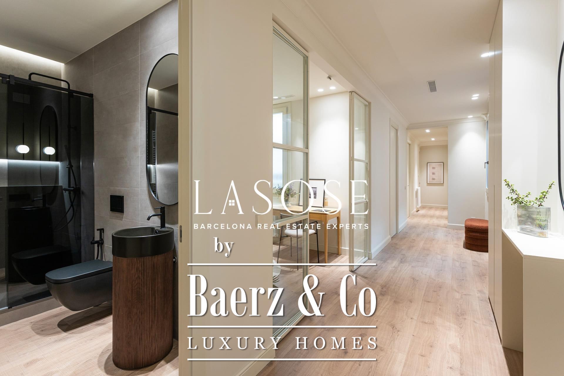 De slaapvertrekken bieden rust en comfort: drie tweepersoonskamers, één eenpersoonskamer en badkamers afgewerkt met porselein en hoogwaardige designkranen. De master suite beschikt over een eigen badkamer en exclusieve toegang tot een westelijk gelegen galerij, een intieme plek om ’s middags van de zon te genieten. De voorzieningen omvatten een lift, geavanceerde apparatuur, geïntegreerde klimaatregeling en een wasruimte, aangevuld met een royale berging van 13 m² op de bovenste verdieping. Dankzij de ligging in het prestigieuze Quadrat d’Or behoort dit appartement tot de meest zeldzame residentiële kansen van Barcelona, met direct toegang tot de beste culturele, design- en gastronomische voorzieningen.