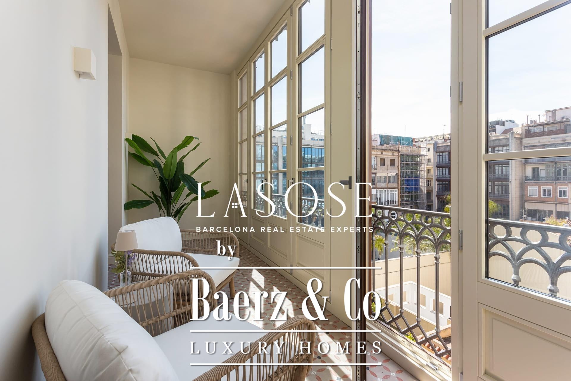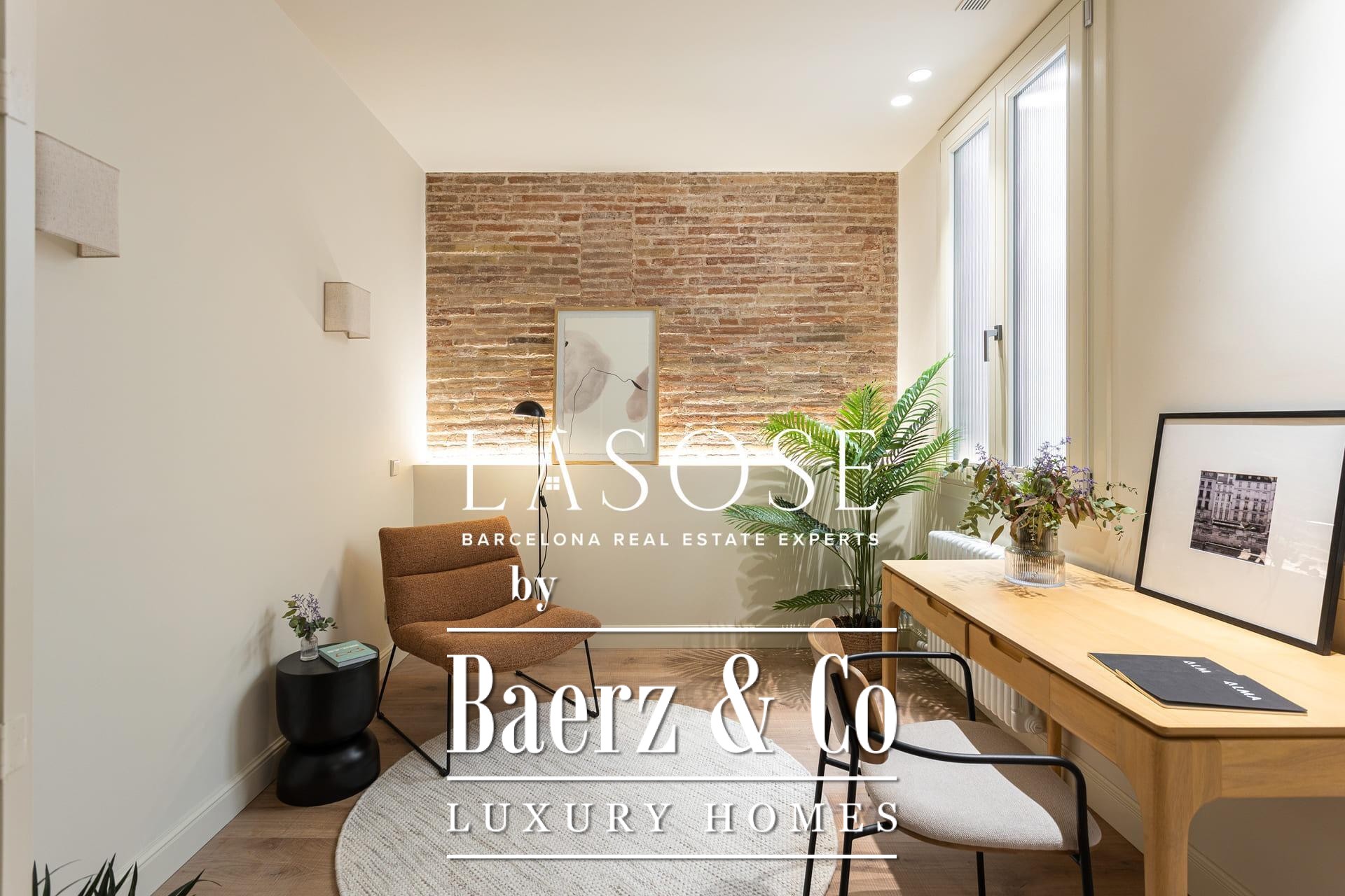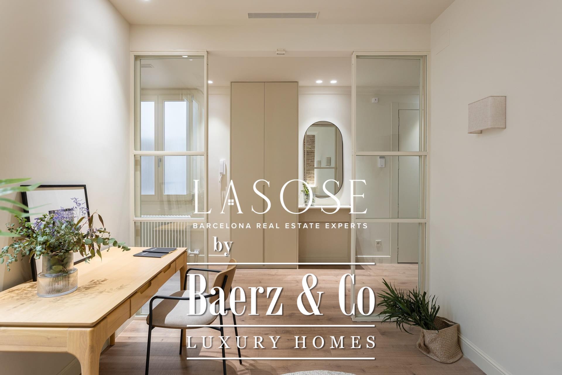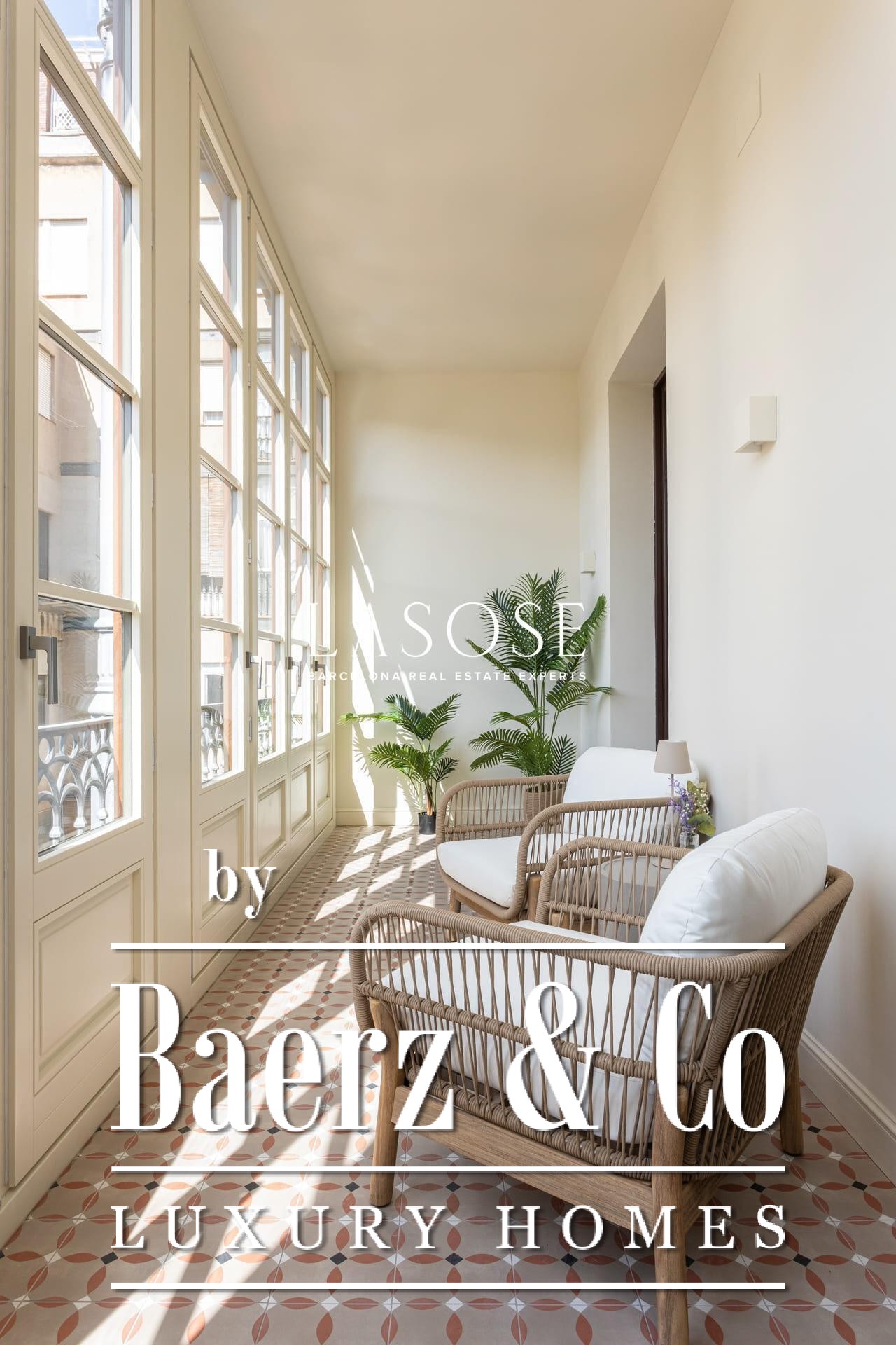 Een zorgvuldig uitgevoerde renovatie behoudt de imposante Catalaanse gewelfde plafonds en het authentieke metselwerk, wat zorgt voor warmte, historie en een zeldzame authenticiteit op de markt. De woon- en eetkamer lopen naadloos over in de exclusieve designkeuken, die is gecentreerd rond een royaal kookeiland; ideaal voor sociale bijeenkomsten en dagelijkse rituelen. Twee klassieke balkons laten het ochtendllicht vanuit het oosten binnenstromen en bieden uitzicht op de statige Roger de Llúria.
