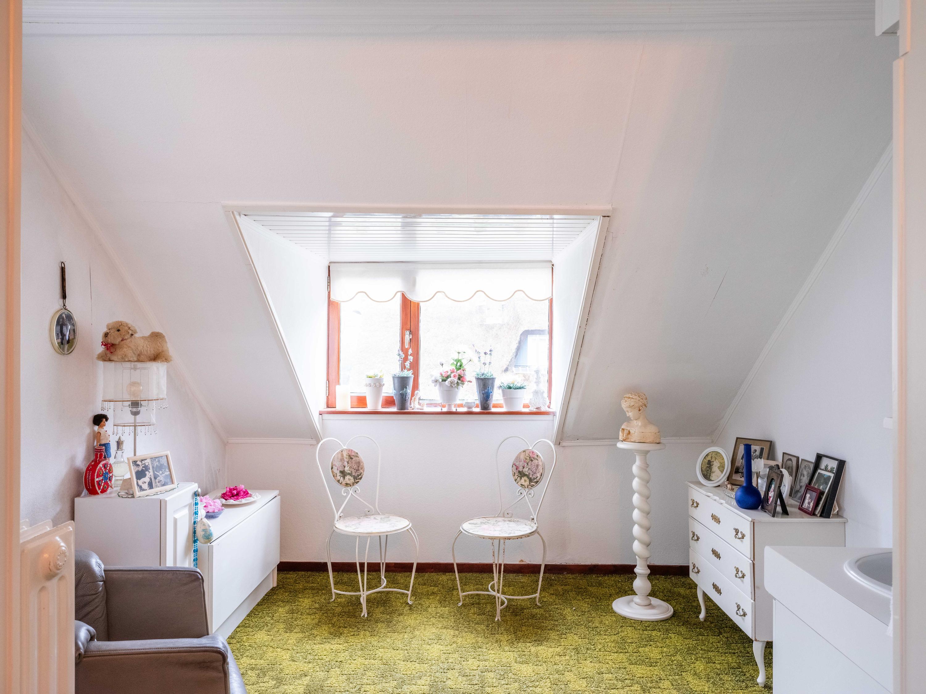 Via de voordeur aan de rechterzijde van de woning komen we in de ruime hal. Van hieruit zijn de woonkamer, keuken met bijkeuken en het atelier met werkkamer te bereiken. De trapopgang leidt naar de eerste verdieping met slaapkamers en een eenvoudige badcel met separaat toilet. Een vaste trap brengt ons naar de flinke zolderkamer met dakkapel van waaruit een mooi uitzicht op dit authentieke stukje Bergen.