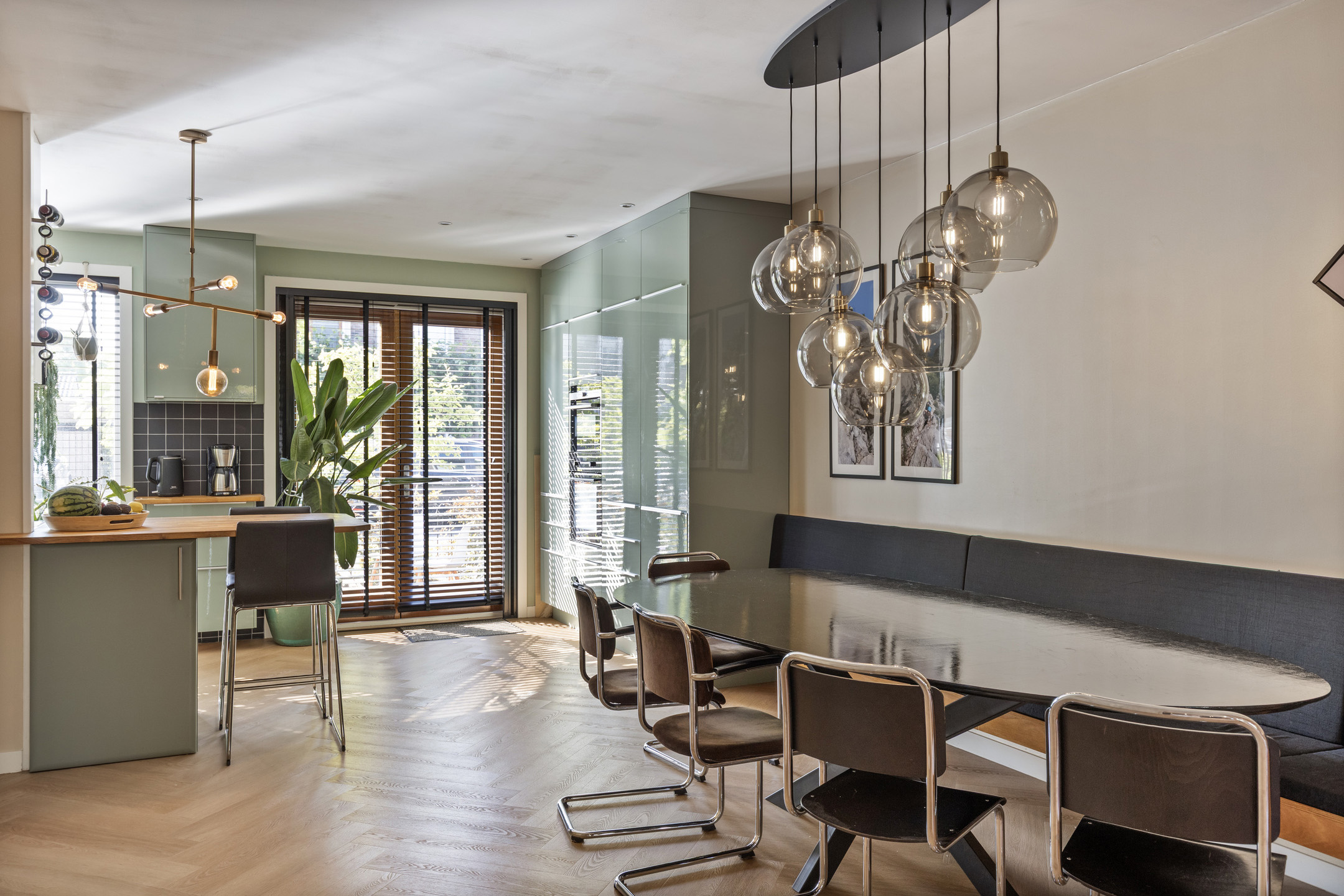 De luxe keuken is aan de voorzijde van de woning gelegen en is voorzien van diverse inbouwapparatuur, waaronder een vaatwasser, afzuigkap, inductiekookplaat, combimagnetron en oven.