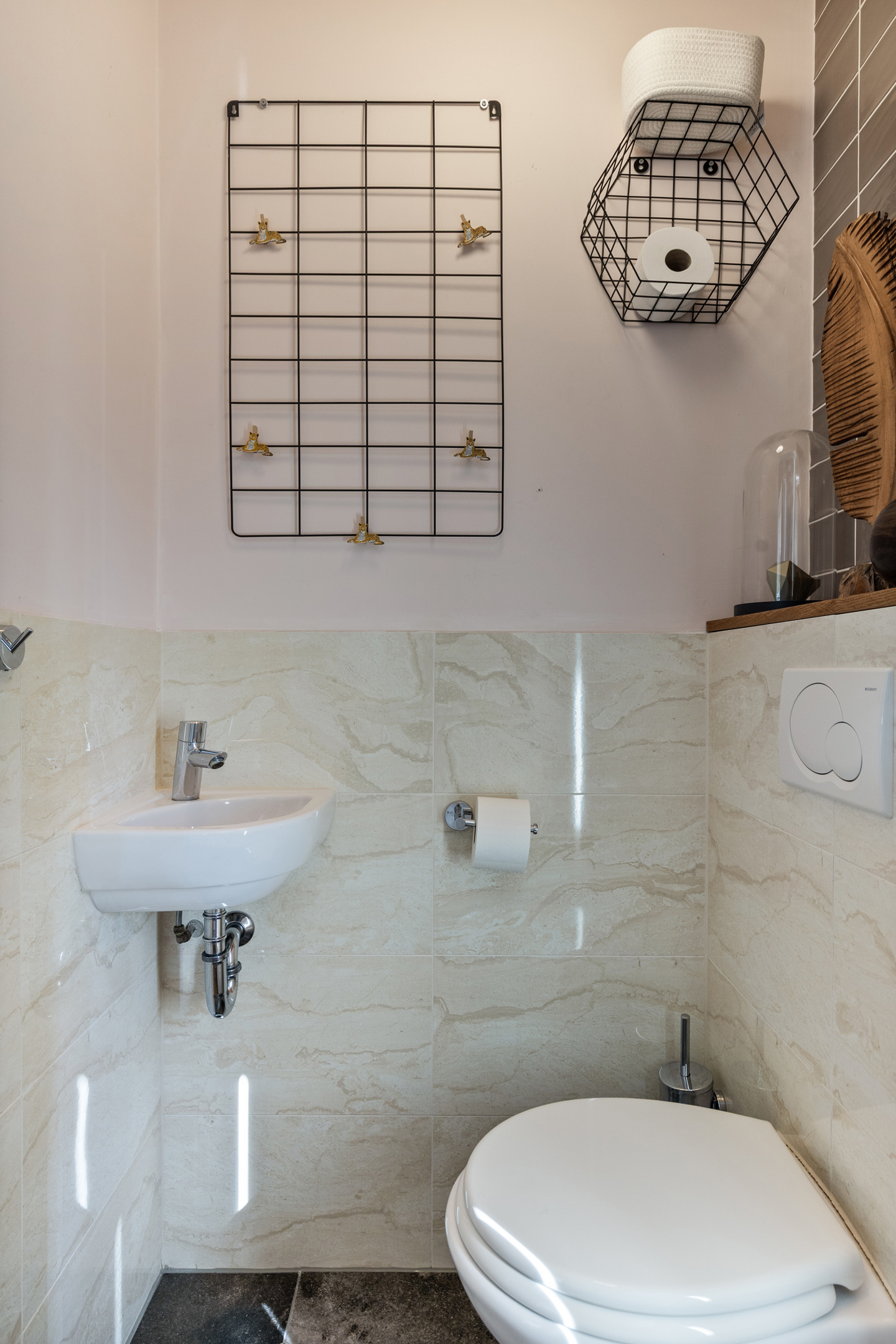 Op de overloop bevinden zich de aansluitingen voor de wasmachine en droger.