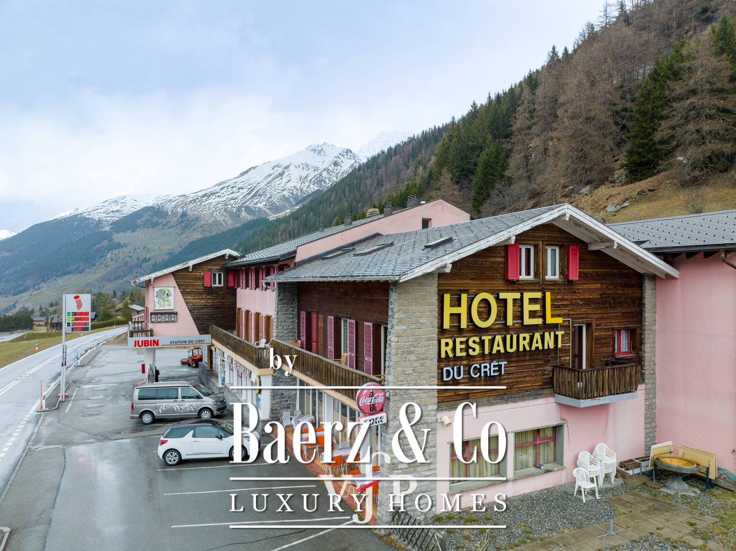 Hotel Bourg-St-Pierre Zwitserland bevindt zich op een strategische locatie aan de Grand-St-Bernard-weg, op slechts enkele minuten van de grens. Hier ervaart men een bijzonder samenspel van bereikbaarheid en privacy. Het perceel omvat meer dan 4.000 m² grond en herbergt een hotel, gebouwd in 1961 en gerenoveerd in 1992, met 36 volledig uitgeruste kamers en in totaal 80 bedden. Het geheel bestaat daarnaast uit een café-restaurant, een kiosk en een tankstation, waardoor zowel hospitality als essentiële voorzieningen samenkomen.