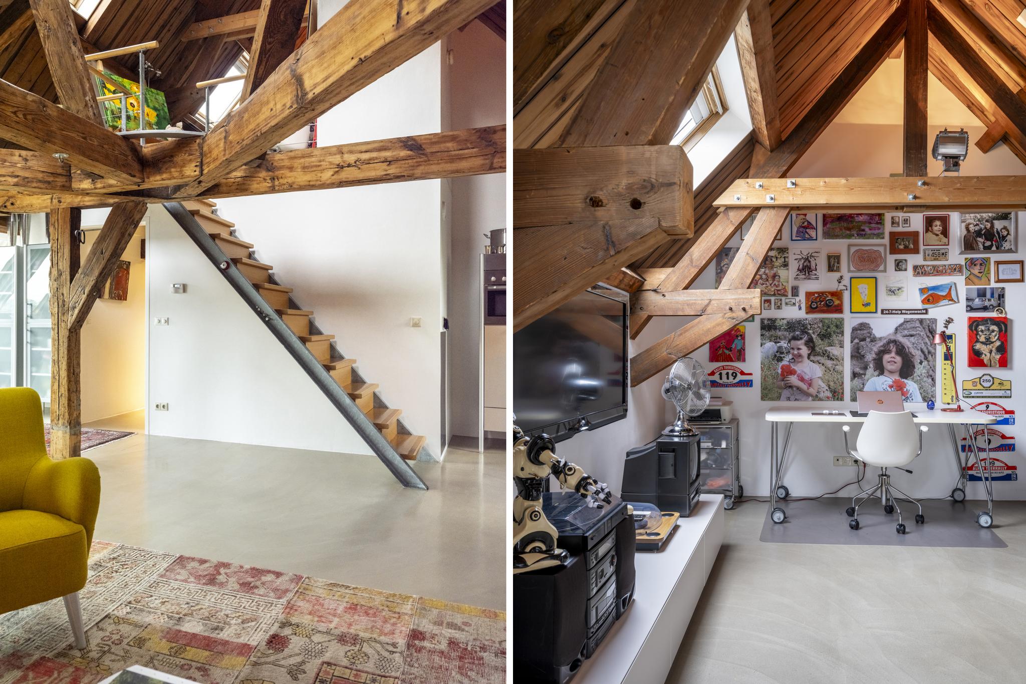 Het appartement onderscheidt zich door zijn bijzondere ligging onder de imposante monumentale kap. Hierdoor ontstaat een karaktervolle en sfeervolle woonruimte, waarbij de indrukwekkende kapconstructie in het gehele appartement zichtbaar is gebleven. De open indeling en de hoge plafonds zorgen bovendien voor een ongeëvenaard gevoel van ruimte en licht.