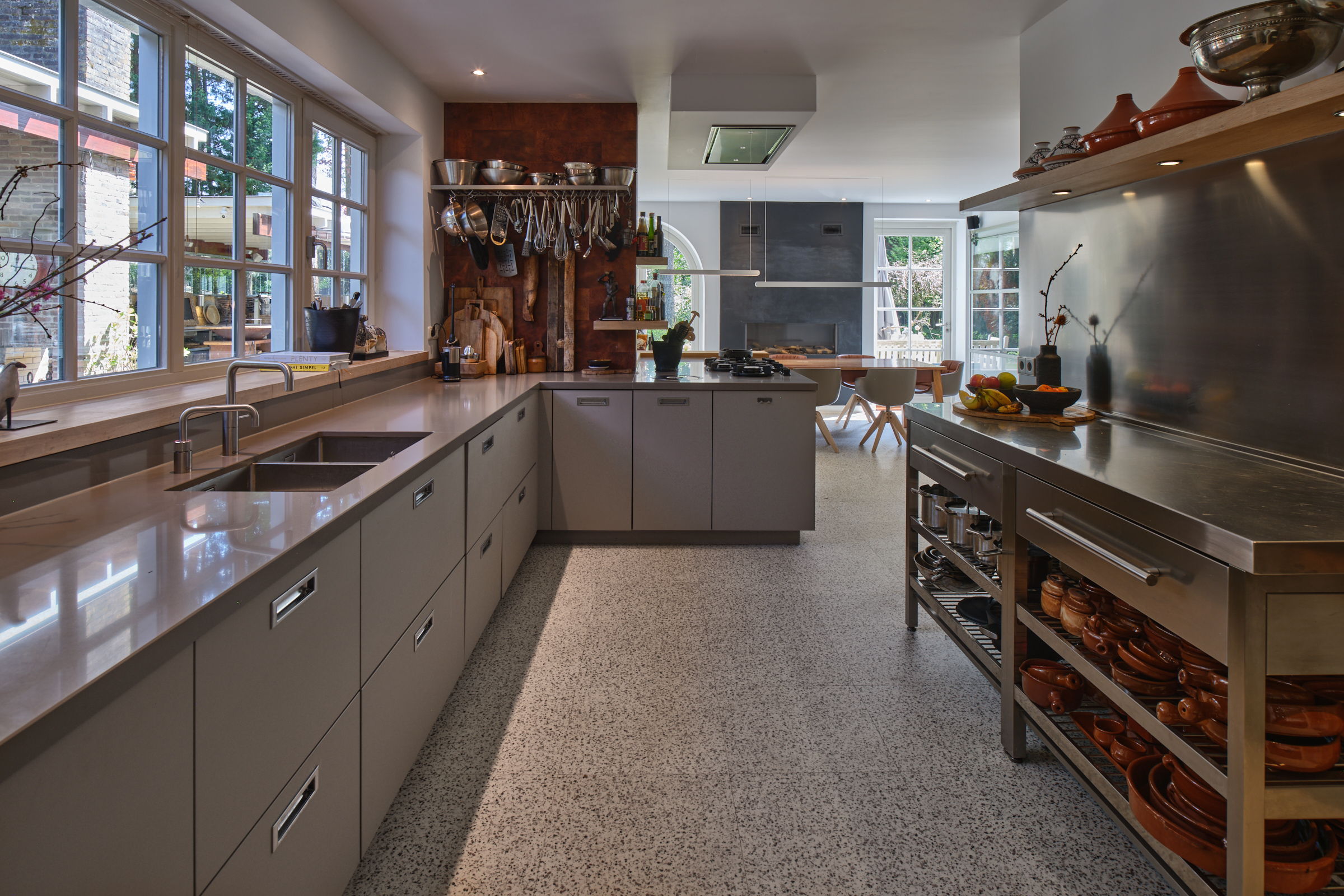 Geweldige woonkeuken (2022), op maat gemaakt door Antonissen interieurbouw en voorzien van alle wenselijke apparatuur zoals o.a. een ingebouwde koffiemachine, combi-oven, heteluchtoven, 6-pits gastoestel (Pitt Cooking), composiet aanrechtblad en een fraai stalen werkblad met stoere achterwand, afzuigkap, dubbele spoelbak, geïntegreerde afvalbak, Quooker en een grote roestvrijstalen koelkast met aparte wijnklimaatkast van Liebherr. De meeste inbouwapparatuur is van hoogstaande kwaliteit van het exclusieve merk Gaggenau.