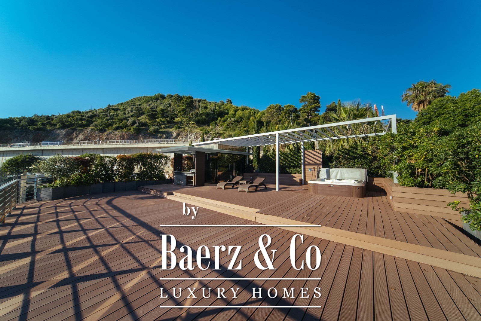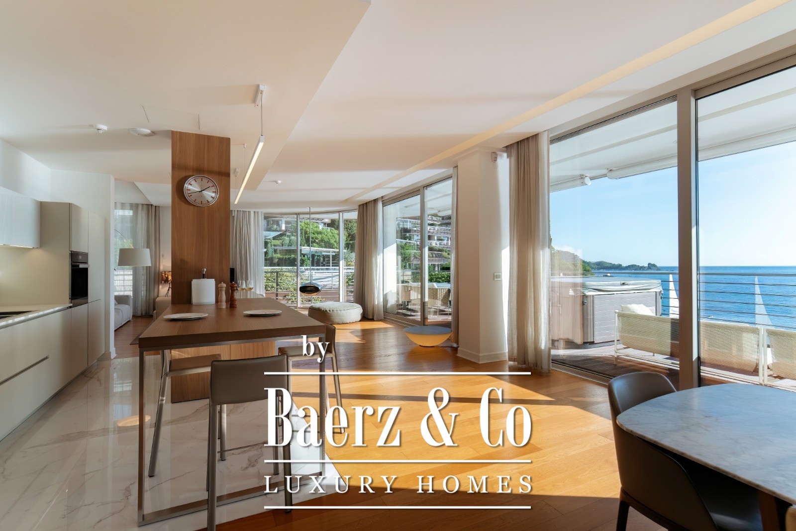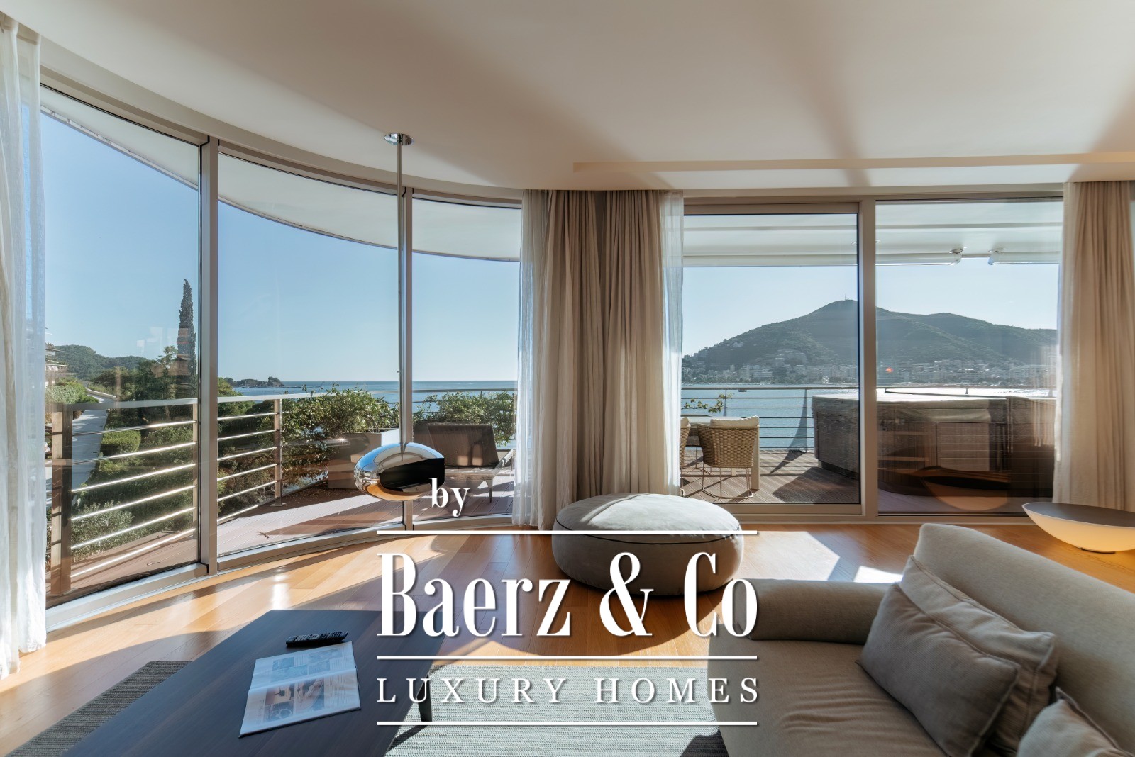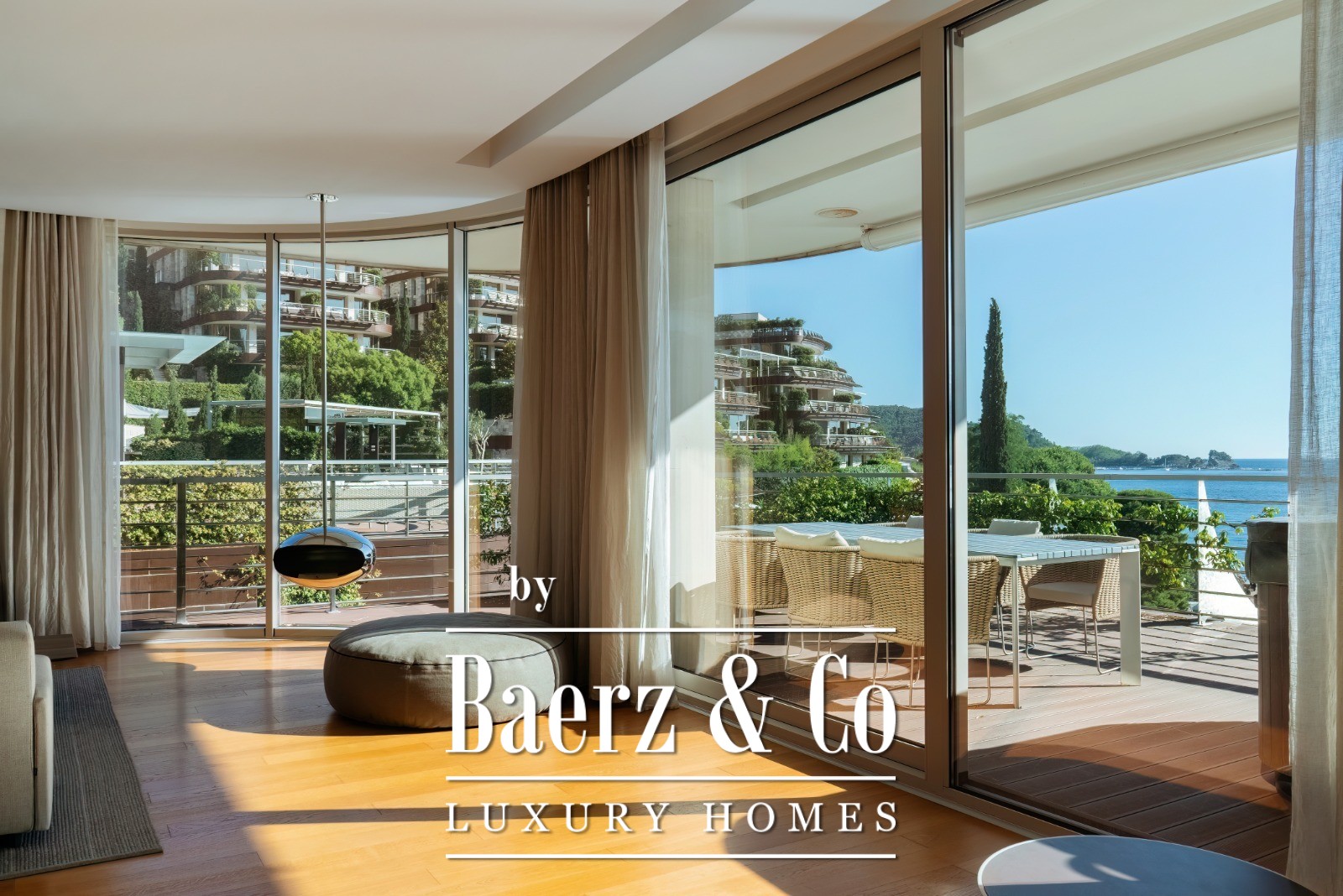 Duplex appartement Budva bevindt zich in een exclusief vijfsterrenresort, met directe toegang tot de Adriatische kust op slechts 50 meter van de zee. Deze residentie van 508 m² ademt ingetogen luxe en privacy, terwijl het bruisende stadscentrum van Budva op slechts 2 km afstand ligt en de internationale luchthavens van Tivat en Podgorica gemakkelijk bereikbaar zijn.