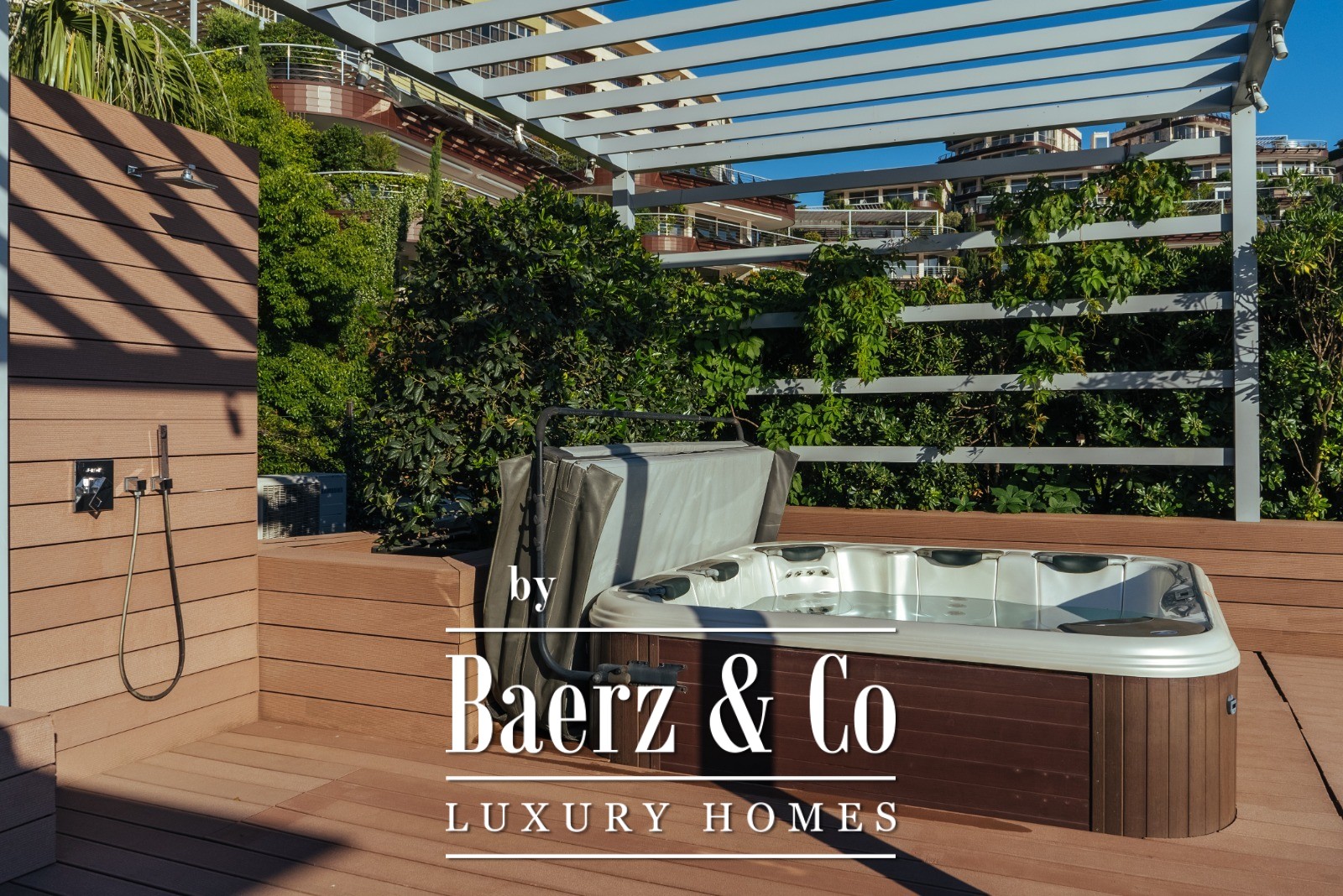 Elke eigenschap van dit duplex appartement Budva is ontworpen voor verfijnd wonen. De indeling bestaat uit een elegante entree, een royale woonkamer die naadloos overgaat in een keuken en eetruimte, een tweede volledig uitgeruste keuken, twee ruime slaapkamers en drie moderne badkamers. De privé buitenruimtes omvatten een terras op de eerste verdieping en een panoramisch dakterras, beide met een eigen jacuzzi en onbelemmerd uitzicht op de Adriatische zee en de omliggende bergen.