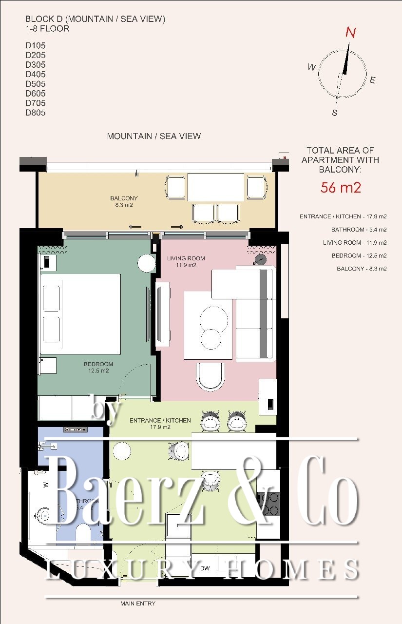 Apartment Budva combineert comfort, gemak en ingetogen stijl op harmonieuze wijze. De woning beslaat 48 m² en kent een doordachte indeling met een entreehal, open woonruimte met keuken en eethoek, één slaapkamer, één badkamer en een privéterras dat het leefgedeelte naar buiten verlengt. Dit appartement wordt volledig gemeubileerd opgeleverd en is direct klaar voor eigen gebruik of moeiteloze verhuur.