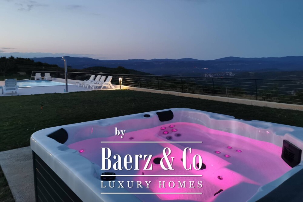 Buiten vindt u een groot zwembad, jacuzzi en een zomerse buitenkeuken op het lager gelegen deel van het perceel, zodat u op elk moment van de dag ongestoord kunt genieten van het uitzicht. Vloerverwarming via een warmtepomp zorgt op beide etages voor aangenaam comfort, ondersteund door zes airconditioners voor zowel verwarming als koeling. Deze villa is even geschikt als besloten woonresidentie of als strategische investering in het rustige landschap van Istrië.