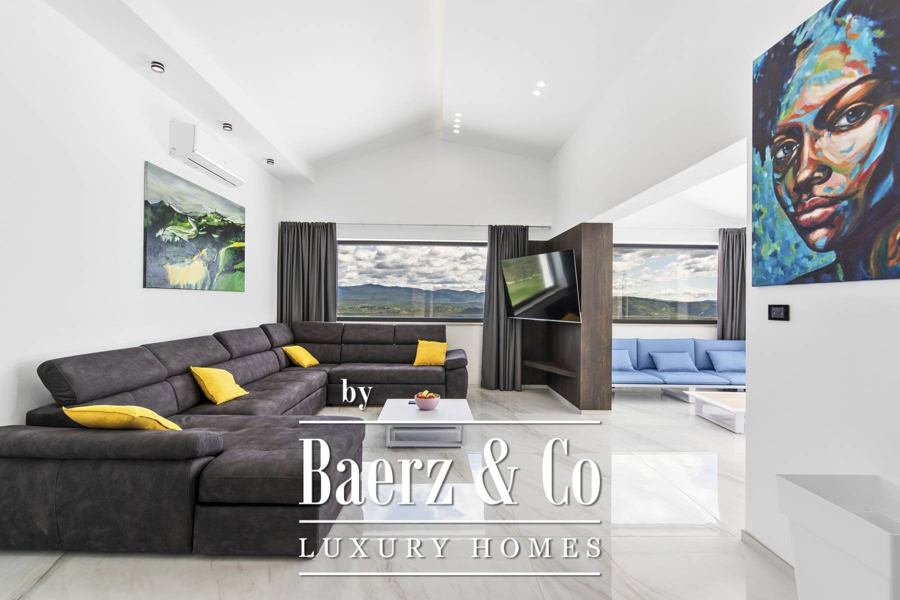 Villa Buzet Istria ligt rustig aan de rand van het dorp en biedt een harmonieuze combinatie van privacy en vrij uitzicht over het Istrische landschap. Met een woonoppervlakte van 280 m² op een royaal perceel van 1.800 m² verenigt deze villa modern ruimtelijk design met een serene natuurlijke omgeving.