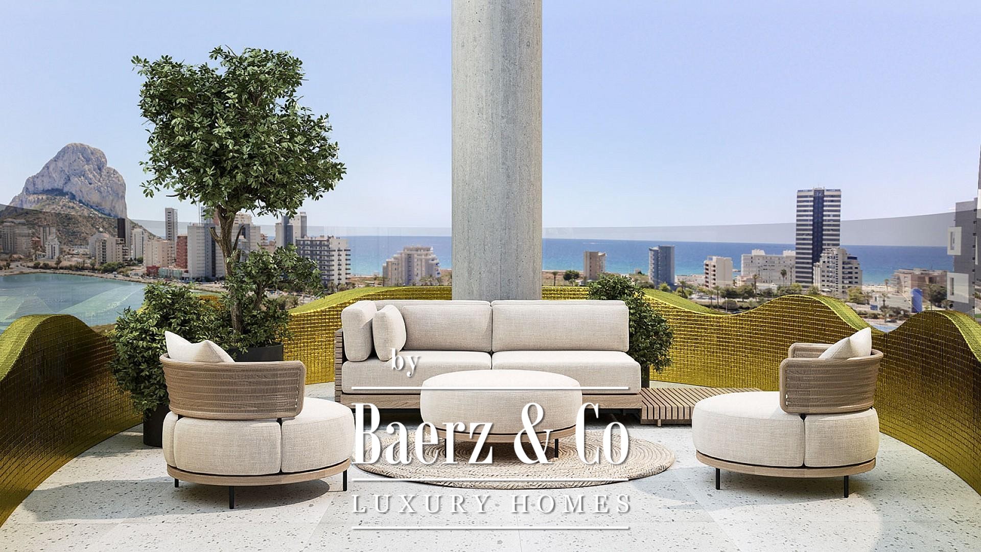 Nieuw prestigieus project van 32 luxe appartementen, verdeeld over 17 verdiepingen, op slechts 500m van het strand in Calpe. Het opvallende gebouw heeft een keramische bekleding in wit en goud en de terrassen steken uit als gouden bladeren. Het is zo ontworpen dat elk appartement 180° zicht heeft op al het beste van Calpe: Playa del Arenal, Playa de la Fossa, las Salinas en natuurlijk de Peñón de Ifach.