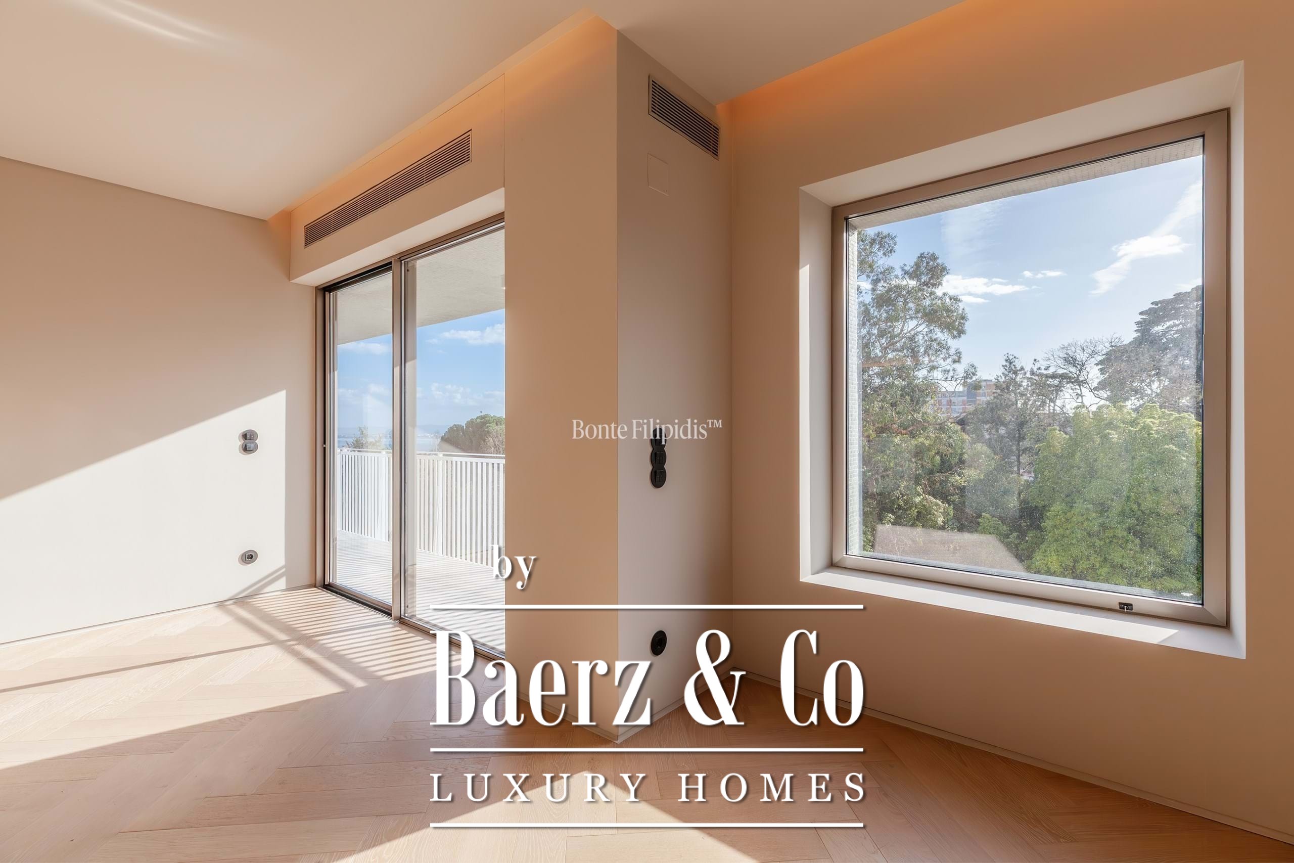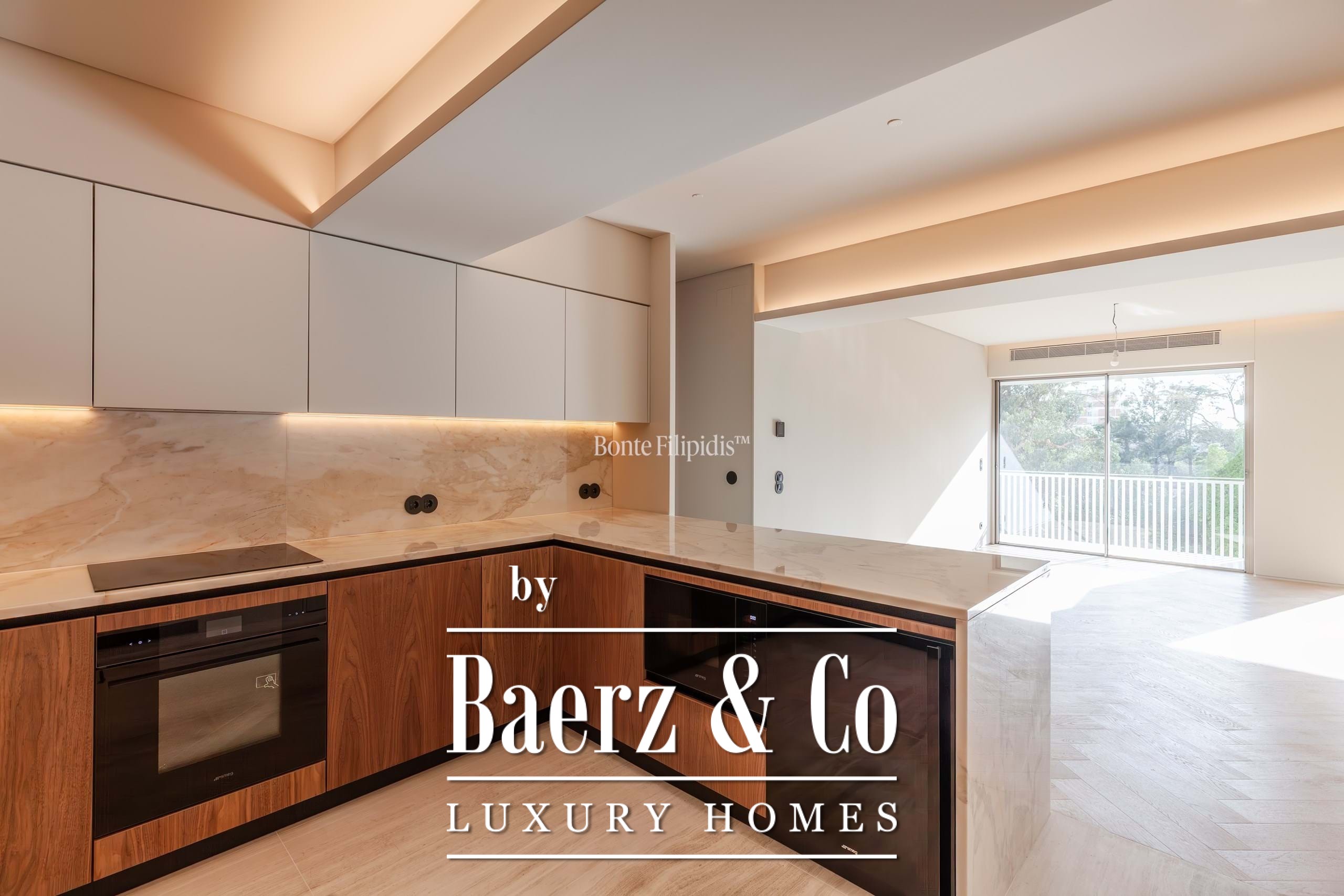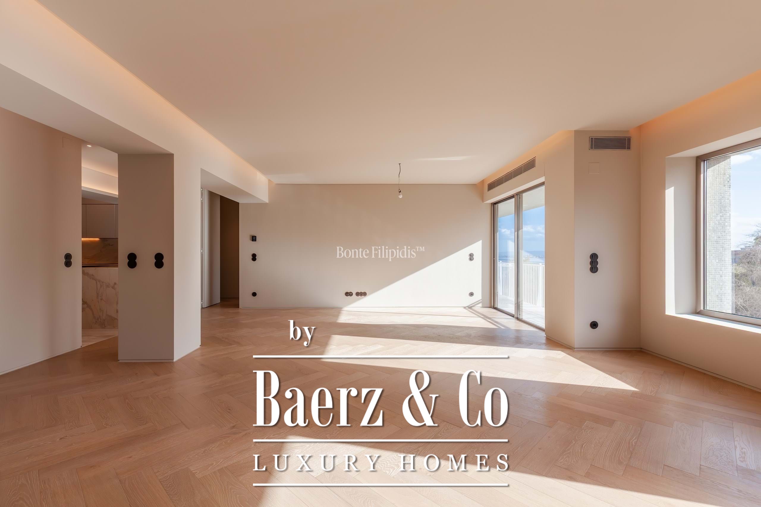 Een royale entreehal leidt naar de riante woonkamer van 48 m², rijk aan natuurlijk licht en met uitzicht op de rivier vanaf een uitnodigend balkon. De ruimte staat in directe verbinding met een moderne keuken van 15,4 m², uitgerust met Smeg-inbouwapparatuur, ideaal voor zowel dagelijks gebruik als intieme bijeenkomsten. Vloerverwarming en airconditioning zorgen het hele jaar voor comfort, aangevuld met overal dubbele beglazing.