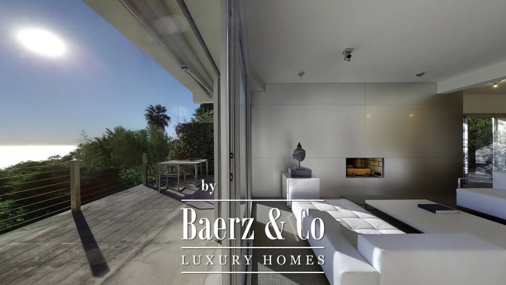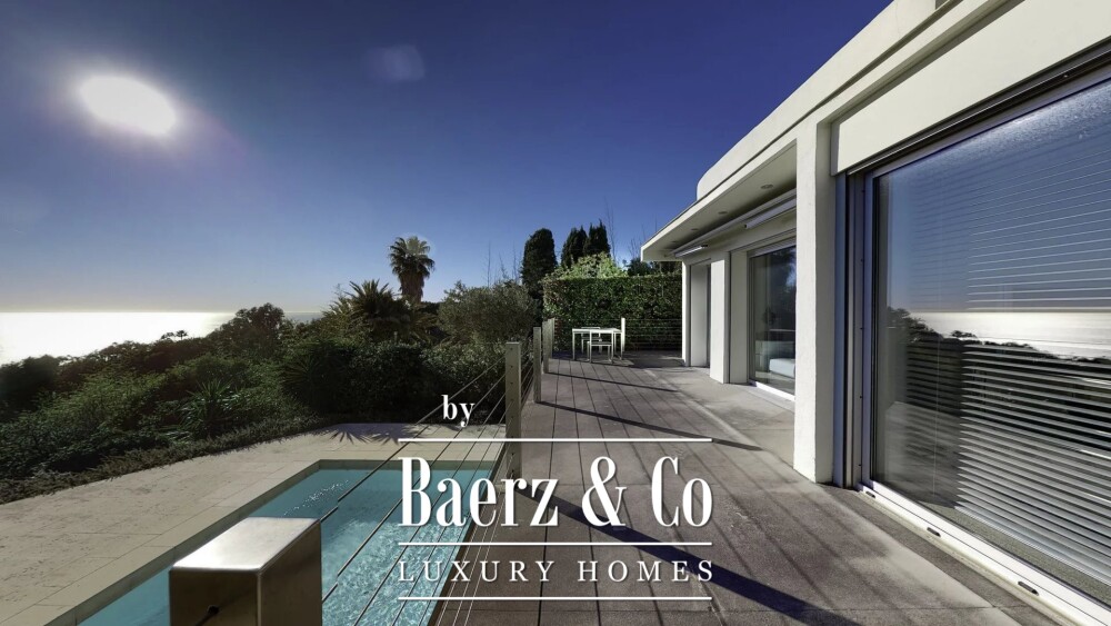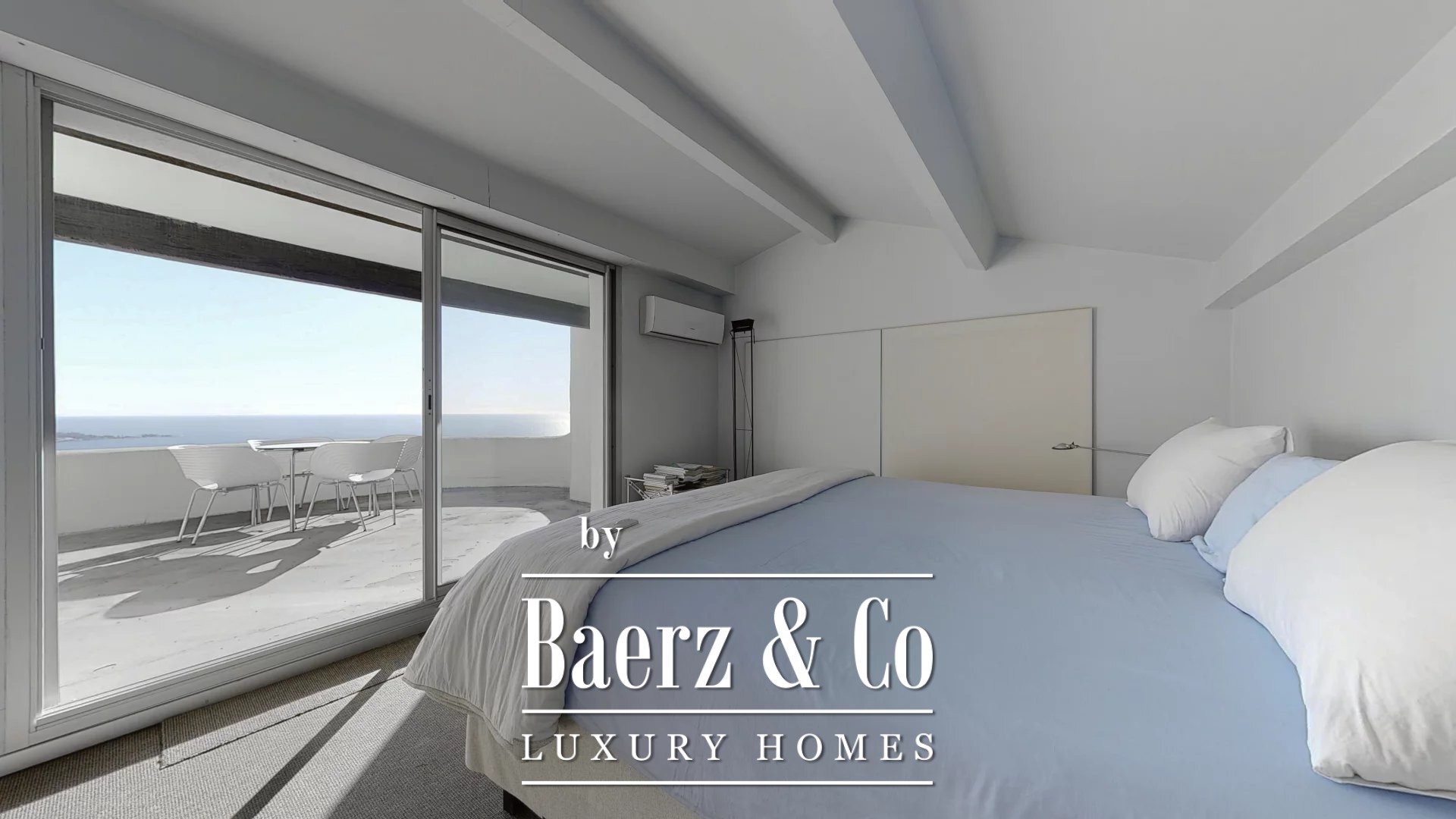 Er zijn vier slaapkamers en twee badkamers, met een indeling die geschikt is voor gezinsleven of het ontvangen van gasten met optimale discretie. Verschillende terrassen trekken het buitenleven naar binnen en bieden plekken voor reflectie hoog boven stad en zee. Een zwembad met een eigen strand maakt het geheel compleet, gelegen op een perceel van 1.378 m² waar privacy hand in hand gaat met een gevoel van ruimte.