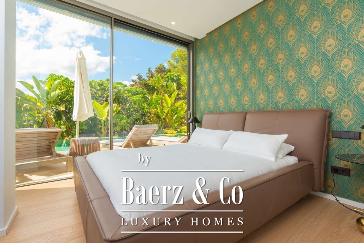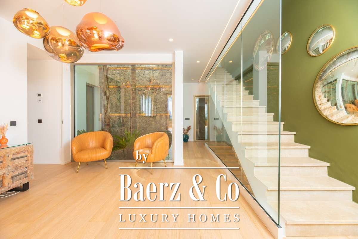 De omgevingCasa Legatus bevindt zich in het prestigieuze Cap Martinet, een van de meest gewilde locaties van Ibiza. Vanuit de villa geniet u van een adembenemend uitzicht over de Middellandse Zee tot aan Dalt Vila, de historische oude stad. Op loopafstand vindt u het iconische ClapHouse, terwijl de stranden van Talamanca, de exclusieve Marina Botafoch met toprestaurants en boetieks, en de charmante straatjes van Ibiza-Stad snel bereikbaar zijn. De luchthaven ligt op slechts 20 minuten rijden, waardoor u een perfecte combinatie van privacy, rust en bereikbaarheid heeft.De villaDeze in 2021 gebouwde villa combineert modern comfort met hoogwaardige afwerking. Met 525 m² woonoppervlak op een perceel van 806 m² biedt Casa Legatus elegantie over meerdere verdiepingen, verbonden door een natuurstenen trap en een lift. De villa beschikt over zeven luxe slaapkamers, elk met een eigen en-suite badkamer. Het hoogtepunt is de master suite op de bovenste verdieping, met een privéterras en spectaculair uitzicht