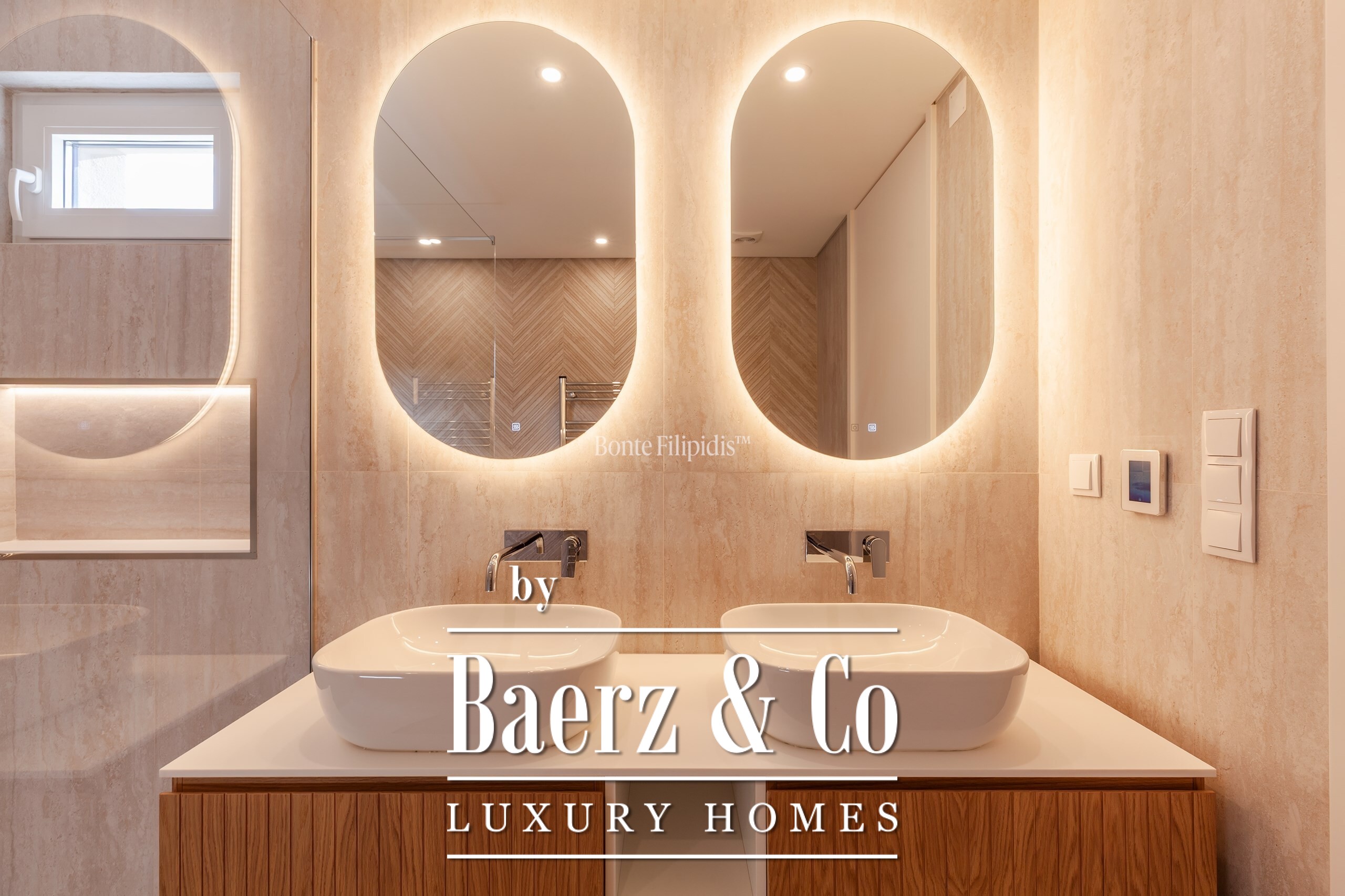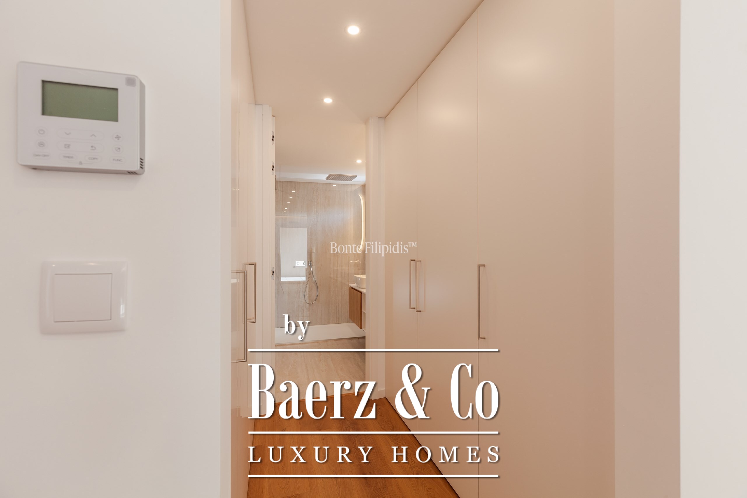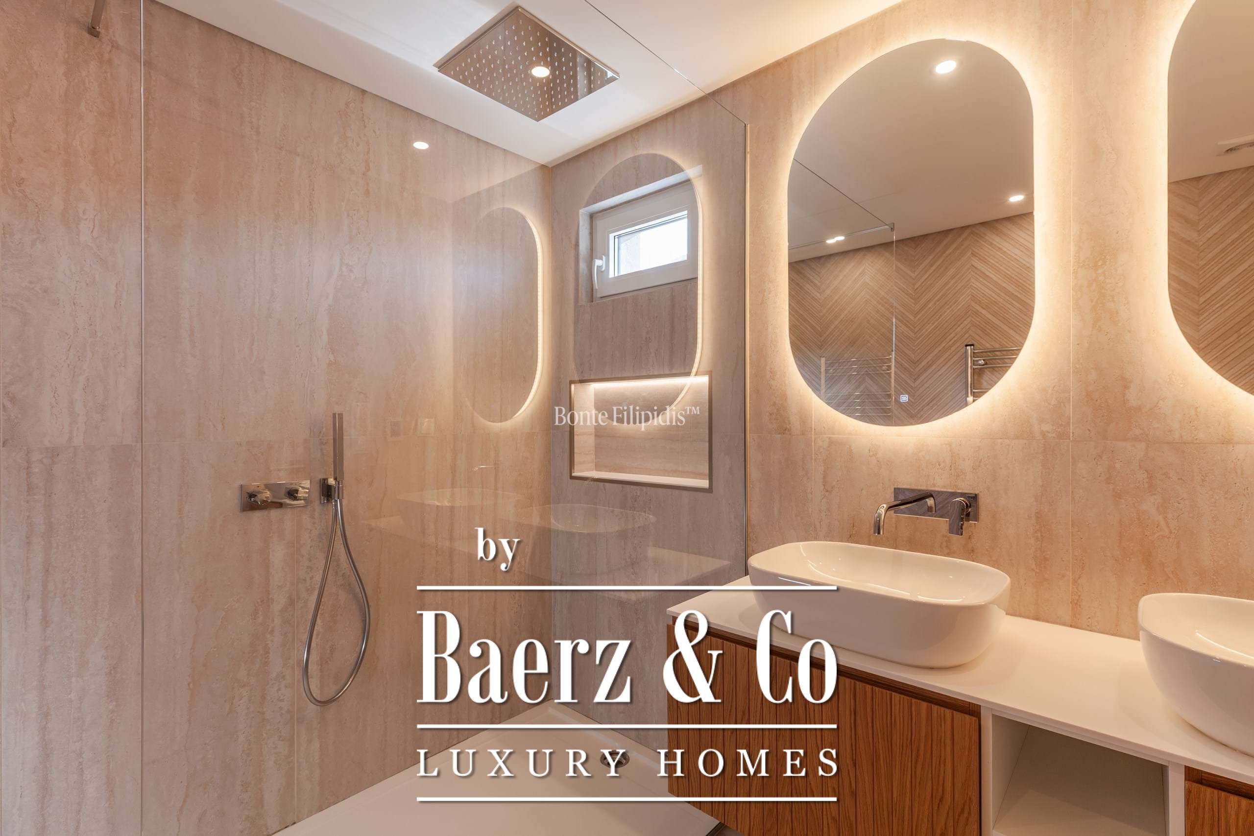 Op de begane grond verbindt een open keuken met hoogwaardige inbouwapparatuur zich met de woonkamer, ideaal voor samenkomsten of rustige avonden. Directe toegang tot het exterieur vergroot de lichtinval en het gevoel van verbondenheid, terwijl een suite op deze verdieping voor flexibiliteit zorgt. Op de eerste verdieping vindt u een serene master suite met inloopkast, verder twee extra slaapkamers en een luxe badkamer, alle met veel natuurlijk licht en hoogwaardige afwerking.