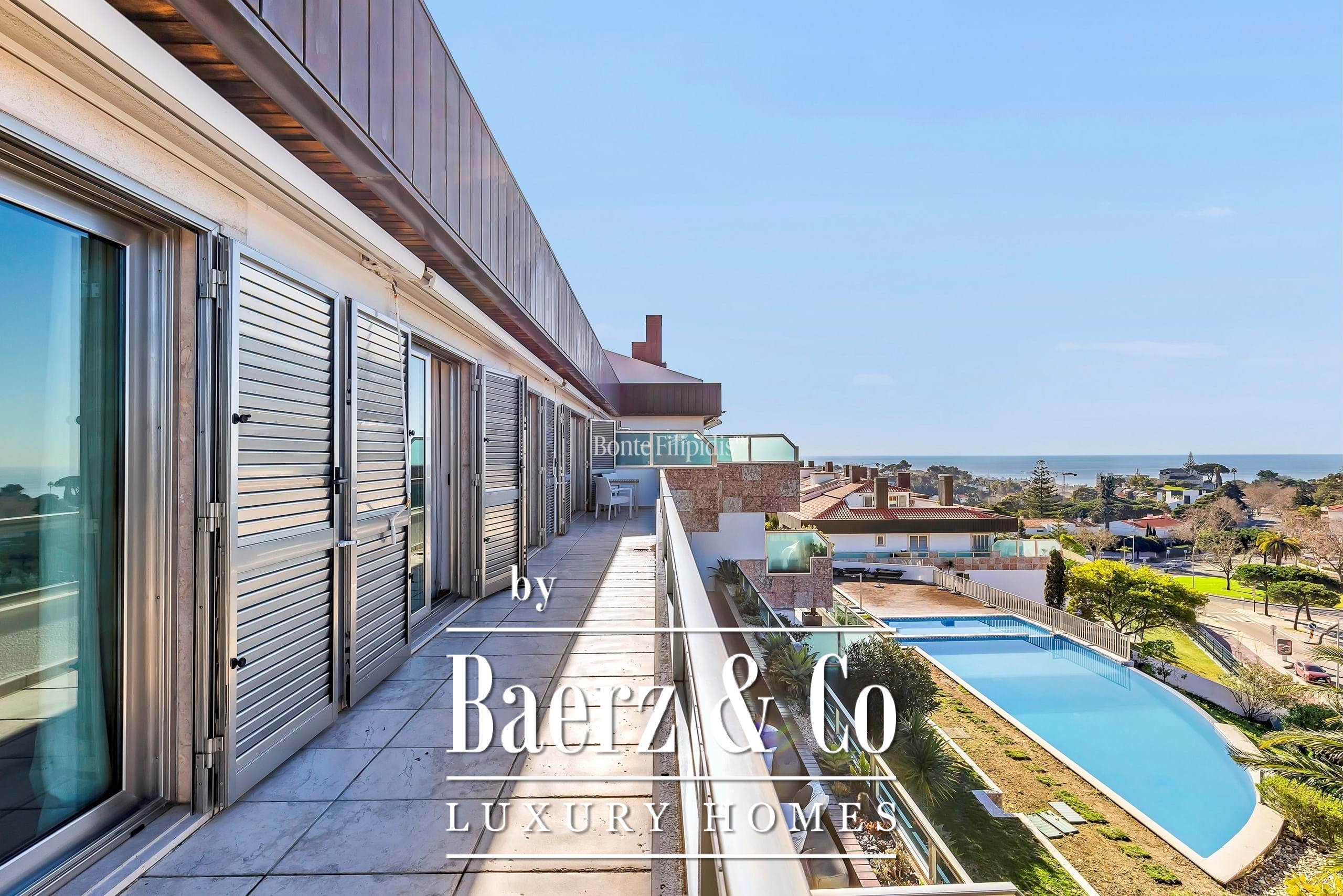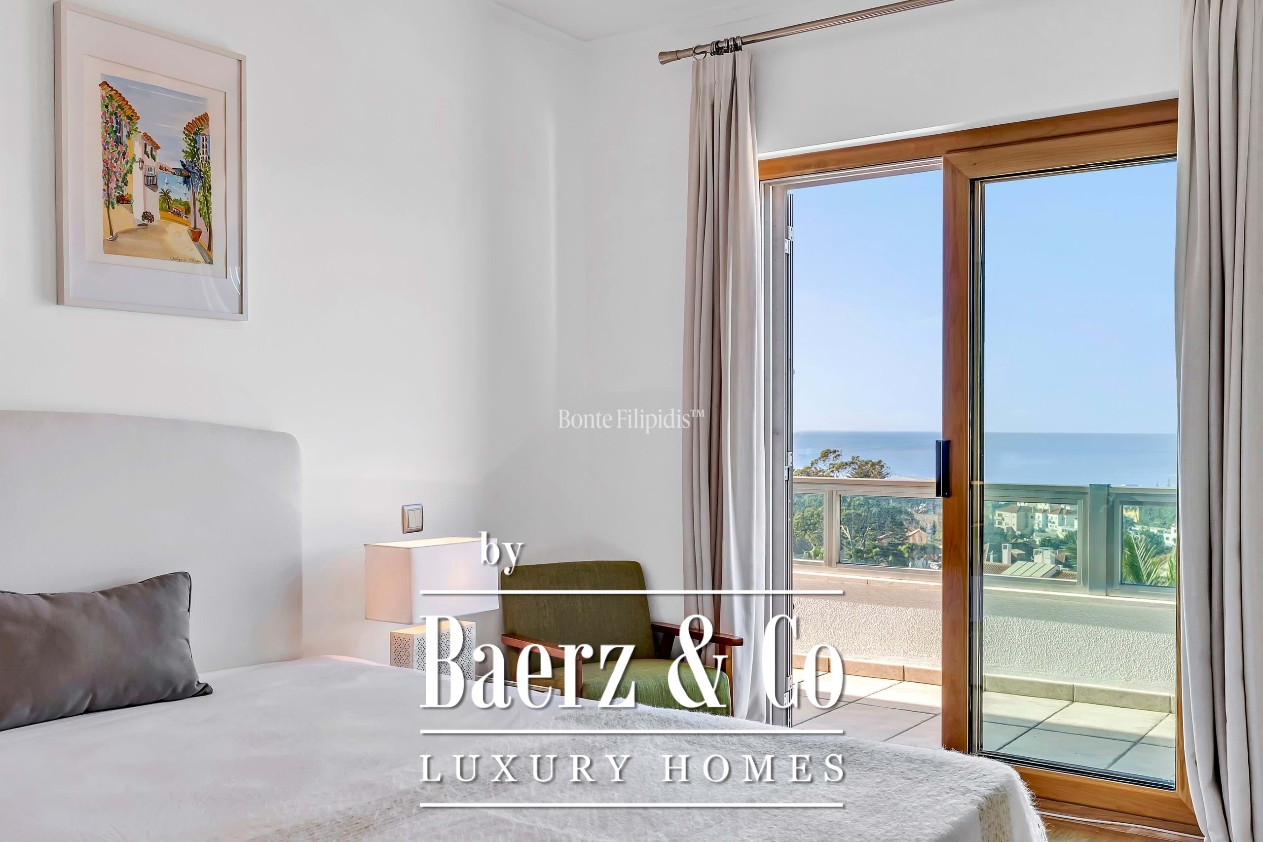 Een terras van 24,18 m² loopt over de volledige voorgevel en is bereikbaar vanuit alle hoofdvertrekken, waarmee het gevoel van binnen- en buitenleven en het onbelemmerde uitzicht op de Atlantische Oceaan wordt versterkt. De hoofdsuite en de tweede slaapkamer bieden een gevoel van afzondering, aangevuld met badkamers voorzien van verwarmde handdoekrekken.