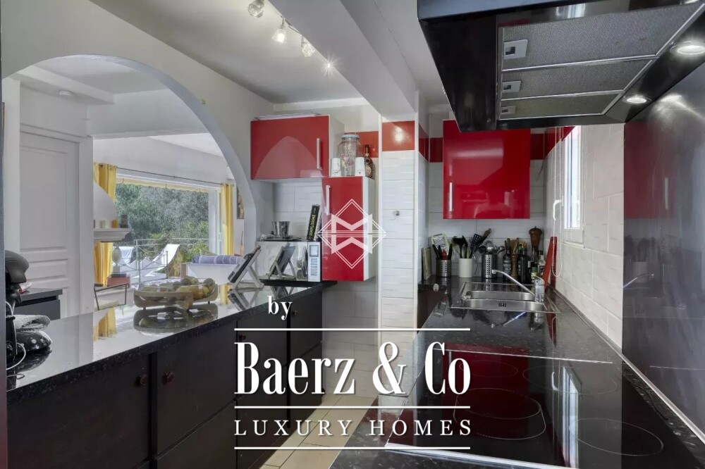 House Cavalaire-sur-Mer ligt op de top van de heuvels en biedt een weids uitzicht over de baai en de zee. Deze woning combineert het karakteristieke Provençaalse gevoel met een hedendaagse uitstraling; de interieurs worden gekenmerkt door lichtinval en openheid. Vier slaapkamers en drie badkamers strekken zich uit over circa 178 m² woonoppervlakte, met terrassen die de wisselende mediterrane horizon prachtig inkaderen. De open keuken is volledig uitgerust en vloeit moeiteloos over in royale leefruimtes, ontworpen voor een naadloze verbinding met buiten.
