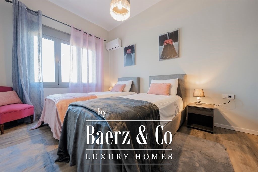Het appartement is zorgvuldig en volledig gerenoveerd, waarbij hedendaags design wordt gecombineerd met hoogwaardige materialen. De woon- en eetkamer verbreden naar het balkon aan de waterzijde, waardoor natuurlijk licht binnenvalt en dagelijks het uitzicht op de Egeïsche Zee en de zonsondergang wordt omlijst. De aparte, volledig uitgeruste keuken biedt privacy en praktisch comfort, terwijl alle drie de slaapkamers voorzien zijn van royale inbouwkasten en een veilige kluis. Twee badkamers zijn gericht op comfort en helderheid, met moderne afwerkingen die de kwaliteitsbeleving versterken.