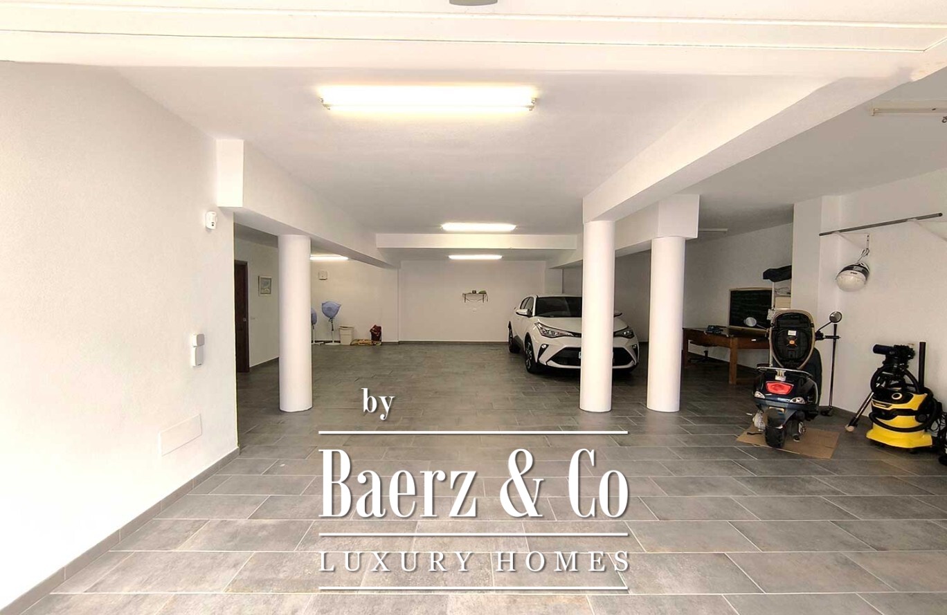 Het souterrain onder de villa beslaat de volledige omvang van het huis en biedt een uitzonderlijke garage met ruimte voor meerdere voertuigen. Geavanceerde klimaatregeling — met vloerverwarming op de begane grond, centrale verwarming boven, airconditioning, zonnepanelen en een centraal stofzuigsysteem — onderstreept het streven naar comfort en duurzaamheid.