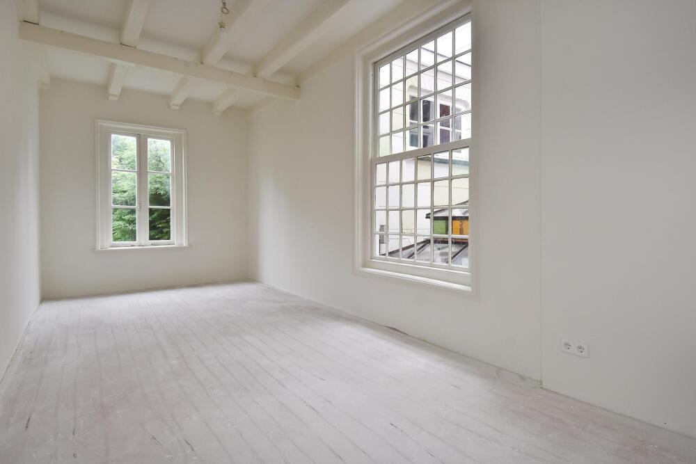 Een prachtige verdieping met zicht op de originele kapconstructie. Aan de voorzijde een bijzonder lichte multifunctionele ruimte. Verder een grote bergruimte en toiletruimte. Extra daglicht via de hoog geplaatste nieuwe ramen boven de vide.