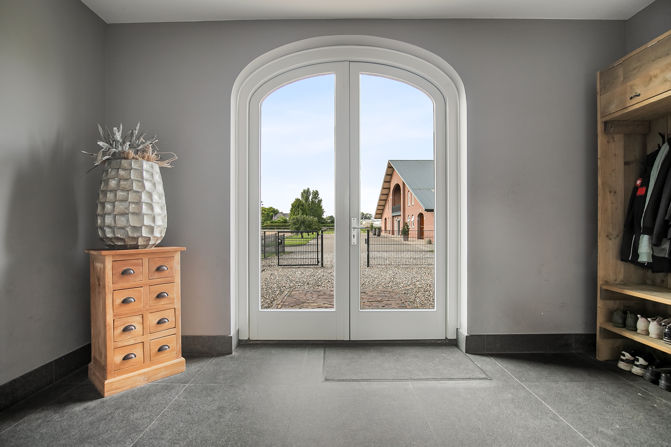- Aan zowel de voor- als de achterzijde van de rijhal is een appartement gesitueerd, deze zijn perfect als