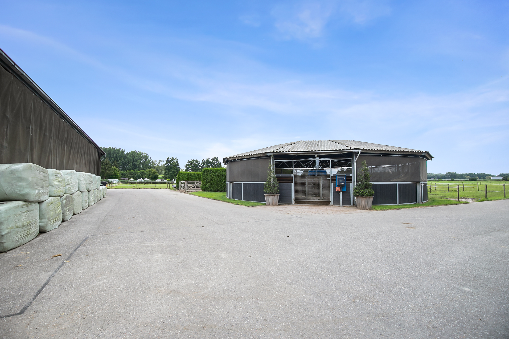 De goed onderhouden hippische accommodatie bestaat uit een vrijstaande rijhal met een binnenpiste (ca. 21x61 mtr.), een paardenstal met een ontvangstgedeelte en in totaal 39 paardenboxen verdeeld over 2 gangen en een vrijstaande veldschuur. Het erf is verder ingericht met een buitenpiste, overdekte stapmolen, een longeercirkel, diverse paddocks en een mestvaalt. Er is voldoende parkeergelegenheid aanwezig voor het stallen van o.a. trailers en vrachtwagens.