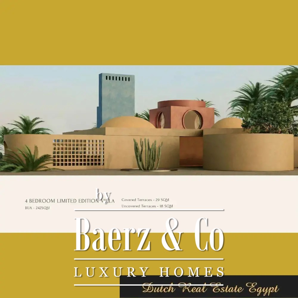 Villa El Gouna vormt een uitnodiging tot verfijnd wonen aan de kust, met een heldere visie op zowel privacy als openheid. De woning beschikt over een royale woonoppervlakte van 224.242 m² met vier slaapkamers en vijf badkamers, die volop ruimte biedt voor ontspanning en gastvrijheid. De villa combineert het comfort binnen met karaktervolle buitenruimtes, waaronder een privézwembad, een rustige tuin en doordachte patio’s, balkons en een dakterras waar zacht briesje en natuurlijk daglicht naar binnen worden gehaald.