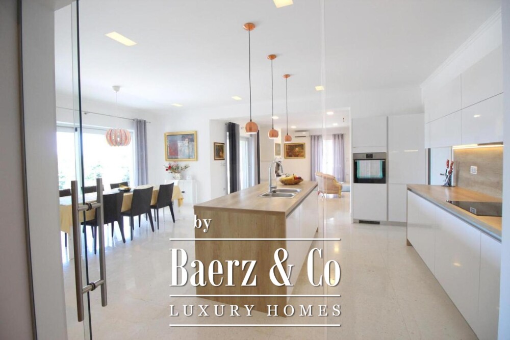 Vier ruime slaapkamers en drie badkamers zijn het decor voor zowel afzondering als samenzijn, waarbij hoogwaardige keramische vloeren voor een subtiel gevoel onder de voeten zorgen. Een warmtepompsysteem garandeert gedurende alle seizoenen efficiënte verwarming en verkoeling. De woning wordt volledig gemeubileerd aangeboden en is direct te betrekken.