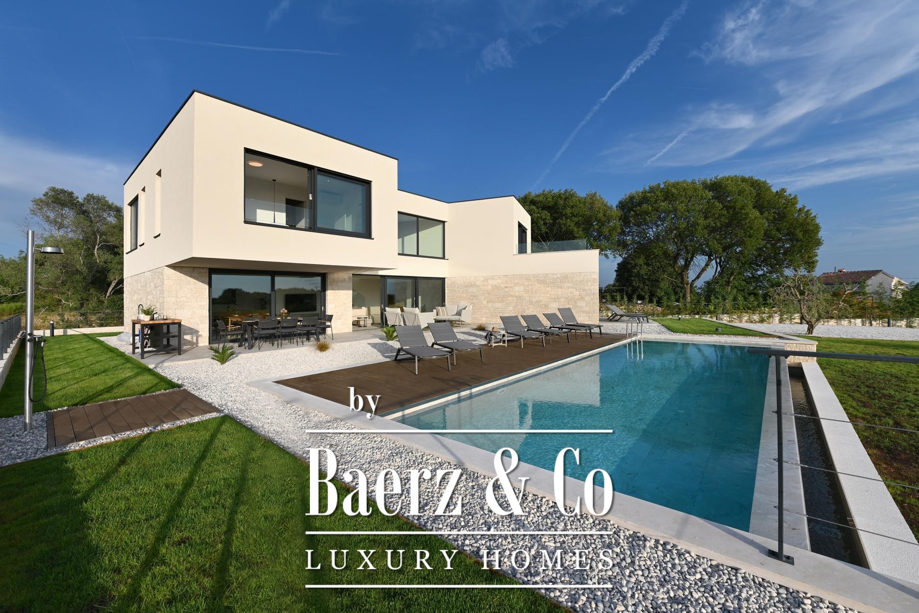 Villa Kanfanar met zwembad nodigt uit tot ontdekking vlak buiten Rovinj, gelegen in het rustige dorp Jural. Deze villa van 272 m² belichaamt verfijnd Mediterraan wonen, omringd door ongerepte natuur en op slechts 1.500 meter van de zee, wat zowel privacy als rust garandeert. De villa is zorgvuldig ingedeeld over twee verdiepingen. De begane grond beschikt over een uitnodigende entreehal, een lichte woonkamer met glazen puien, een keuken met kookeiland, een eetgedeelte, een gastenslaapkamer met parketvloer, een badkamer, een extra toilet en twee ruime overdekte terrassen die ideaal zijn voor ontspannen samenzijn. Op de eerste verdieping profiteren drie slaapkamers ieder van een eigen en suite badkamer en is er een onoverdekt terras met prachtig uitzicht over het Limfjord en de Adriatische Zee. Het perceel van 871 m² omvat een zwembad van 11 bij 4 meter, een buitendouche, geselecteerd tuinmeubilair en volop ruimte om buiten te genieten. Airconditioning in elke kamer en de mogelijkheid tot vloerverwarming zorgen voor comfort het hele jaar door. Villa Kanfanar met zwembad is een zeldzaam aanbod in Kroatië, geschikt voor zowel privégezinsleven als de kritische belegger die op zoek is naar rust dichtbij zee.