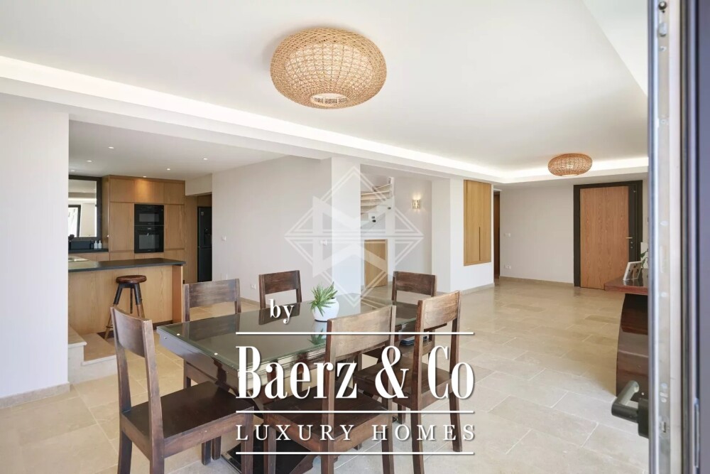 Villa Saint-Paul-de-Vence brengt een harmonieuze synthese van neo-Provençaalse architectuur en eigentijdse verfijning, gerealiseerd dankzij een recente luxueuze renovatie afgerond in januari 2024. De villa bevindt zich op een zuidgeoriënteerde helling en biedt een panoramisch uitzicht van Cap Ferrat tot aan Cap d'Antibes, met het middeleeuwse dorp als steeds aanwezige achtergrond.