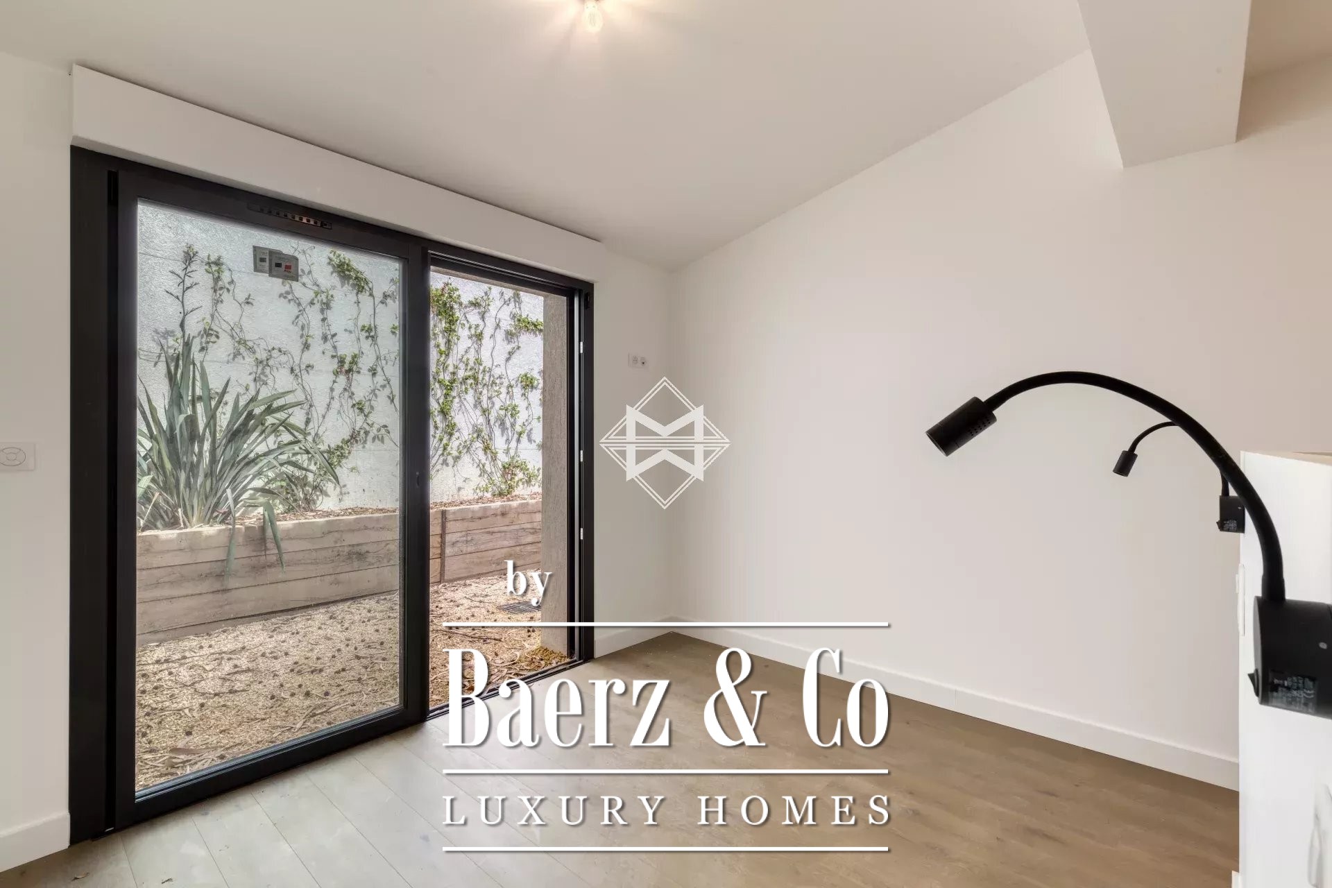 Op het lager gelegen niveau biedt het zelfstandige appartement van 45 m² een woonkamer met open keuken, een slaapkamer met aangrenzende badkamer en directe toegang tot de tuin. De villa staat op een perceel van 1.015 m² aangelegde tuin, is georiënteerd op het zuidoosten en beschikt over een verwarmd zwembad, een dakterras, een carport voor twee auto's en discrete veiligheidsvoorzieningen zoals airconditioning, alarm en bewakingscamera's.