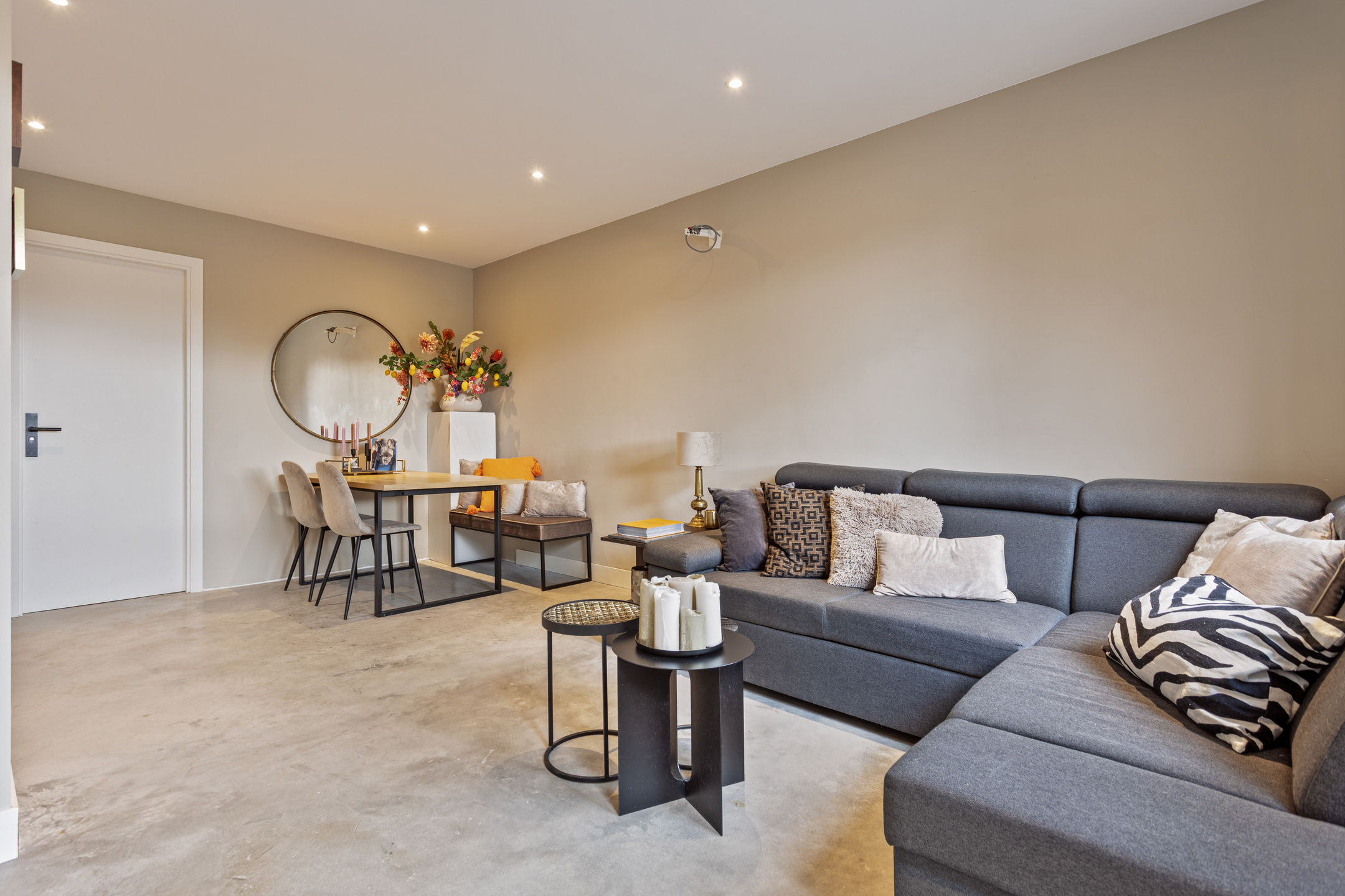 De gehele begane grond verdieping is voorzien van een gevlinderde gietbeton vloer met vloerverwarming.