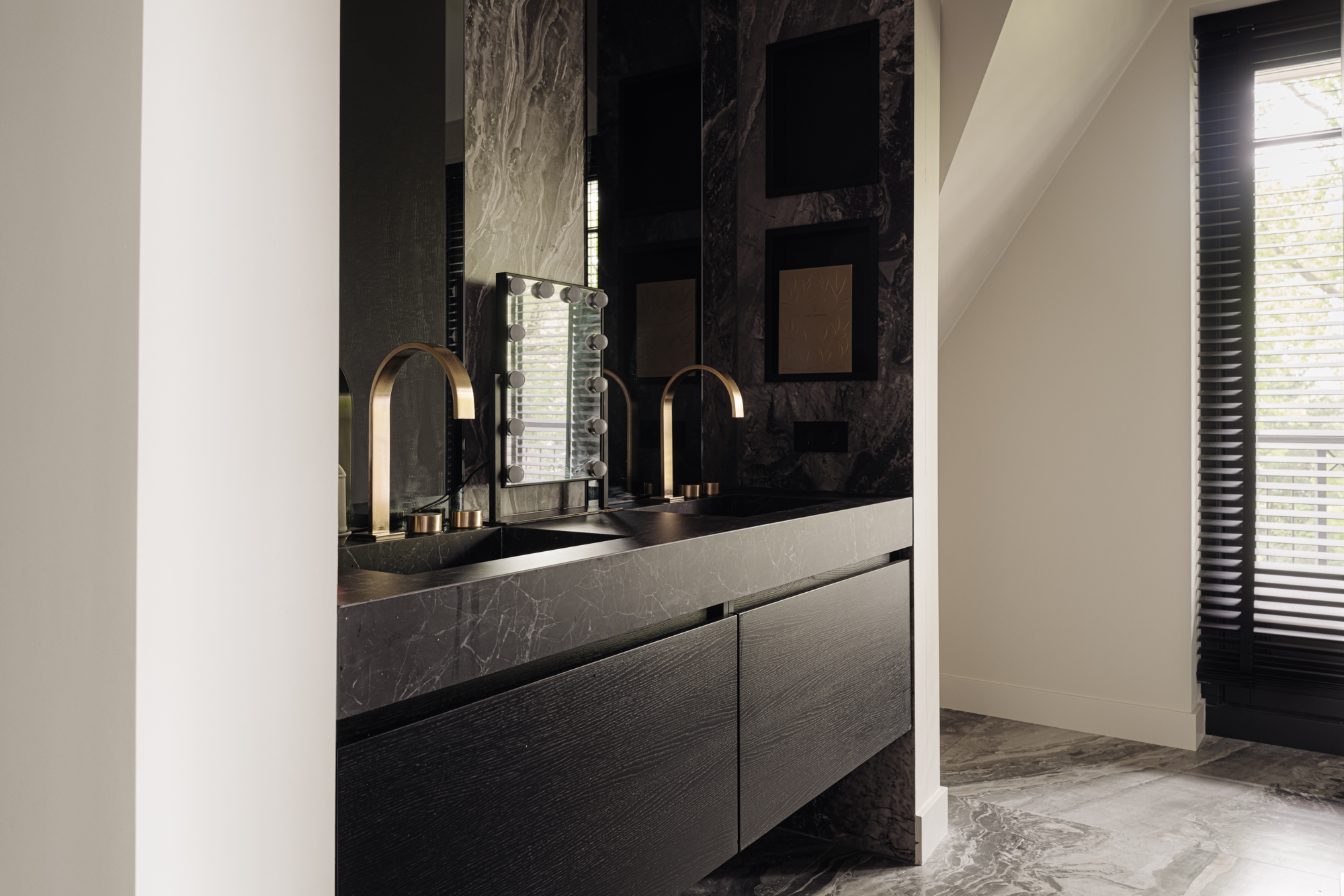 Direct vanuit de living bereikt u de keuken, een eerbetoon aan culinaire kunsten, compleet met luxe marmeren werkblad en state-of-the-art apparatuur die zelfs de meest veeleisende fijnproever zal bekoren. Hierbij kunt u denken aan o.a. een XL-wijnklimaatkast, vaatwasser, (stoom)oven, ingebouwd koffiezetapparaat en inductiekookplaat van het gerenommeerde merk Miele. Vanuit de keuken is er wederom een naadloze overgang tussen binnen- en buiten dankzij de bar aan het kookeiland met direct daarachter dubbele openslaande deuren naar het terras. Een heerlijke plek voor een koel glas rosé tijdens zomerse avonden.