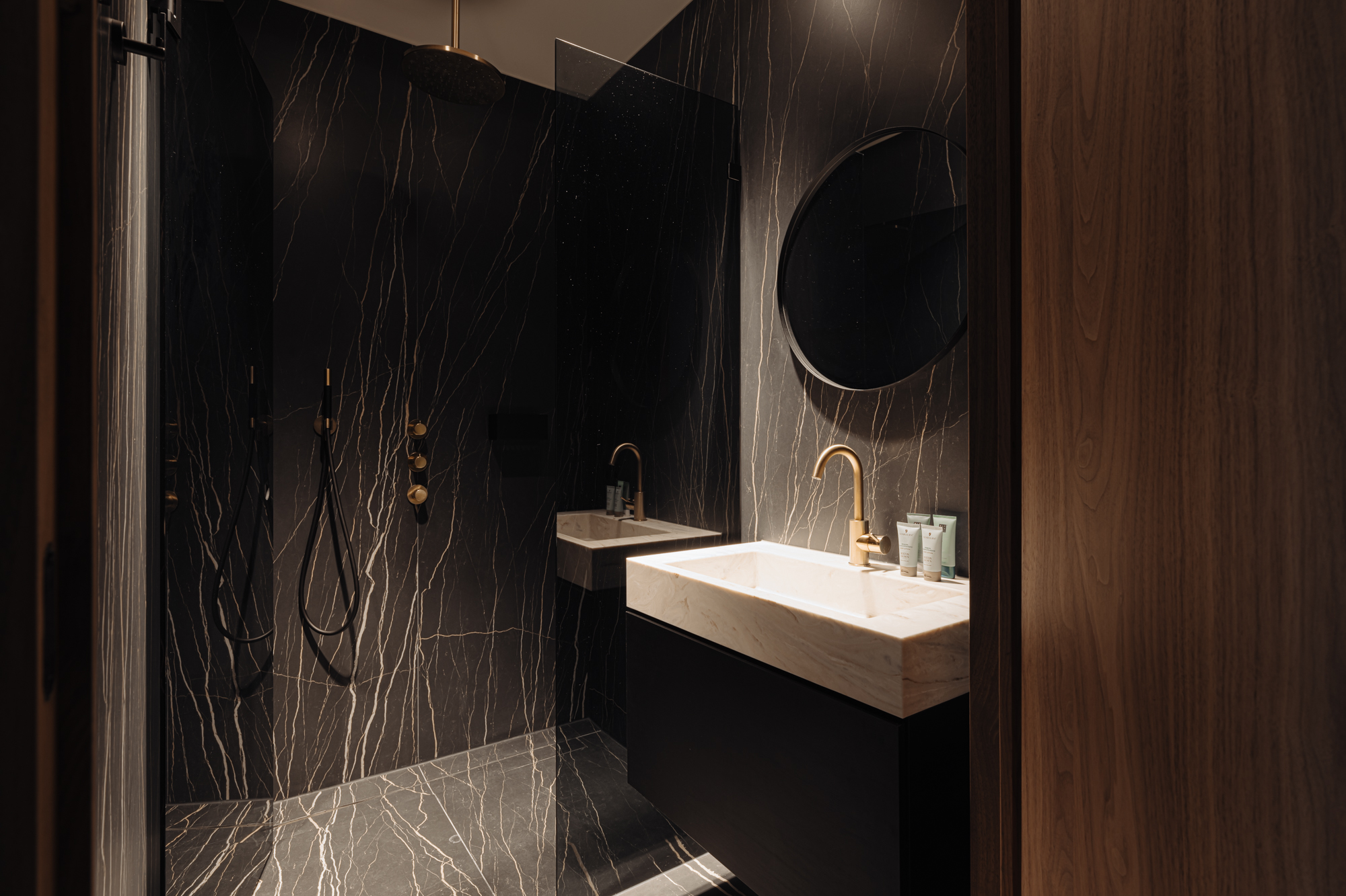 Achter de dubbele voordeur ligt een appartement van internationale allure. Hier komen excellente materiaalkeuze, uitmuntend vakmanschap en oog voor detail samen, om een unieke woonbeleving te creëren die zich het beste laat omschrijven als “suite” life. Hier komt de warmte van een thuis samen met de luxe van een vijfsterrenhotel.