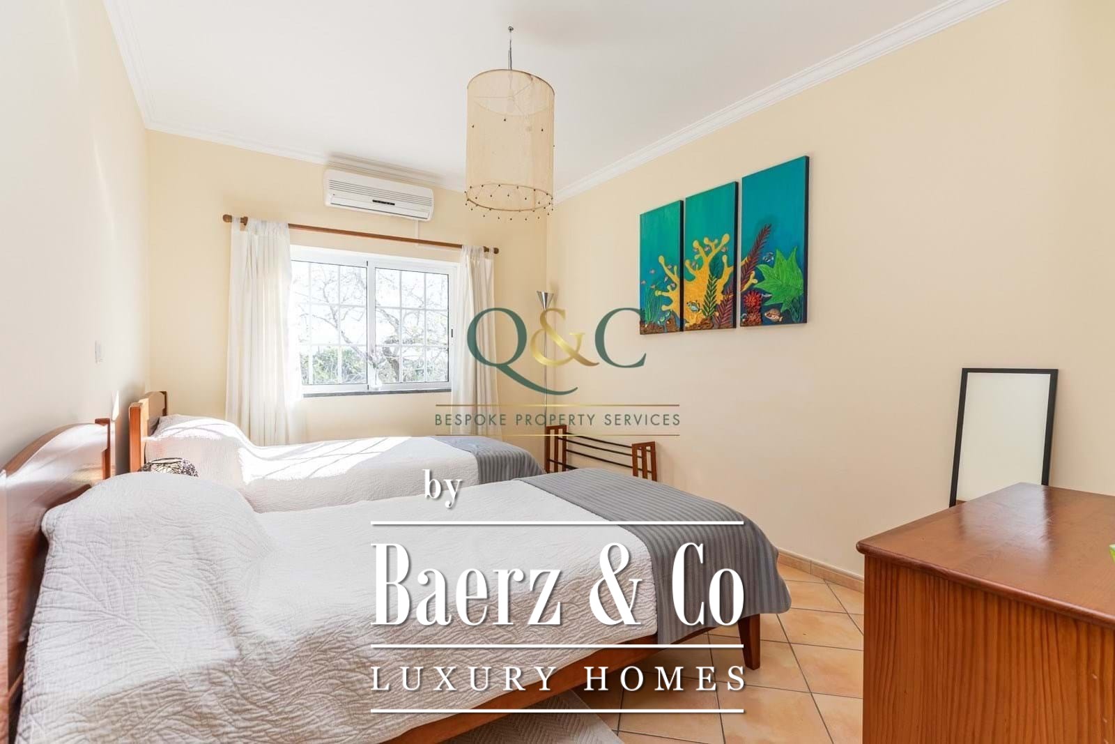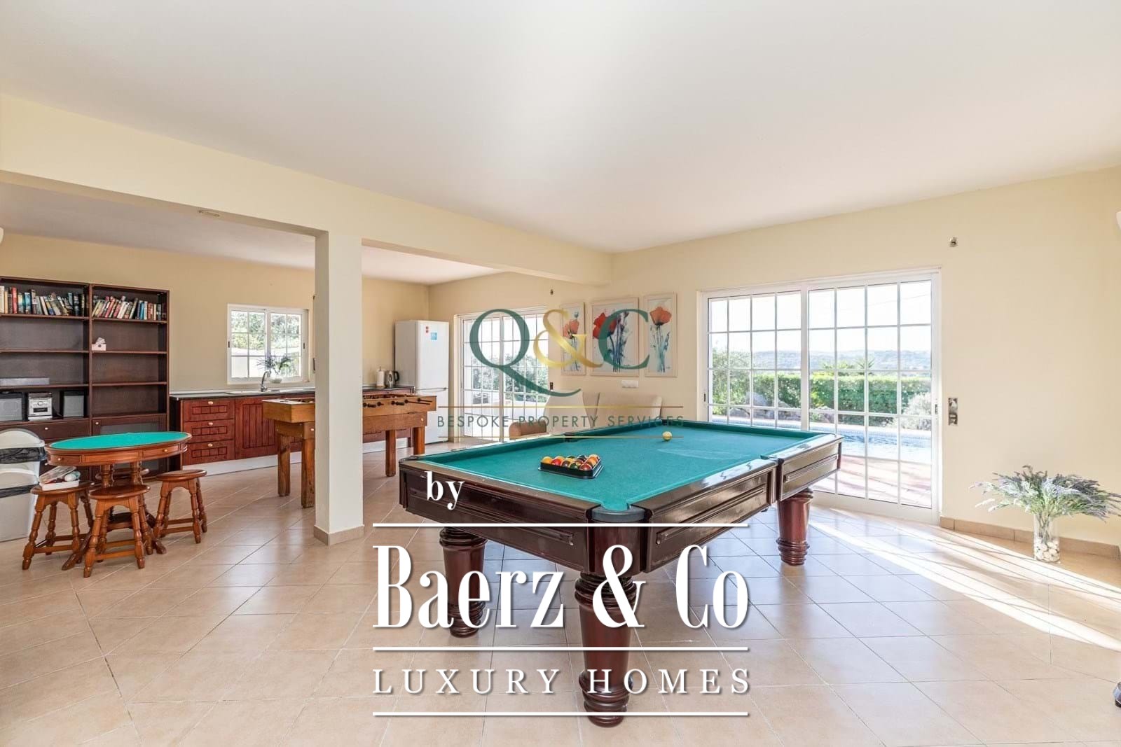 Een trap leidt naar een royale speelkamer met eigen keuken en badkamer, eenvoudig in te richten als vierde slaapkamer of zelfstandig appartement. Diverse terrassen, een dakterras met breed uitzicht, volwassen tuinen en een royaal zwembad bieden volop mogelijkheden voor rust, gezellig samenzijn of een discrete terugtrekking. Kenmerken zijn onder meer volledige airconditioning, dubbele beglazing, barbecue, irrigatiesysteem, parkeergelegenheid op eigen terrein en aansluiting op het gemeentelijke waternet. Deze villa biedt een directe verbinding met het ritme van het landelijke leven in de Algarve, binnen handbereik van stedelijke voorzieningen.