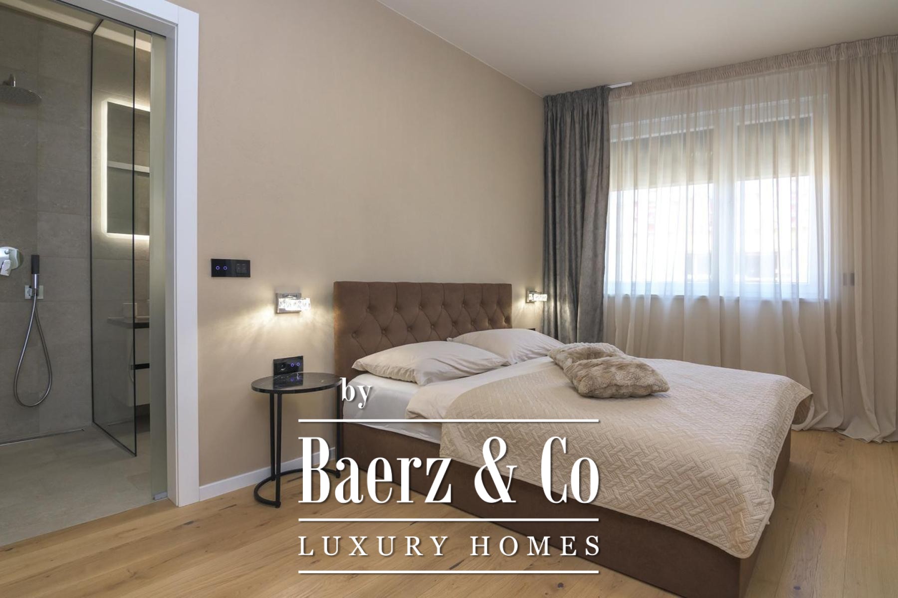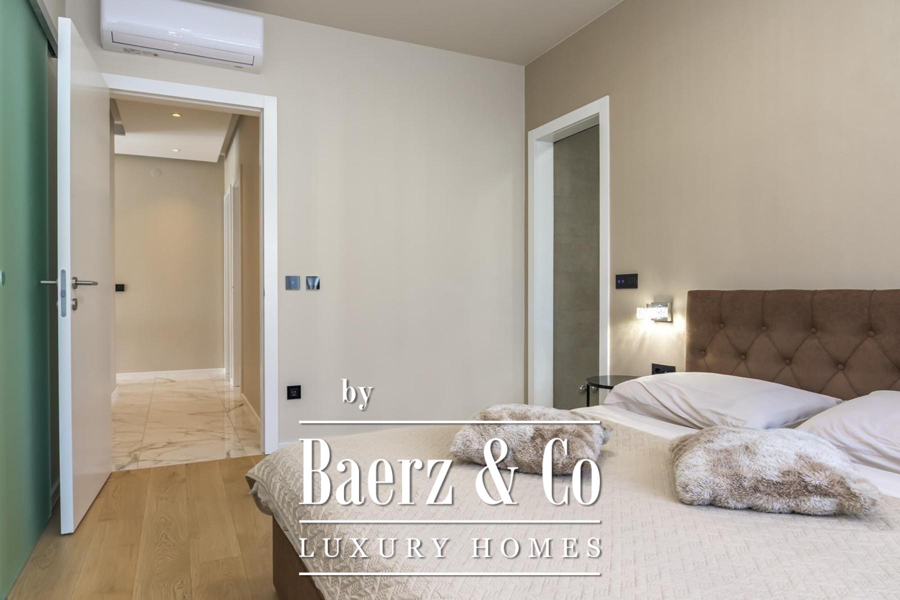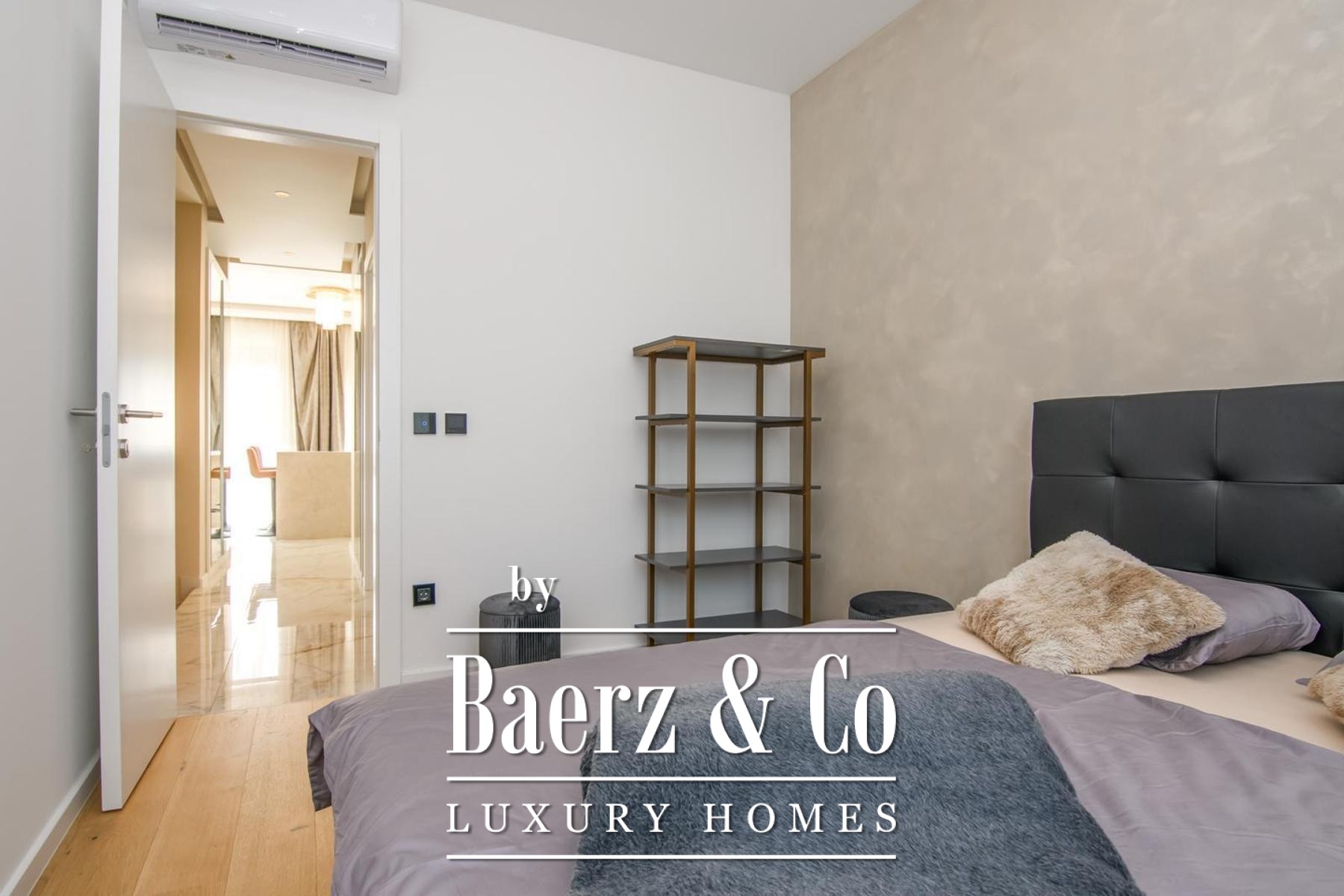 De indeling bestaat uit drie afzonderlijke slaapkamers, een aparte werkkamer en twee badkamers en is tot in detail ontworpen voor modern comfort. Hoogwaardige voorzieningen zijn onder meer vloerverwarming in het gehele appartement, volledige airconditioning per ruimte en maatwerk ingebouwde meubels voor zowel functionaliteit als een helder lijnenspel. Aan bergruimte is gedacht met een aparte kamer en er zijn twee parkeerplaatsen—één overdekt, één onoverdekt—voor extra gemak.