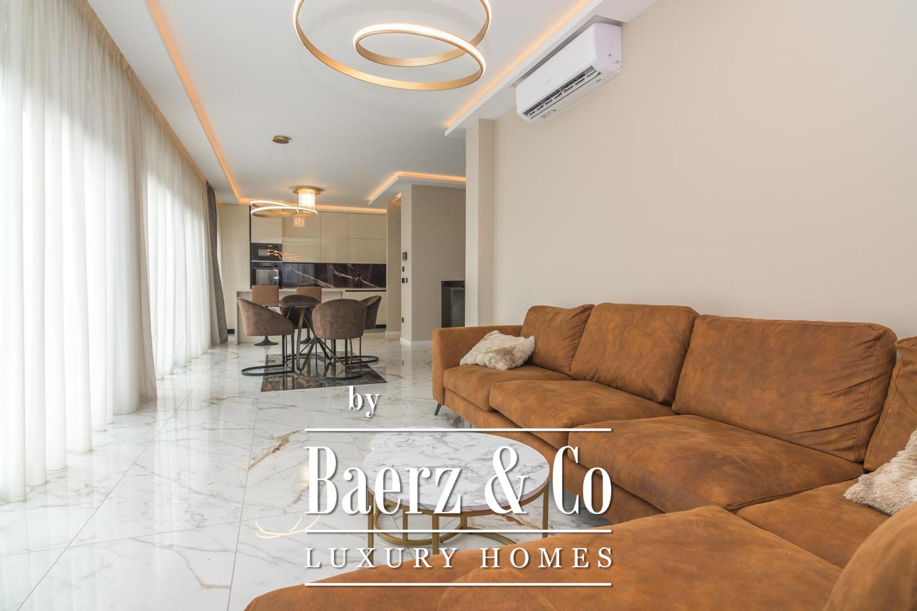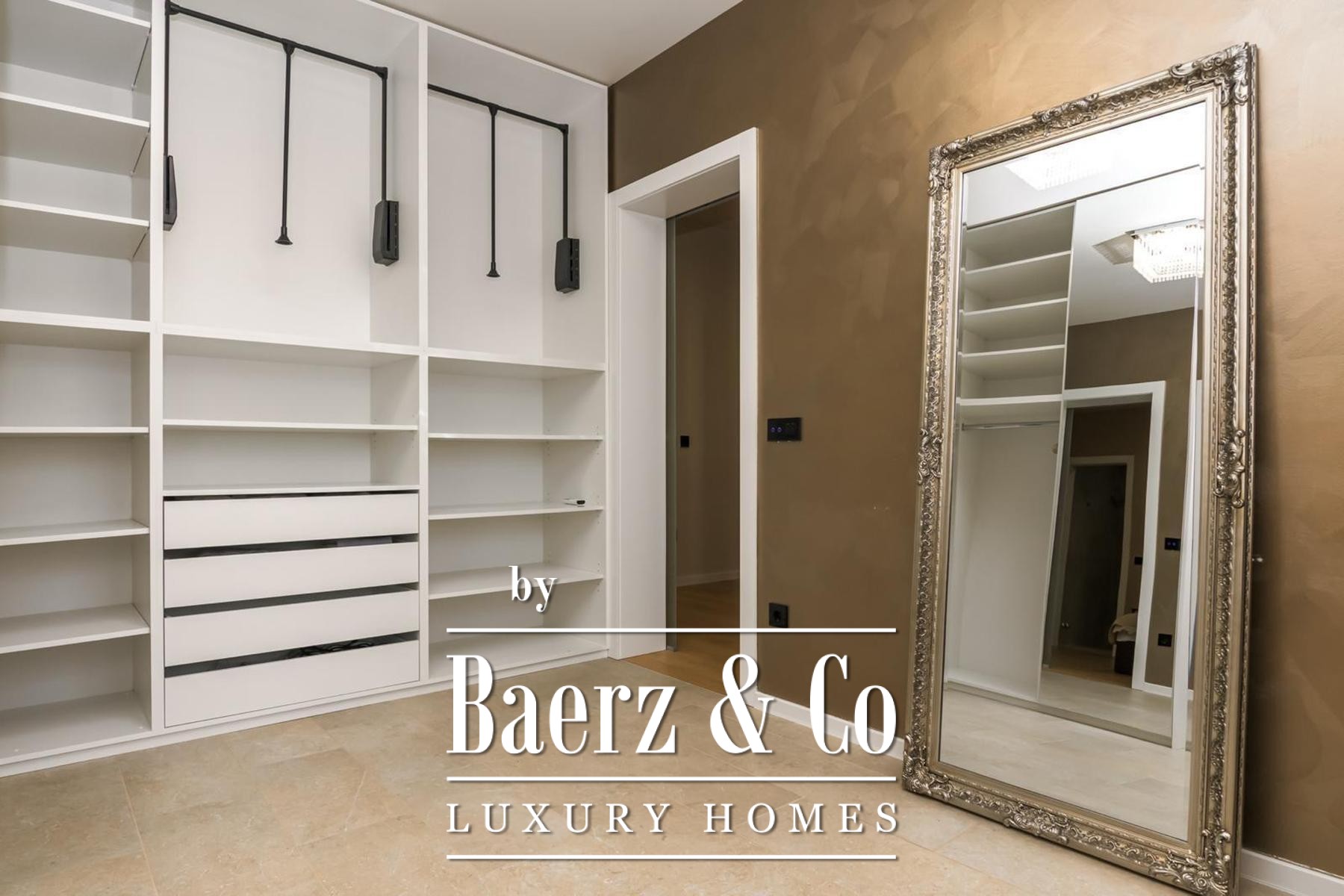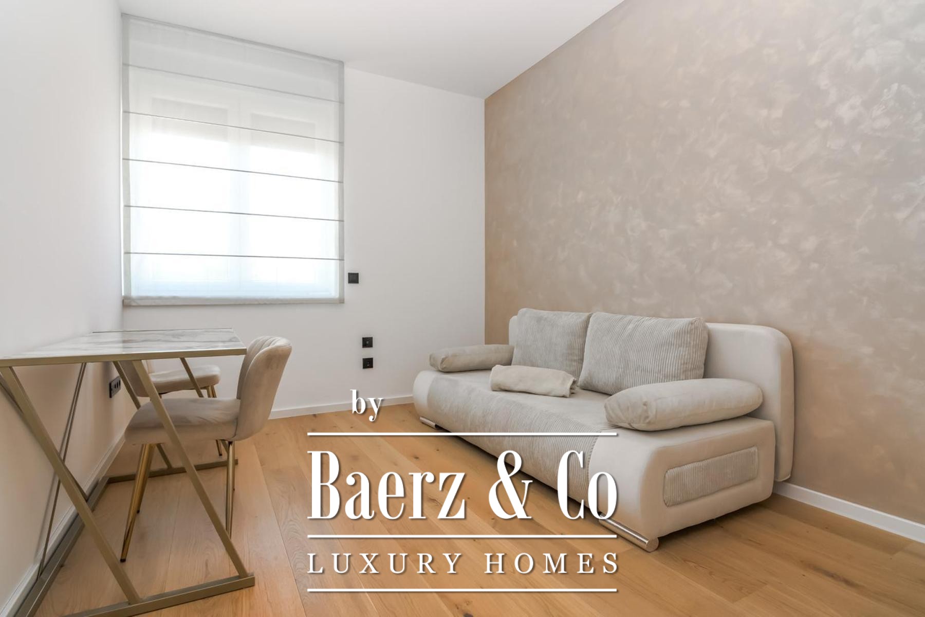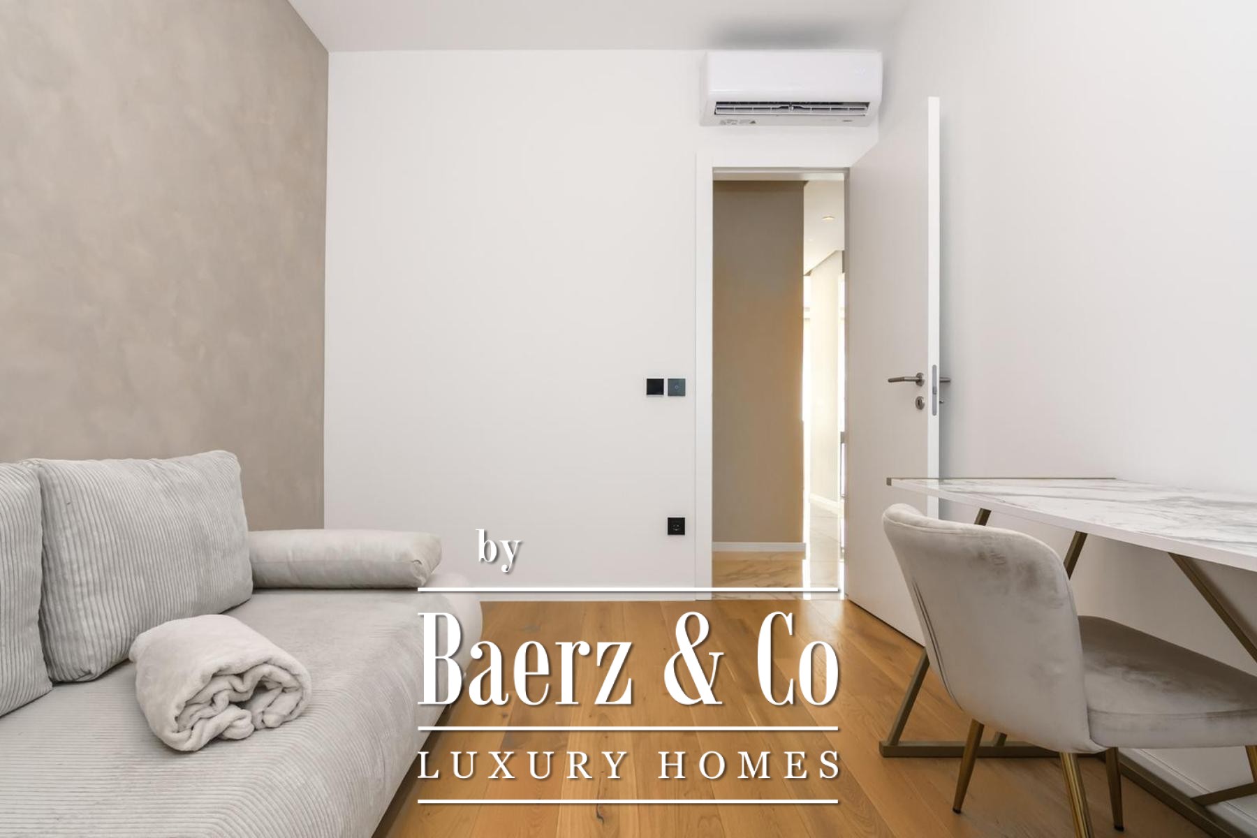 De indeling bestaat uit drie afzonderlijke slaapkamers, een aparte werkkamer en twee badkamers en is tot in detail ontworpen voor modern comfort. Hoogwaardige voorzieningen zijn onder meer vloerverwarming in het gehele appartement, volledige airconditioning per ruimte en maatwerk ingebouwde meubels voor zowel functionaliteit als een helder lijnenspel. Aan bergruimte is gedacht met een aparte kamer en er zijn twee parkeerplaatsen—één overdekt, één onoverdekt—voor extra gemak.