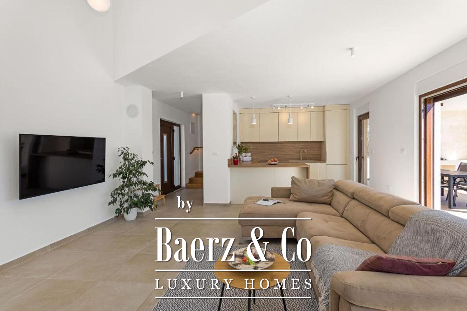 De moderne villa Marčana ligt rustig nabij Krnica en trekt de aandacht met een verfijnd eigentijds ontwerp en wijdse zeezichten over de omliggende eilanden. Deze woning biedt een woonoppervlak van 100 m², stijlvol verdeeld over twee verdiepingen en ontworpen met oog voor comfort en ruimtelijkheid. De begane grond verwelkomt u met een lichte, open woonkamer, keuken en eetgedeelte, waar royale glazen schuifdeuren het daglicht binnenlaten en binnen en buiten naadloos met elkaar verbinden. Een badkamer en een aparte berging zorgen hier voor praktische functionaliteit.