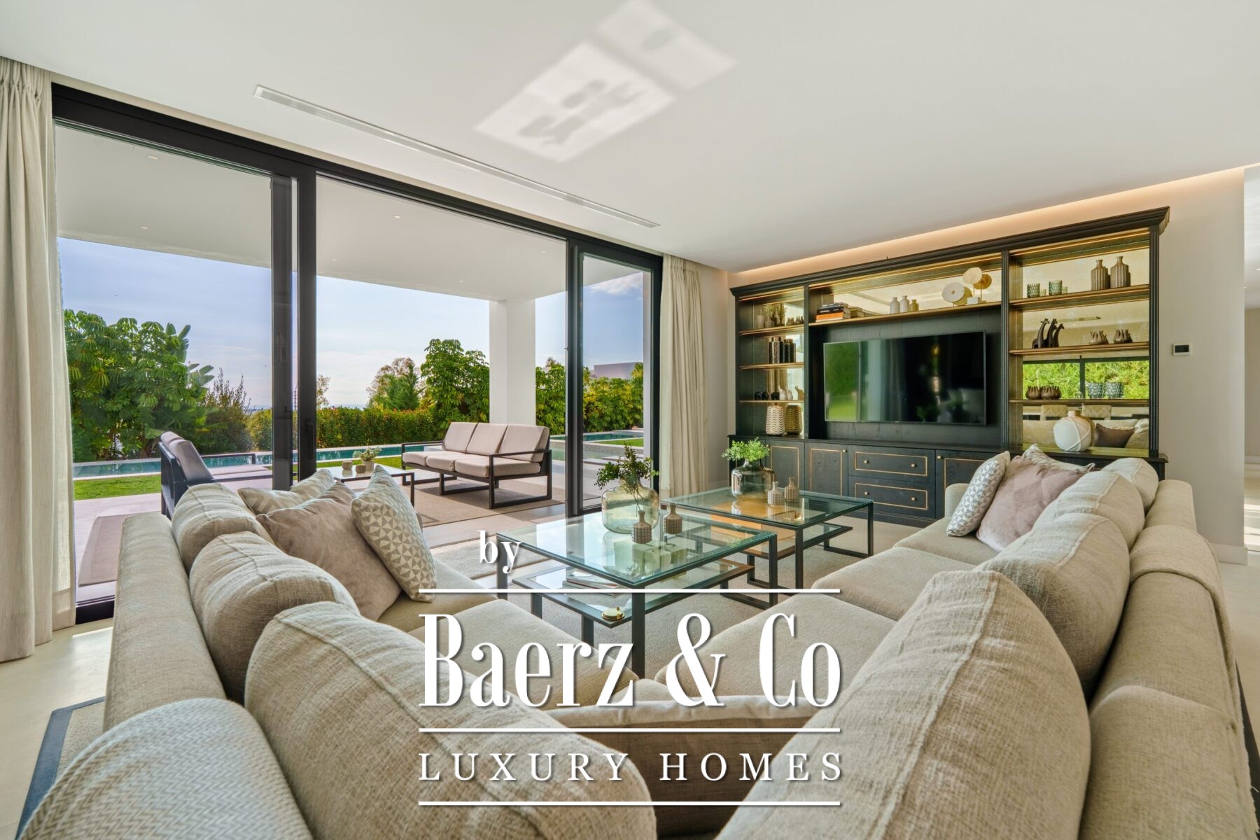 Voor ontspanning en gezelligheid is er een exclusieve bioscoopruimte met een bar, pooltafel en projectiescherm. Moderne voorzieningen zijn onder meer een luchtwarmtepomp, zonnepanelen met batterijopslag, een smart home-systeem en beveiligingsfuncties voor optimale gemoedsrust. Dankzij de ligging bereikt u direct lokale winkels, golfbanen, het strand en de zee van Marbella. Zo biedt deze villa een unieke combinatie van zuivere architectuur en dagelijks wooncomfort.