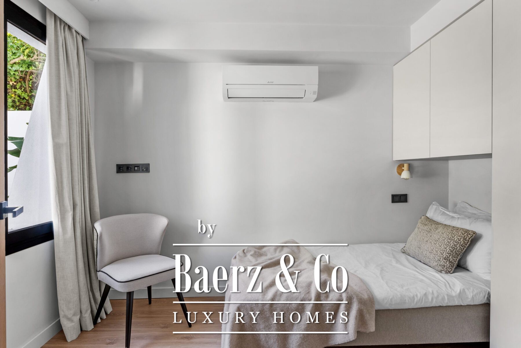 Binnen creëren plafonds met dubbele hoogte een luchtig ritme in de hoofdwoonkamer, waar glazen schuifdeuren van vloer tot plafond naadloos openen naar het omliggende landschap. Een marmeren chef-keuken van Miele, een kenmerkende open haard en royale woonruimtes ademen een ingetogen verfijning. Alle vier de slaapkamers zijn voorzien van en-suite badkamers en op maat gemaakte inloopkasten, met directe toegang tot de tuin op het lagere niveau. De master suite onderscheidt zich met een privéterras, waar het ononderbroken uitzicht op de bergen uitnodigt tot reflectie en verstilling.