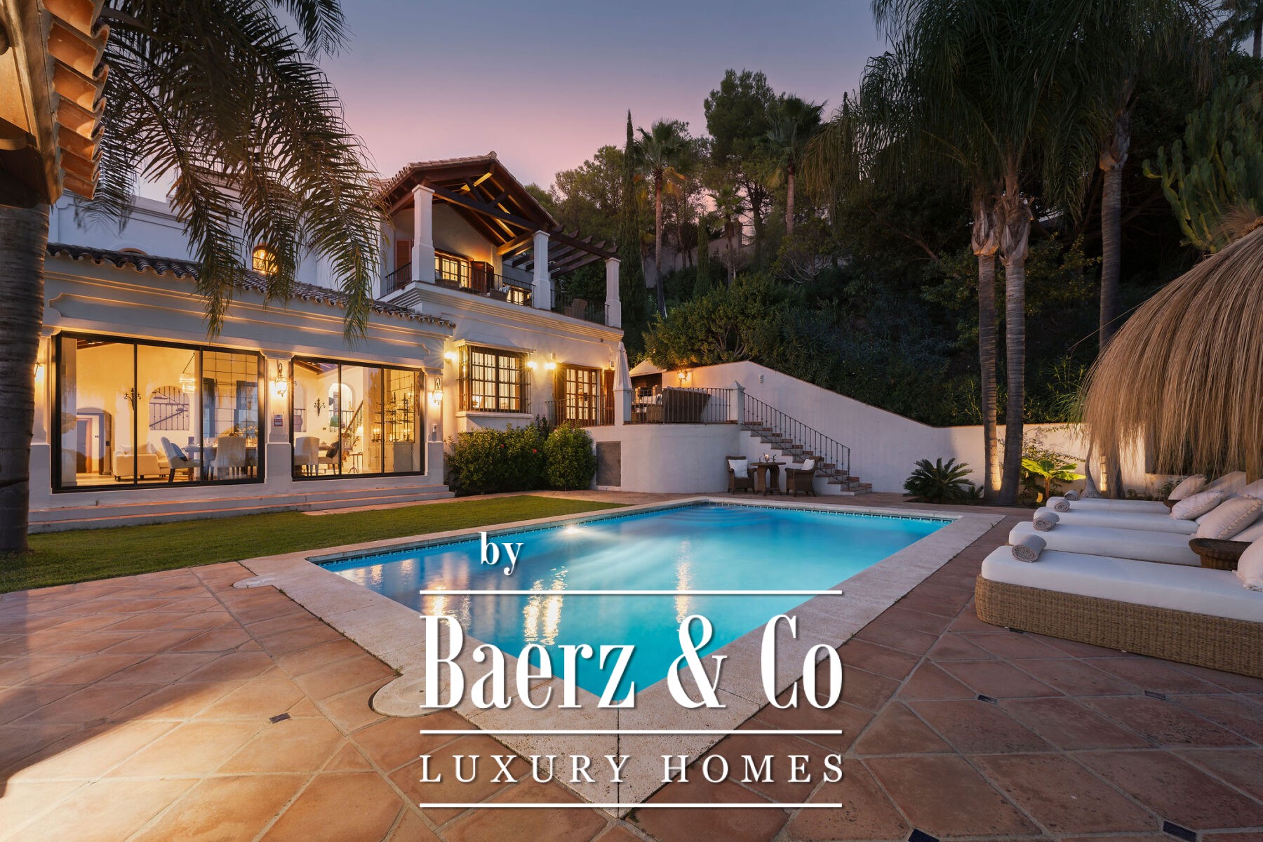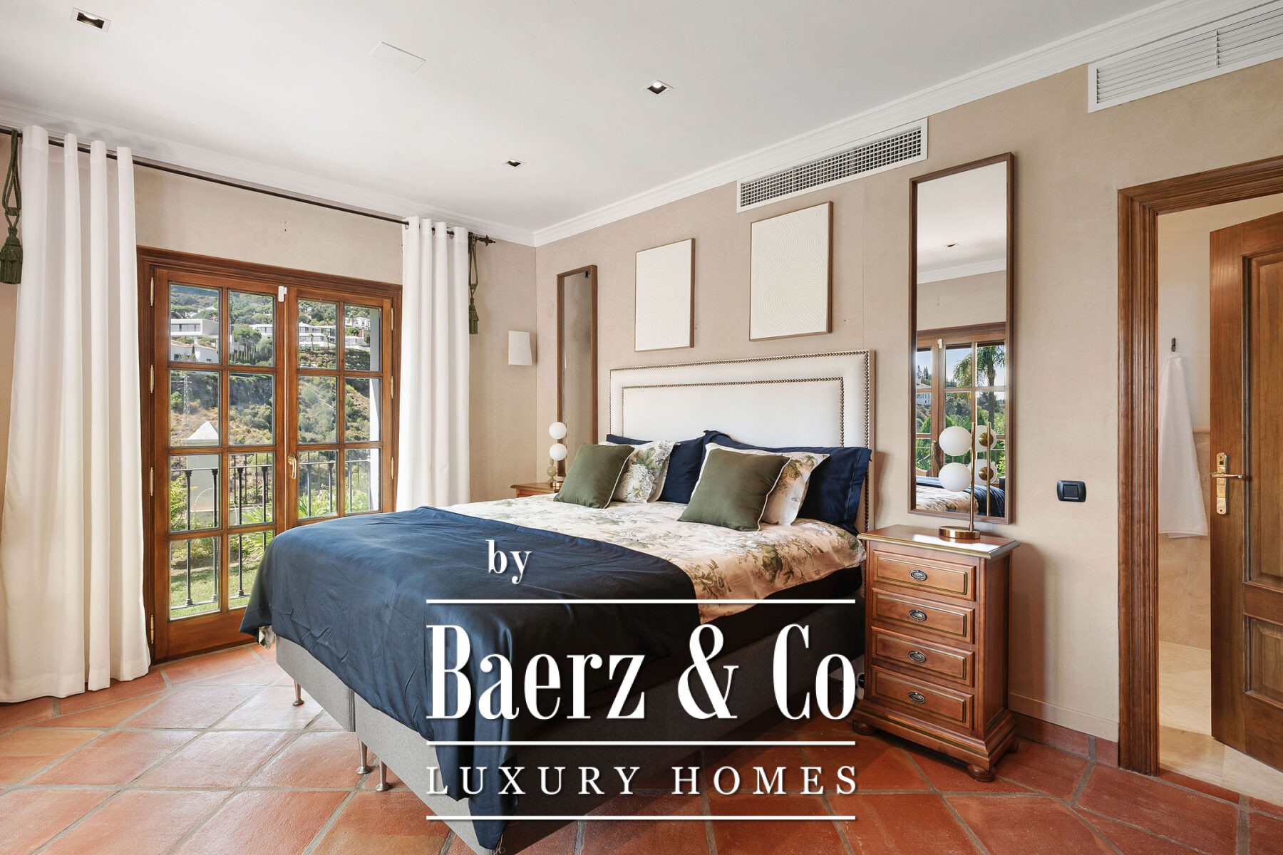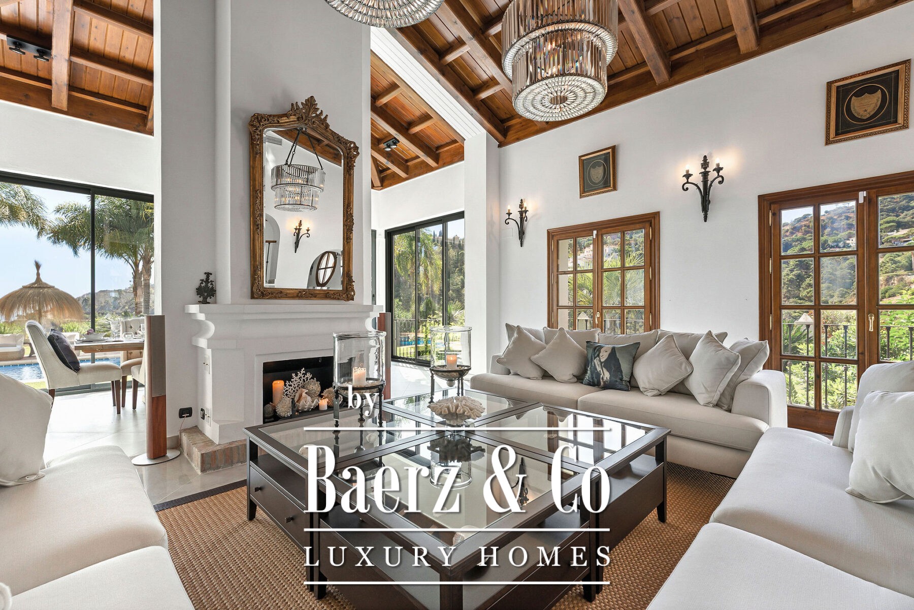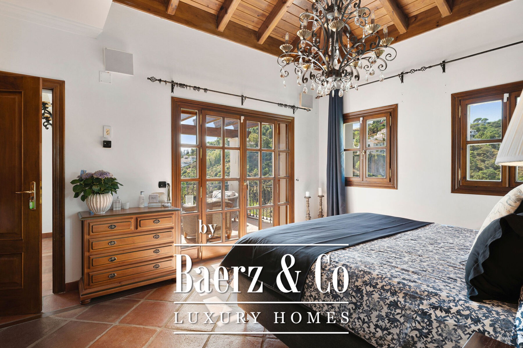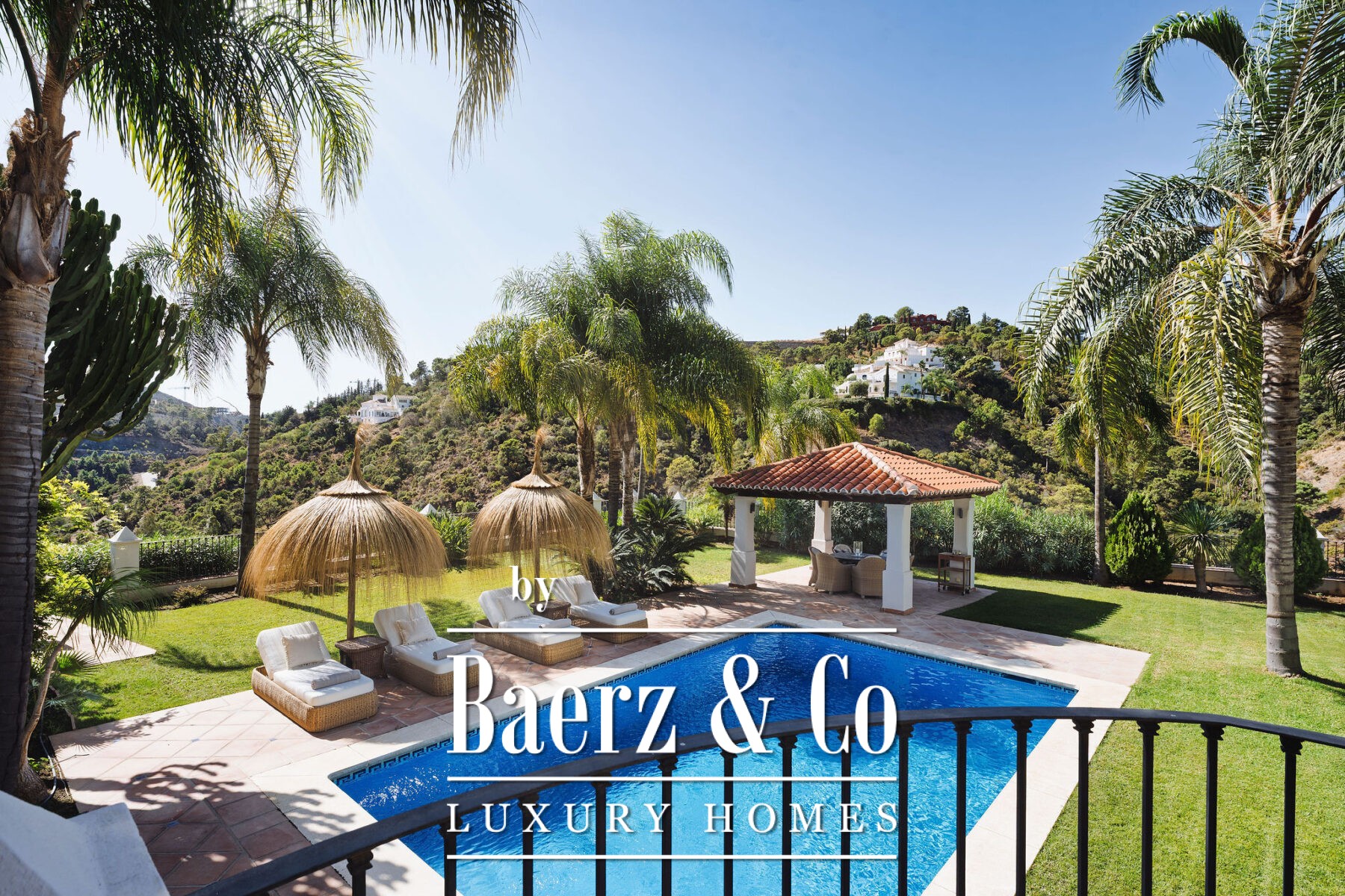 Villa El Madroñal Benahavís, met panoramisch zeezicht, vertegenwoordigt een zeldzaam niveau van verfijnd wonen in het hart van een geëerde beveiligde residentie. Deze volledig in 2024 gerenoveerde villa van 531 m² vormt een harmonieus samenspel tussen tijdloze Andalusische charme en doordachte moderne luxe. De woning is gesitueerd op een perceel van 5.344 m² en biedt weidse, blijvende uitzichten over zee en het berglandschap, ongeacht het seizoen, terwijl de zon haar zuidelijke en zuidwestelijke baan volgt.
