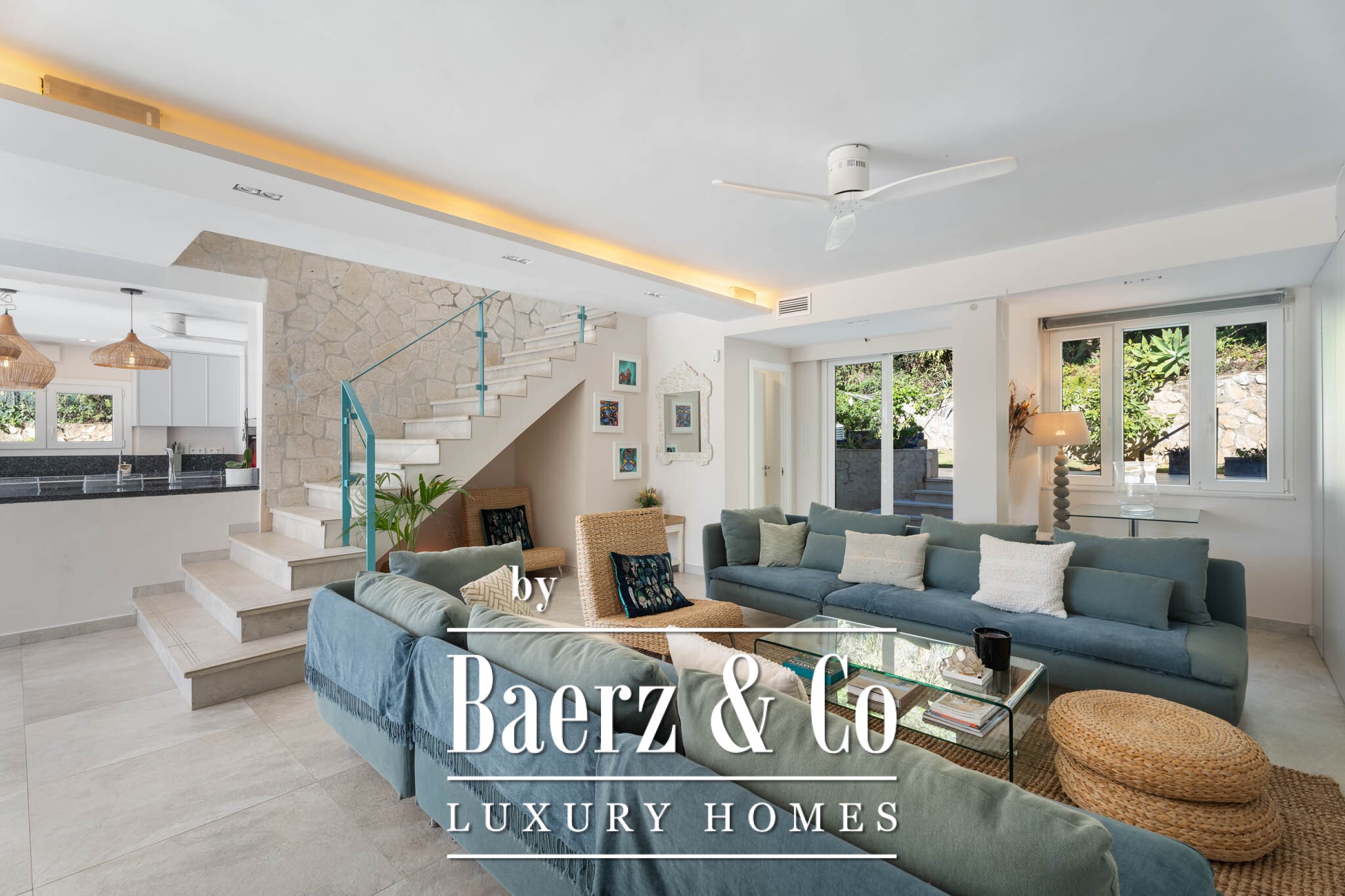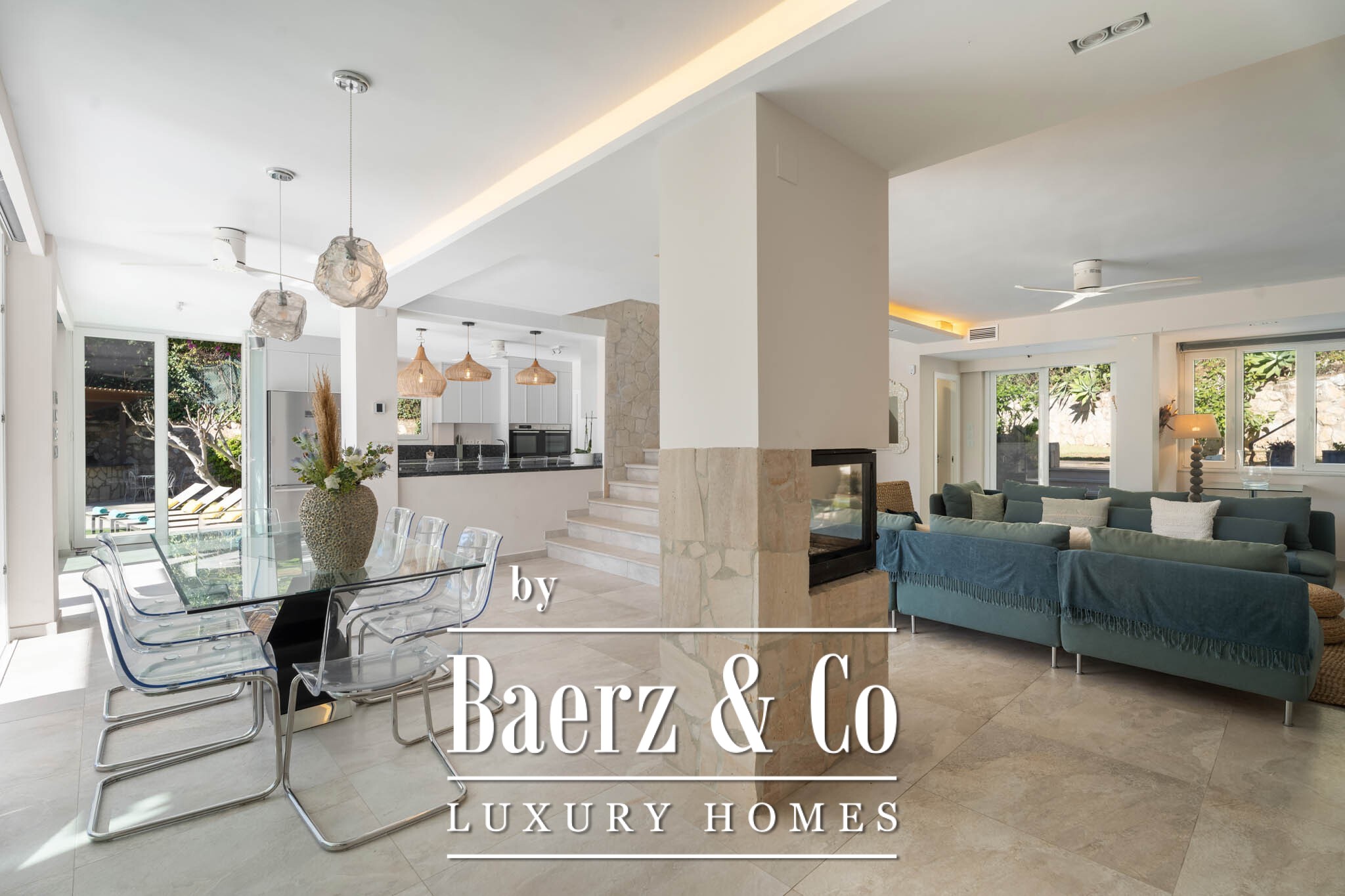 De eigentijdse keuken is voorzien van hoogwaardige apparatuur en een aparte bijkeuken en vormt het praktische en elegante hart van de woning, geschikt voor efficiënt dagelijks gebruik en stijlvol entertainment. De villa beschikt over zes flexibele ruimtes, waaronder vijf slaapkamers en een studeerkamer. De hoofdslaapkamer beschikt over een inloopkast, en-suite badkamer en directe toegang tot het terras.