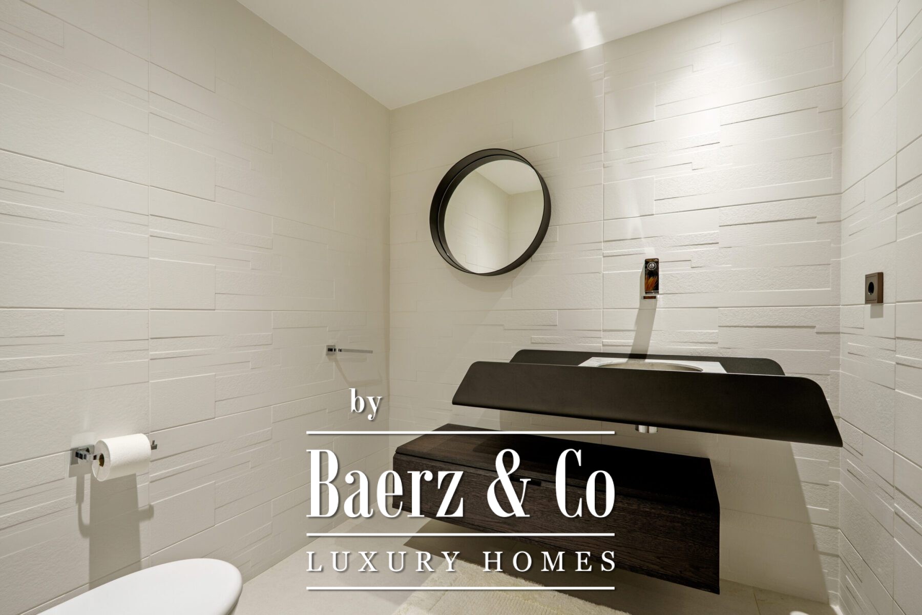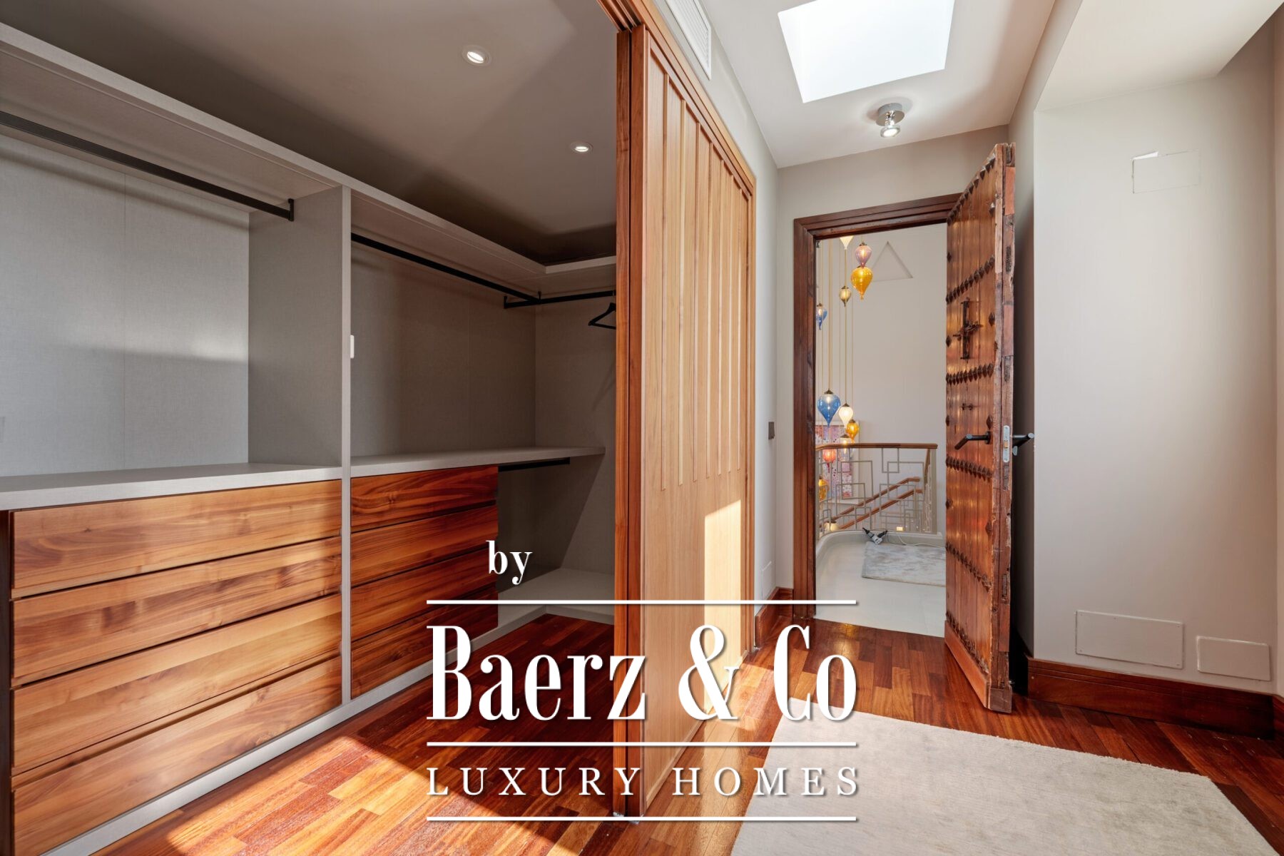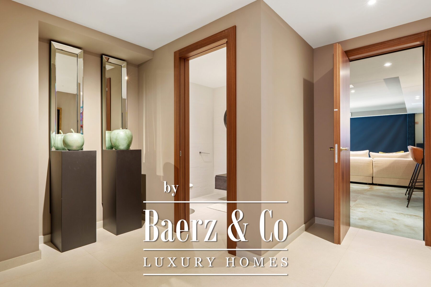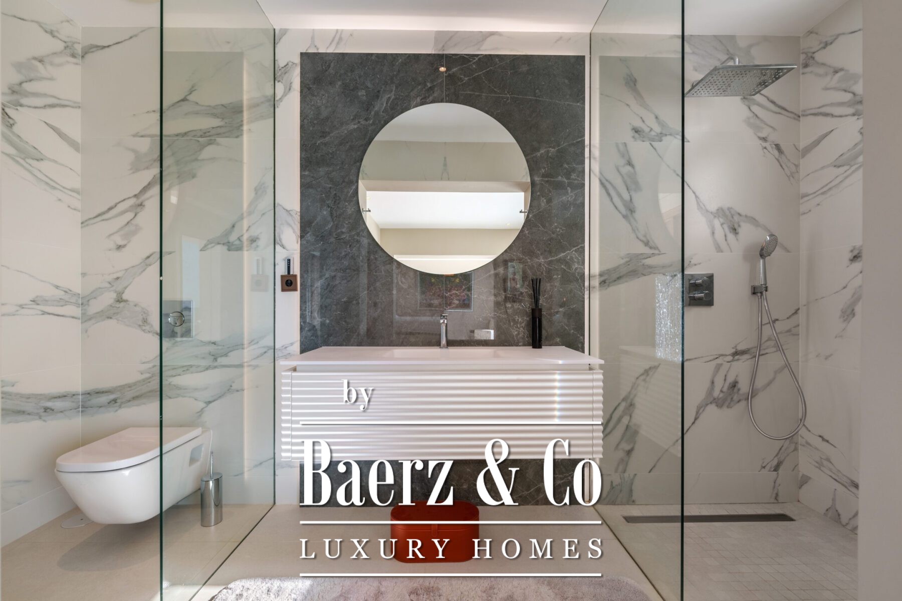 De hoofdresidentie en het onafhankelijke gastenverblijf bieden samen negen slaapkamers en negen en-suite badkamers, waarmee familie en gasten optimaal worden verwelkomd met comfort en heldere scheiding. De architectonische cadans loopt van royale binnenruimtes naar 140 m² terrassen, die een vloeiende verbinding creëren met de aangelegde tuinen en twee privézwembaden. De entree is discreet via een privé-oprit met overdekte parkeergelegenheid voor achttien voertuigen.
