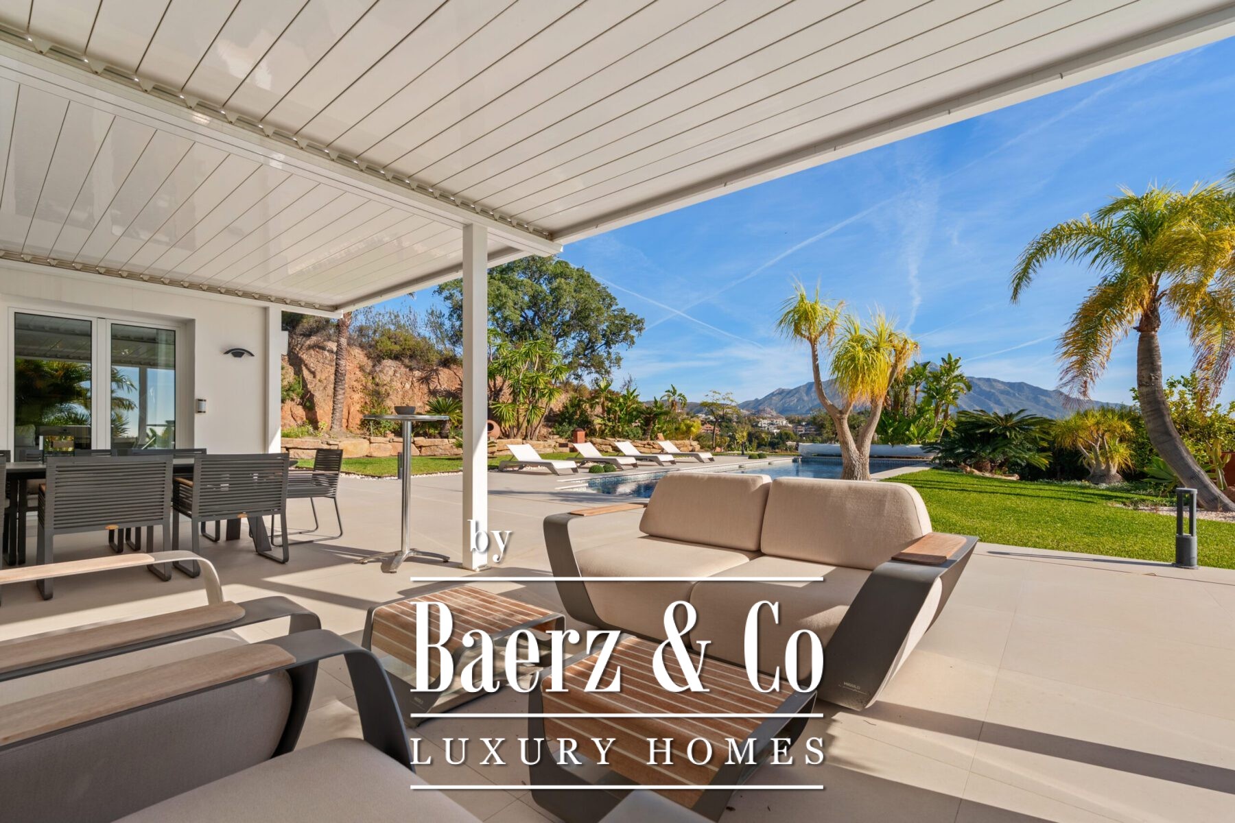 Deze villa te koop in Benahavís ligt nabij Marbella, Puerto Banús, gerenommeerde golfbanen en voorzieningen, en biedt afzondering zonder isolement en een verheven invulling van het mediterrane leven.