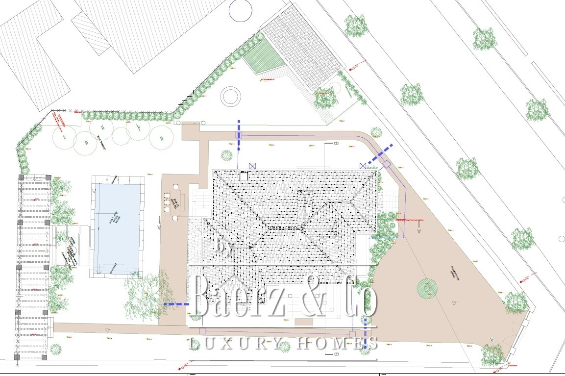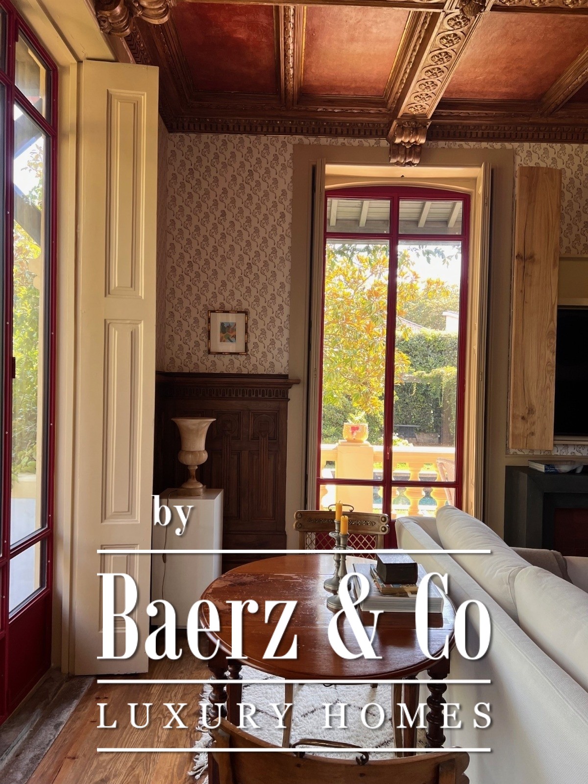Binnen de 576 m² elegante leefruimte beschikt het hoofdhuis over vijf slaapkamers en vijf badkamers. Twee suites weerspiegelen eigentijdse luxe, terwijl het interieur tijdloze klasse uitstraalt met fraai sierplafond, een indrukwekkend trappenhuis met glas-in-lood en royale lichtval. Zithoek, eetgedeelte en de moderne keuken met kookeiland lopen harmonieus in elkaar over. Comfort wordt geboden door vloerverwarming, geselecteerde airconditioning en een sfeervolle open haard.