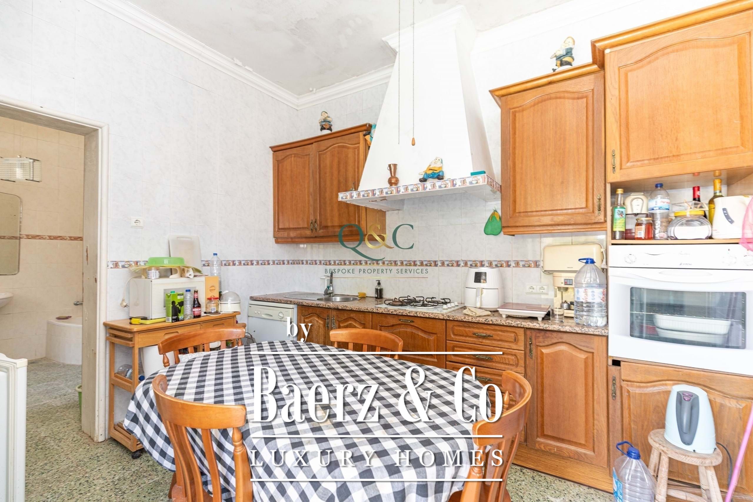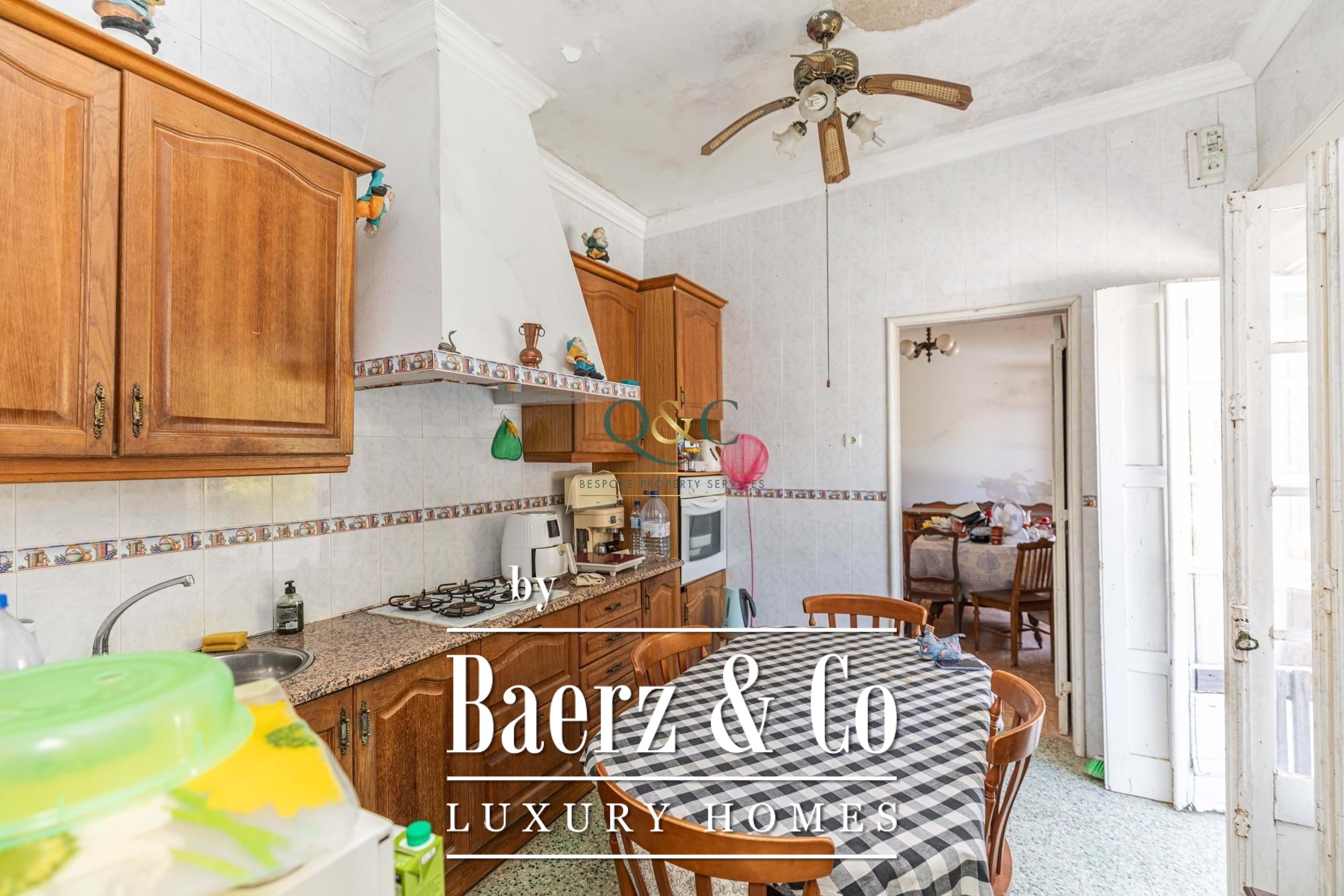 Farmhouse Moncarapacho vertegenwoordigt een authentiek Algarvisch landgoed op 6.560 m² ommuurd terrein, waar historie en potentie samenkomen. Deze quinta vereist volledige renovatie en modernisering, wat een ideale basis biedt voor transformatie. De woning beschikt over 196 m² woonoppervlak verdeeld over twee verdiepingen. Op de begane grond vormen de keuken, eetkamer, woonkamer en een slaapkamer de kern. Boven zijn twee extra slaapkamers—waarvan één bijzonder ruim—met vrij uitzicht op de binnenplaats en de volgroeide boomgaard.