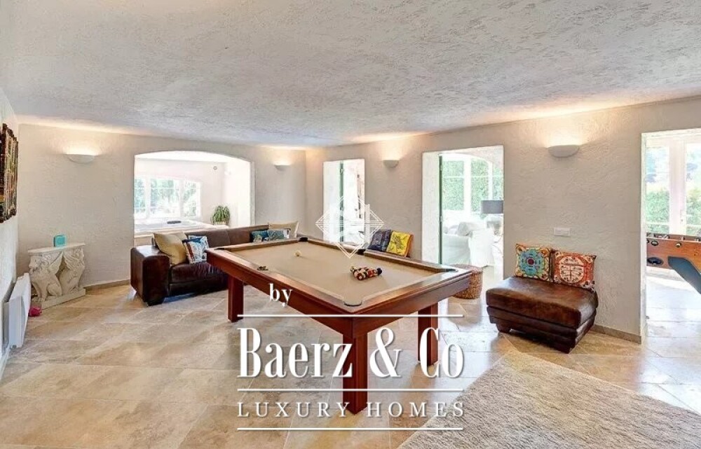 Op de benedenverdieping biedt een wellnesssuite een spa, jacuzzi, hammam, evenals een biljartkamer, bar en leeshoek, allen ontworpen voor volledige ontspanning. Buiten is er een zwembad met poolhouse, voorzien van een volledig uitgeruste keuken, eetgedeelte en loungeruimte.